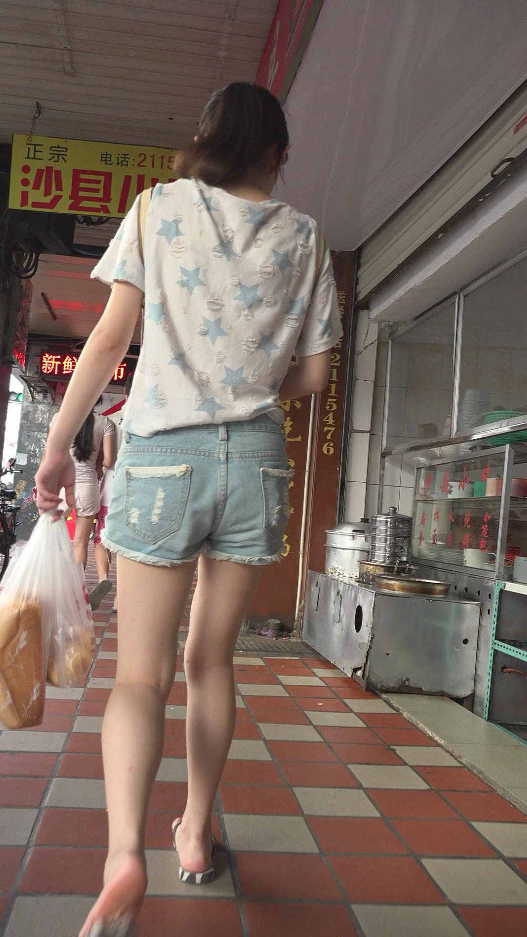 街拍牛仔热裤青春美女 编号4559