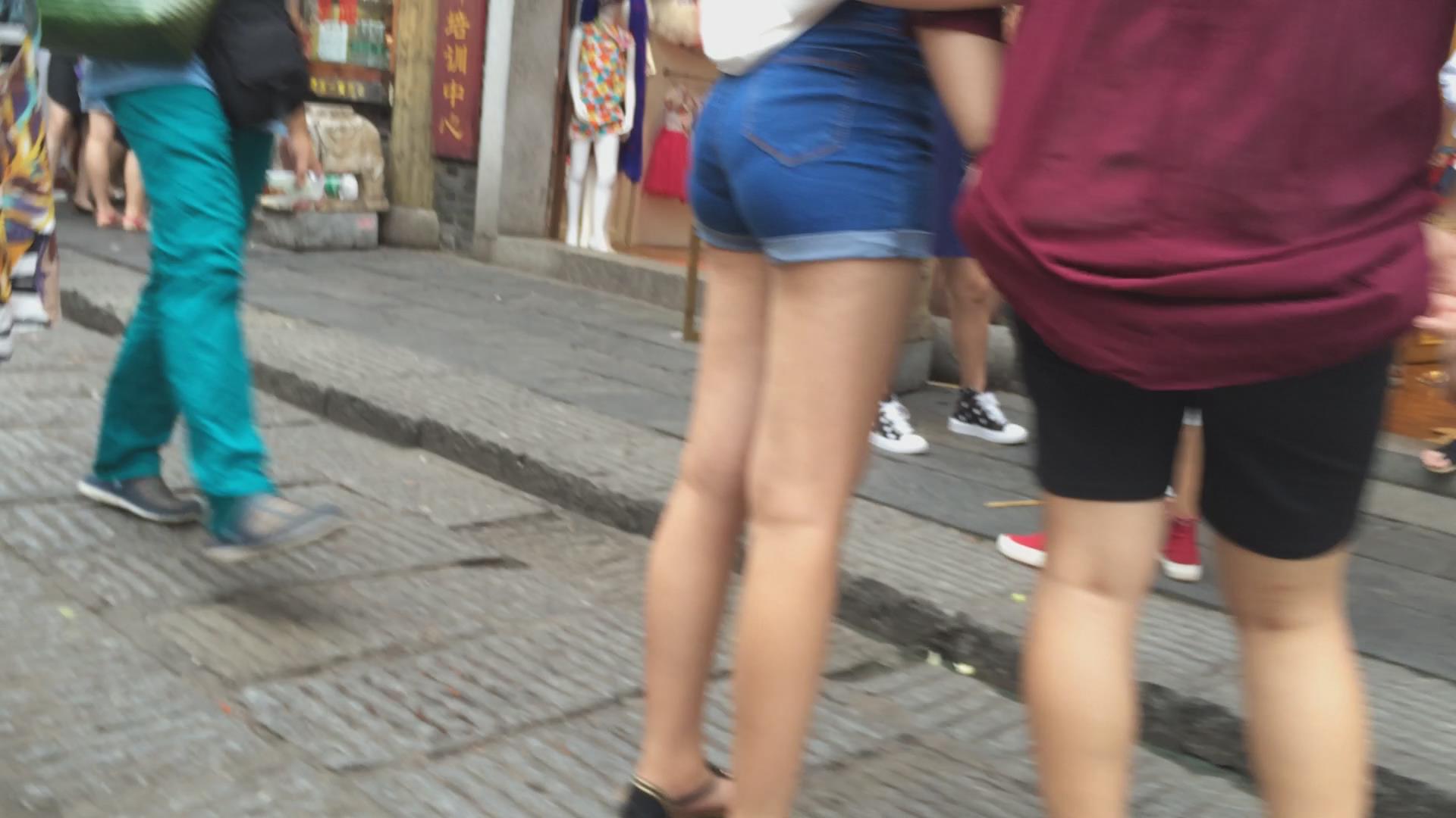 高腰紧身蓝牛苹果臀小美女 编号4247