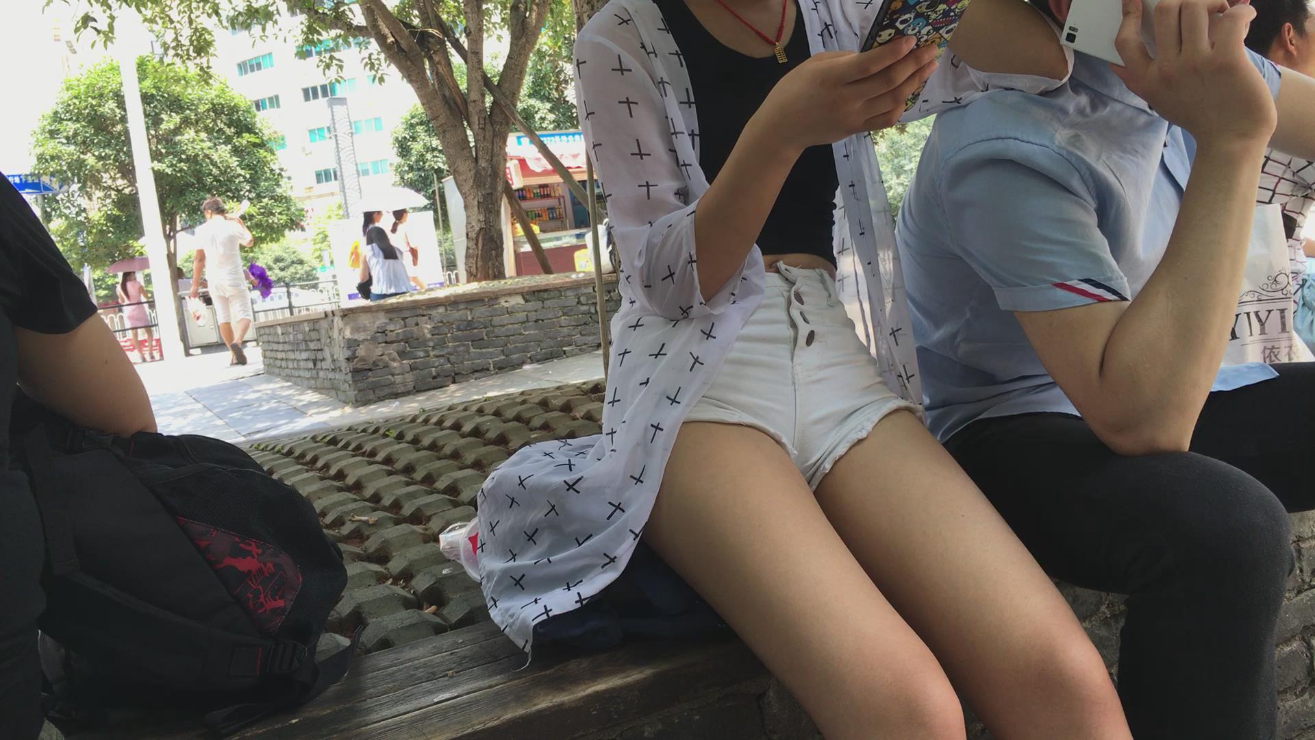 花坛边休息的长腿热裤小清新美眉 编号4272