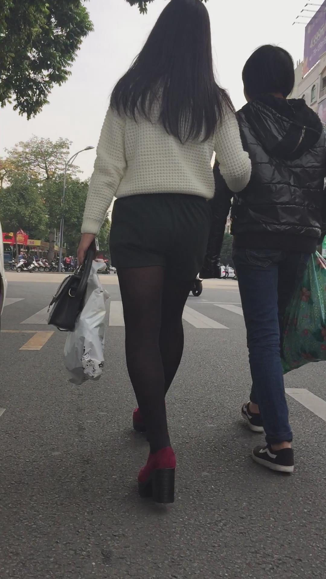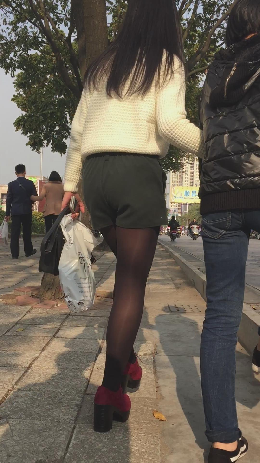 傍晚夕阳下街拍黑色丝袜美女姐妹花 编号4285