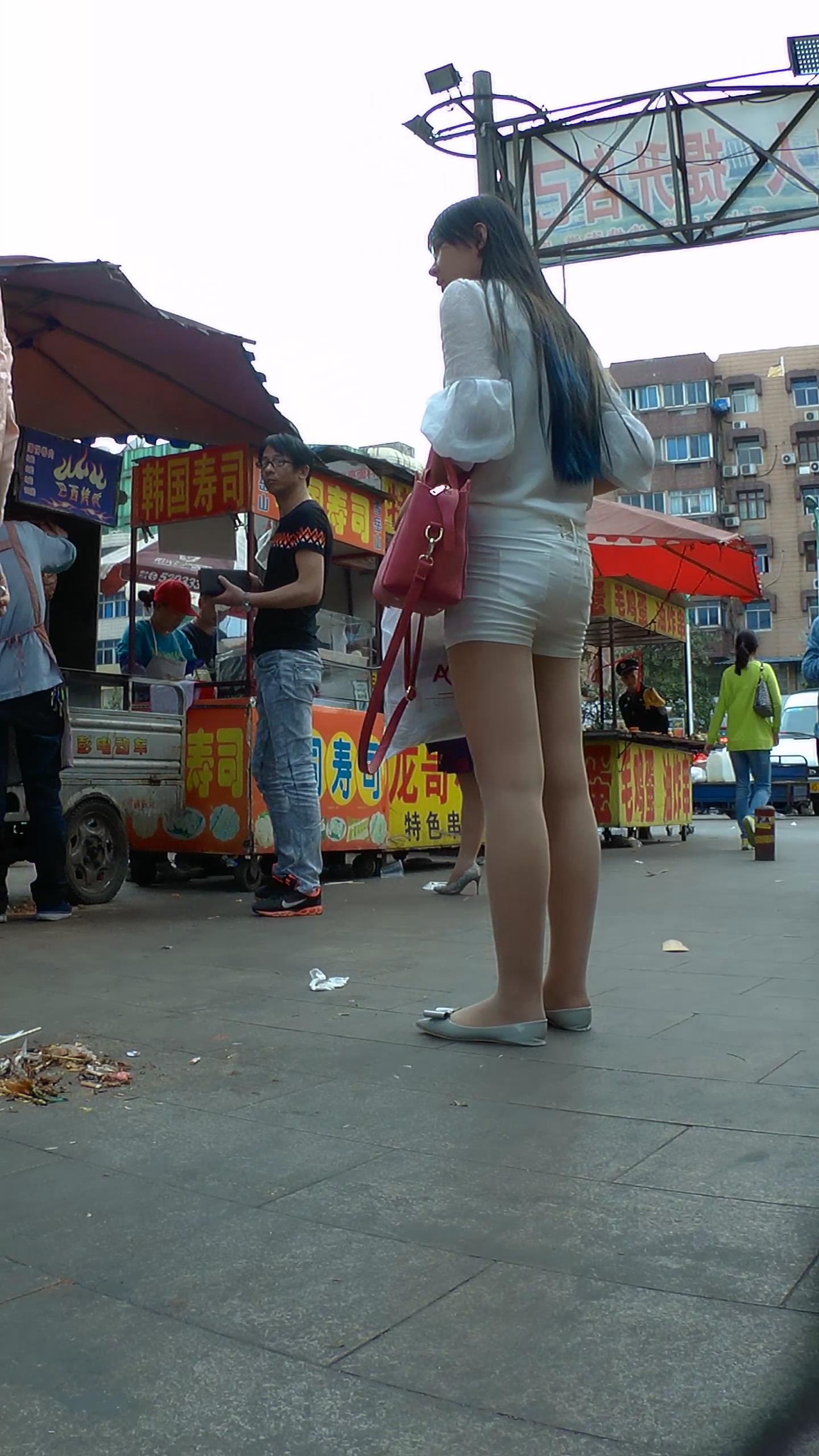 街上偶遇紧身白短裤大白腿美女,身材一级棒 编号4295