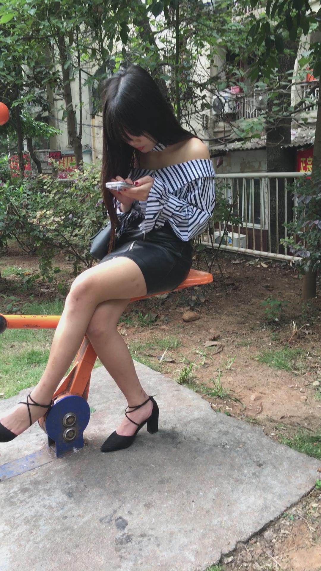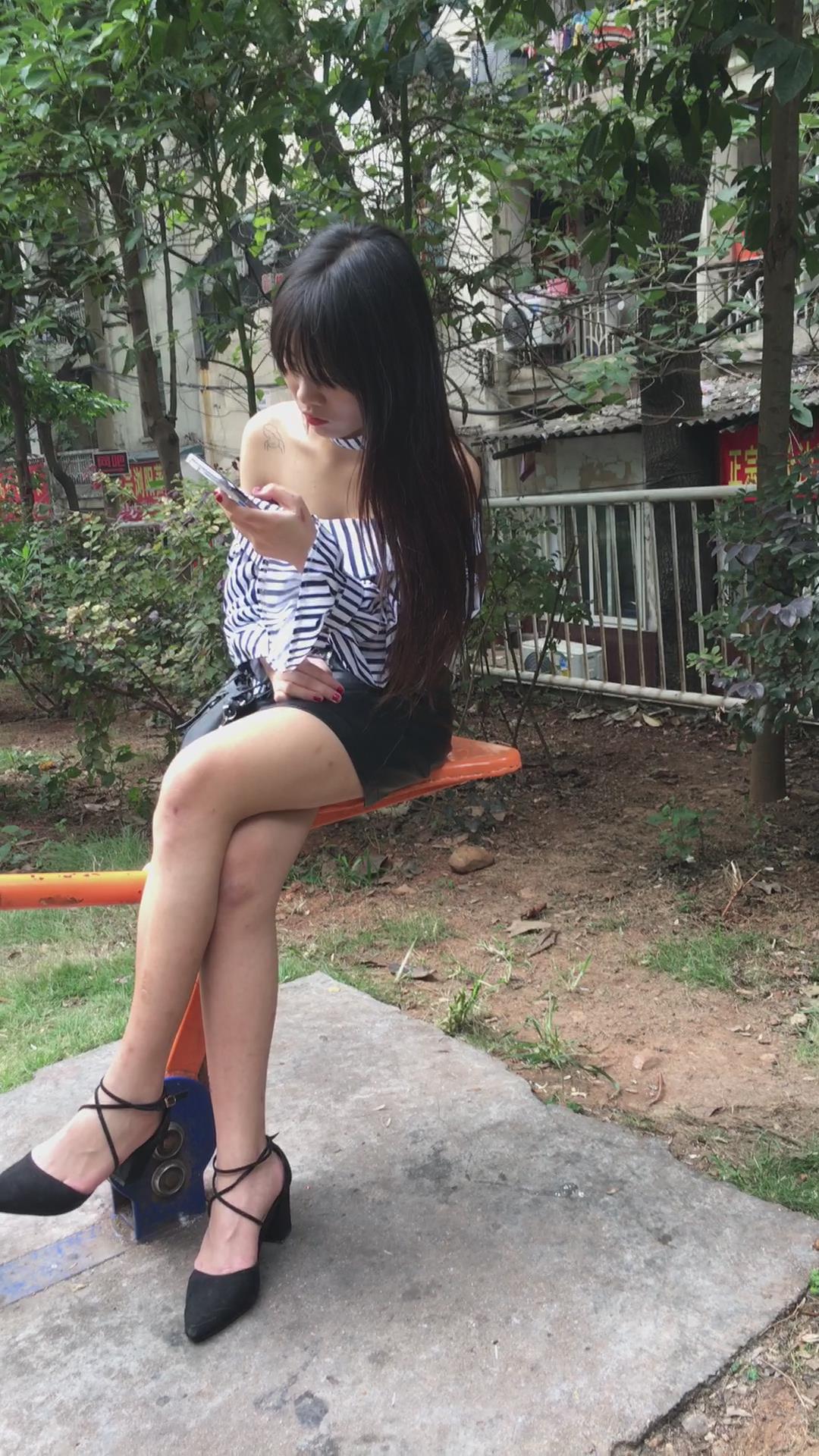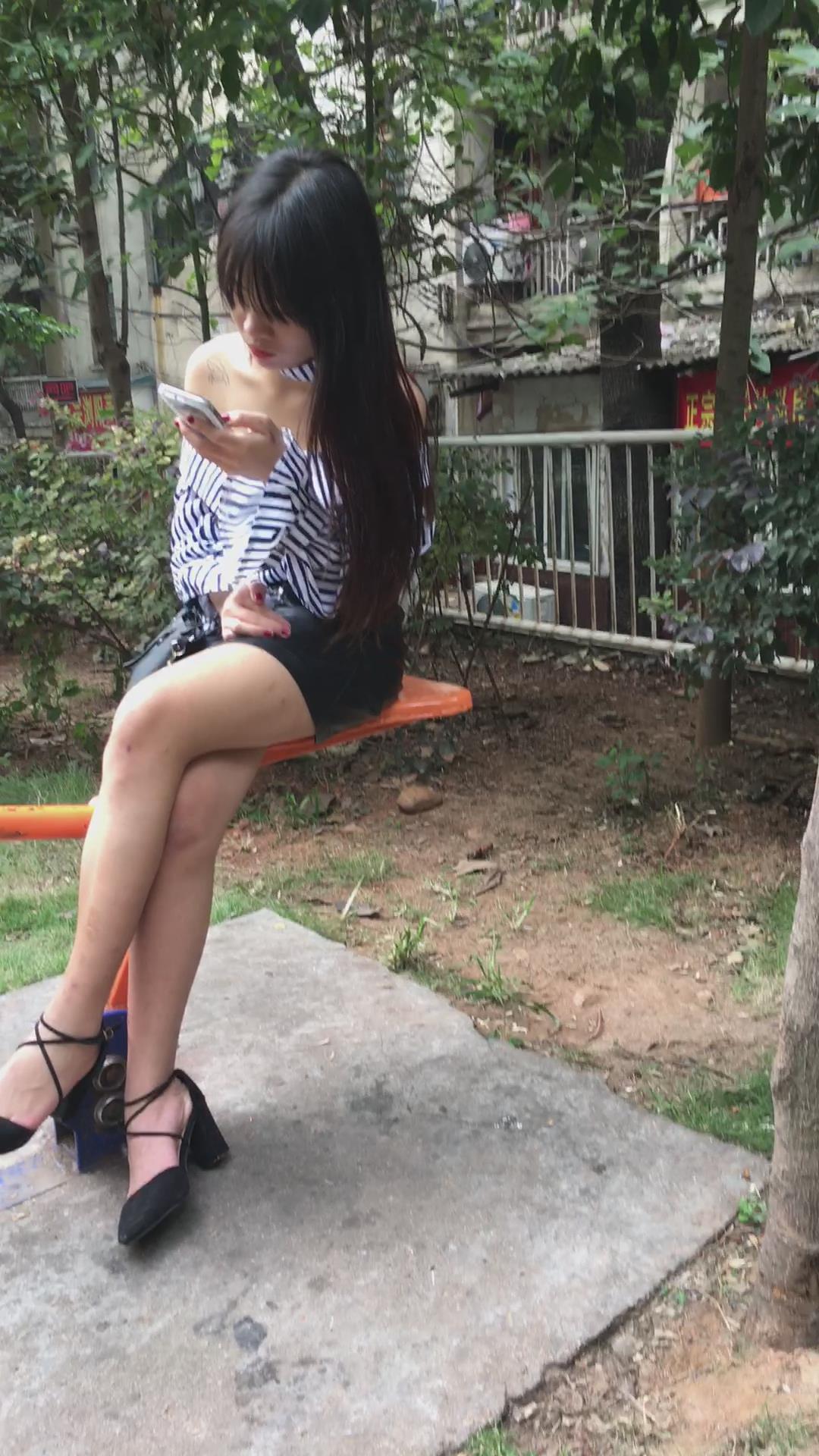 小区健身器材上玩手机的超美女孩,好想搭讪啊 编号4347