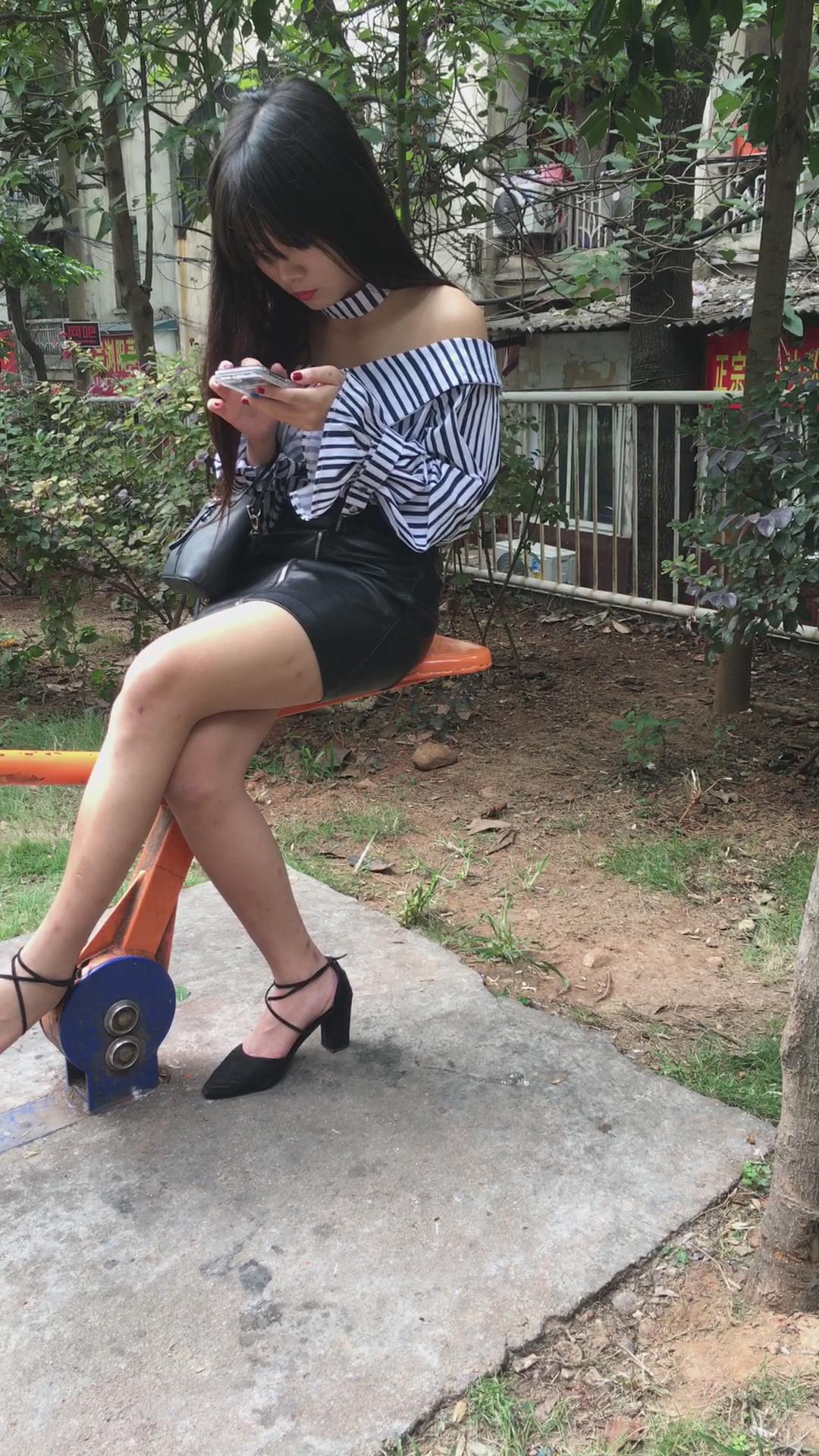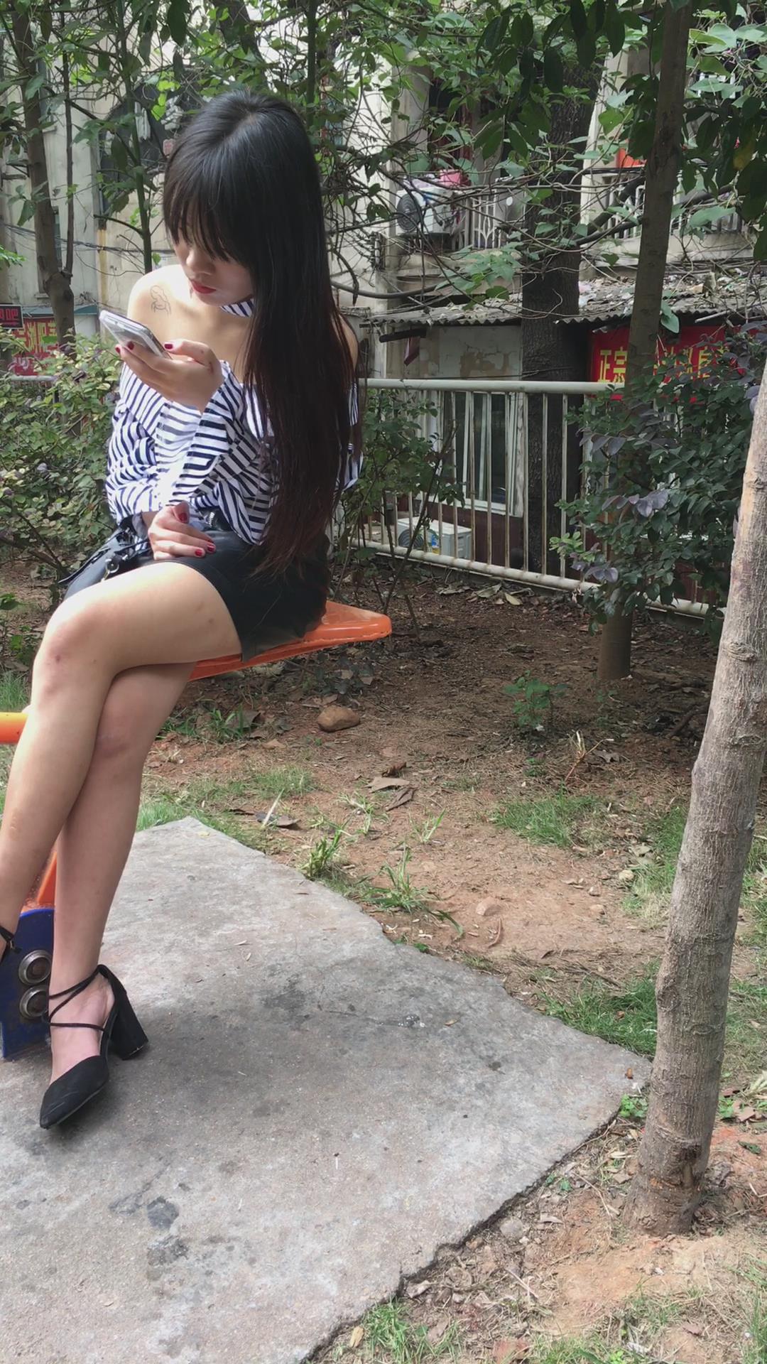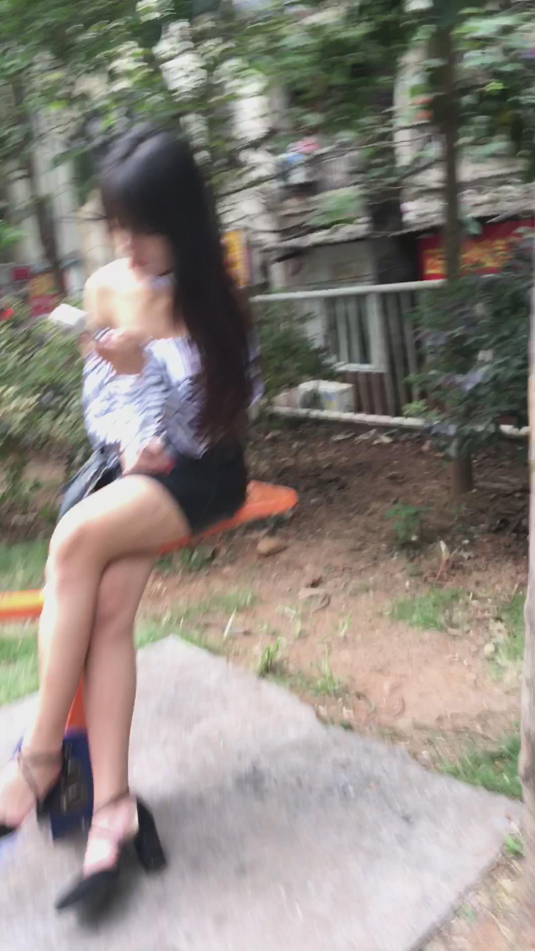 小区健身器材上玩手机的超美女孩,好想搭讪啊 编号4347