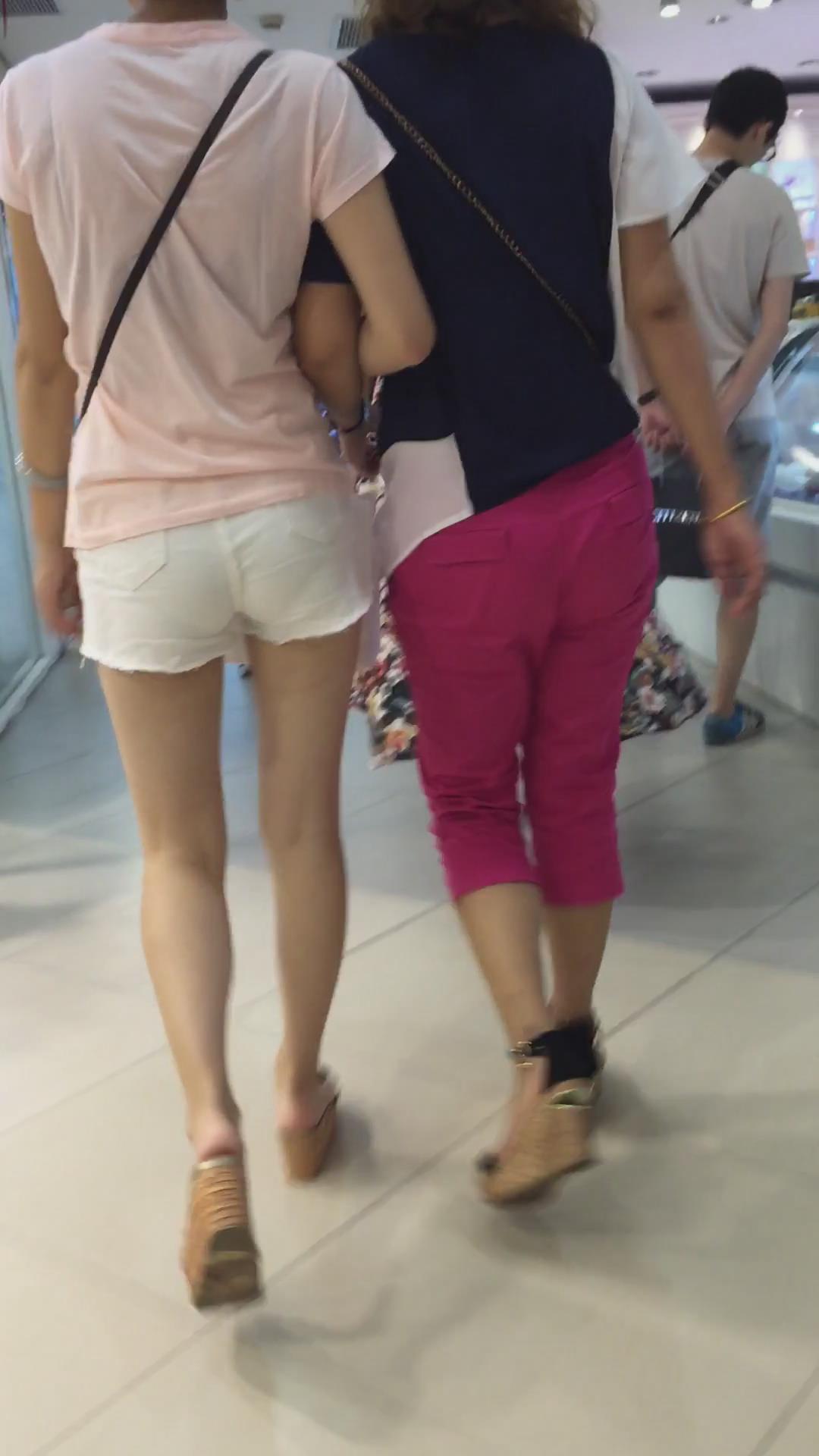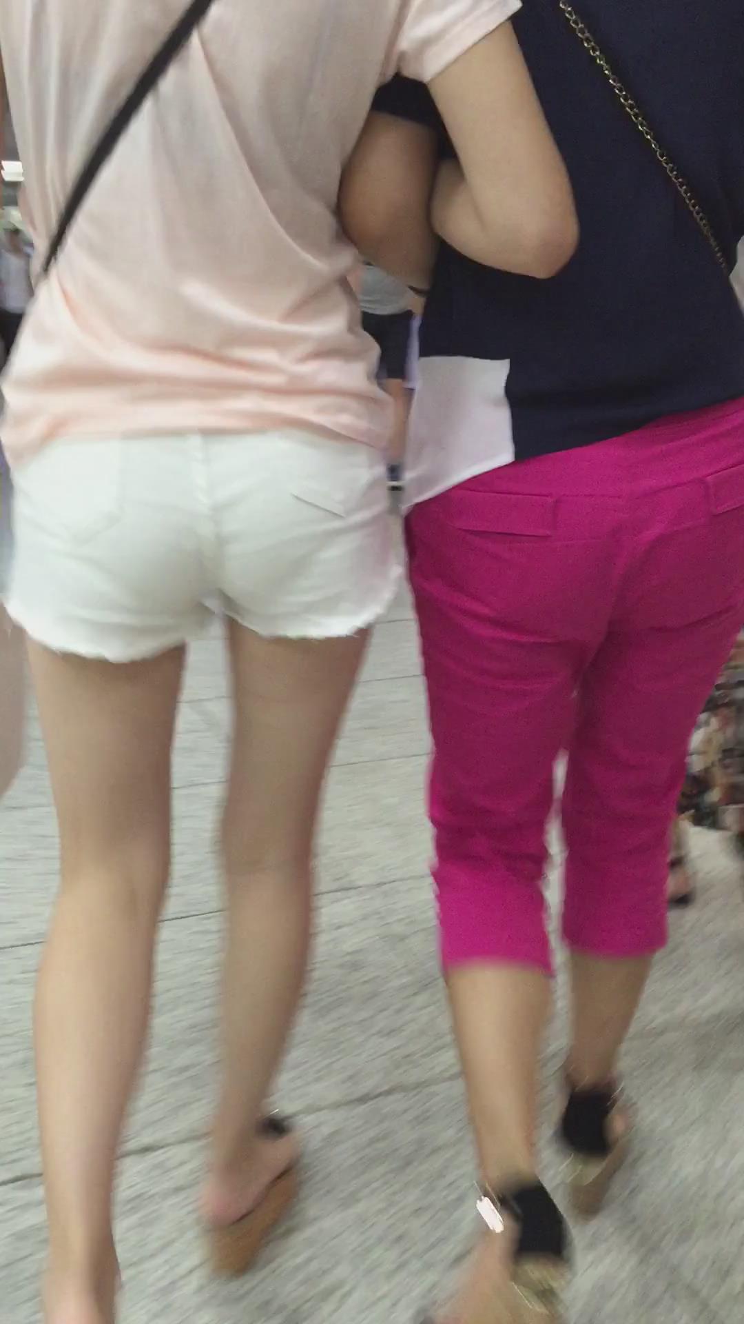 商场内上电梯的小白短热裤美腿女孩 编号4352