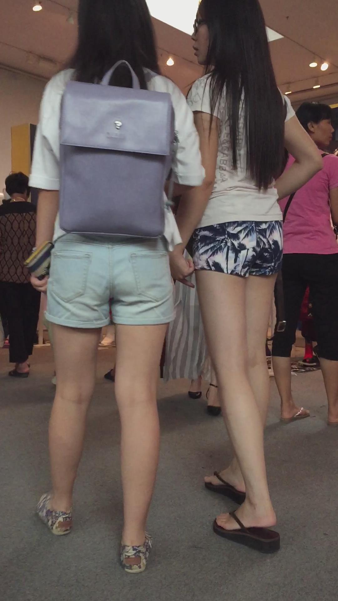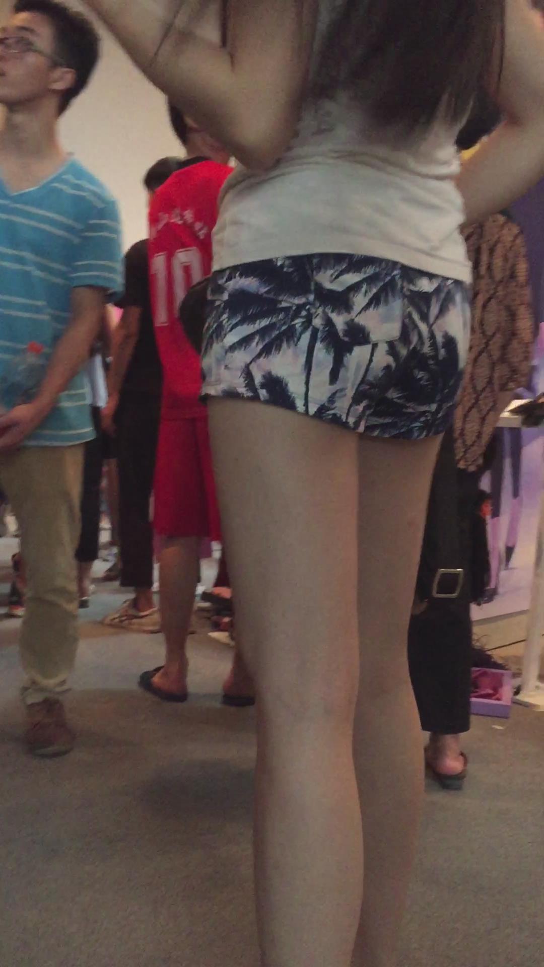 美腿长腿碎花短裤MM,夏天美女都喜欢人字拖么? 编号4574