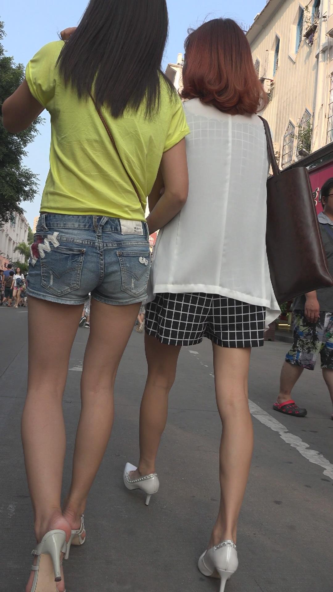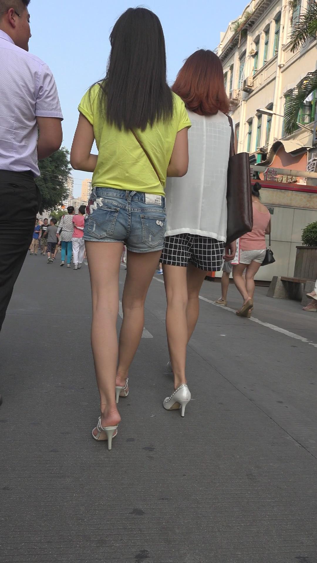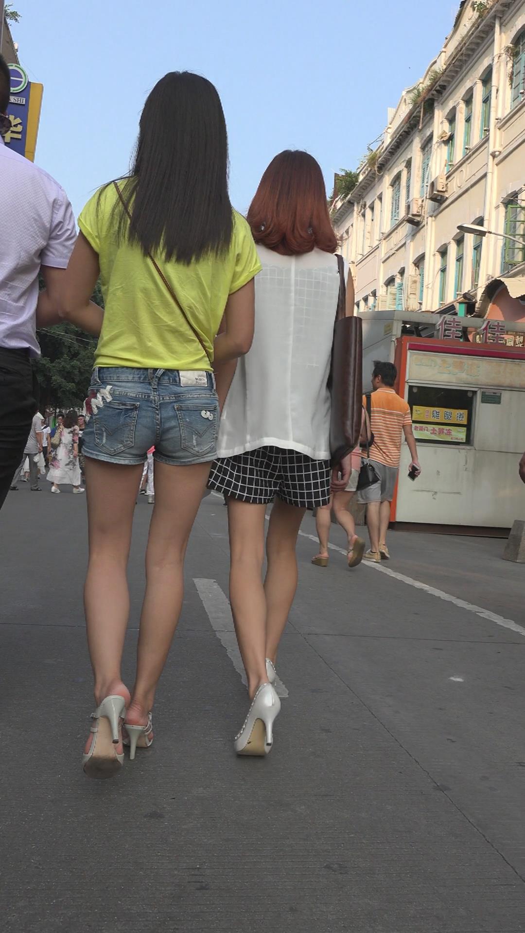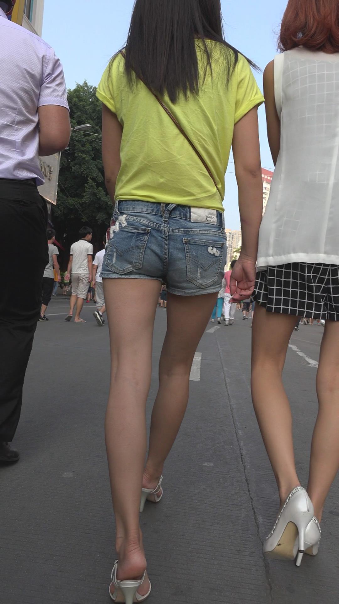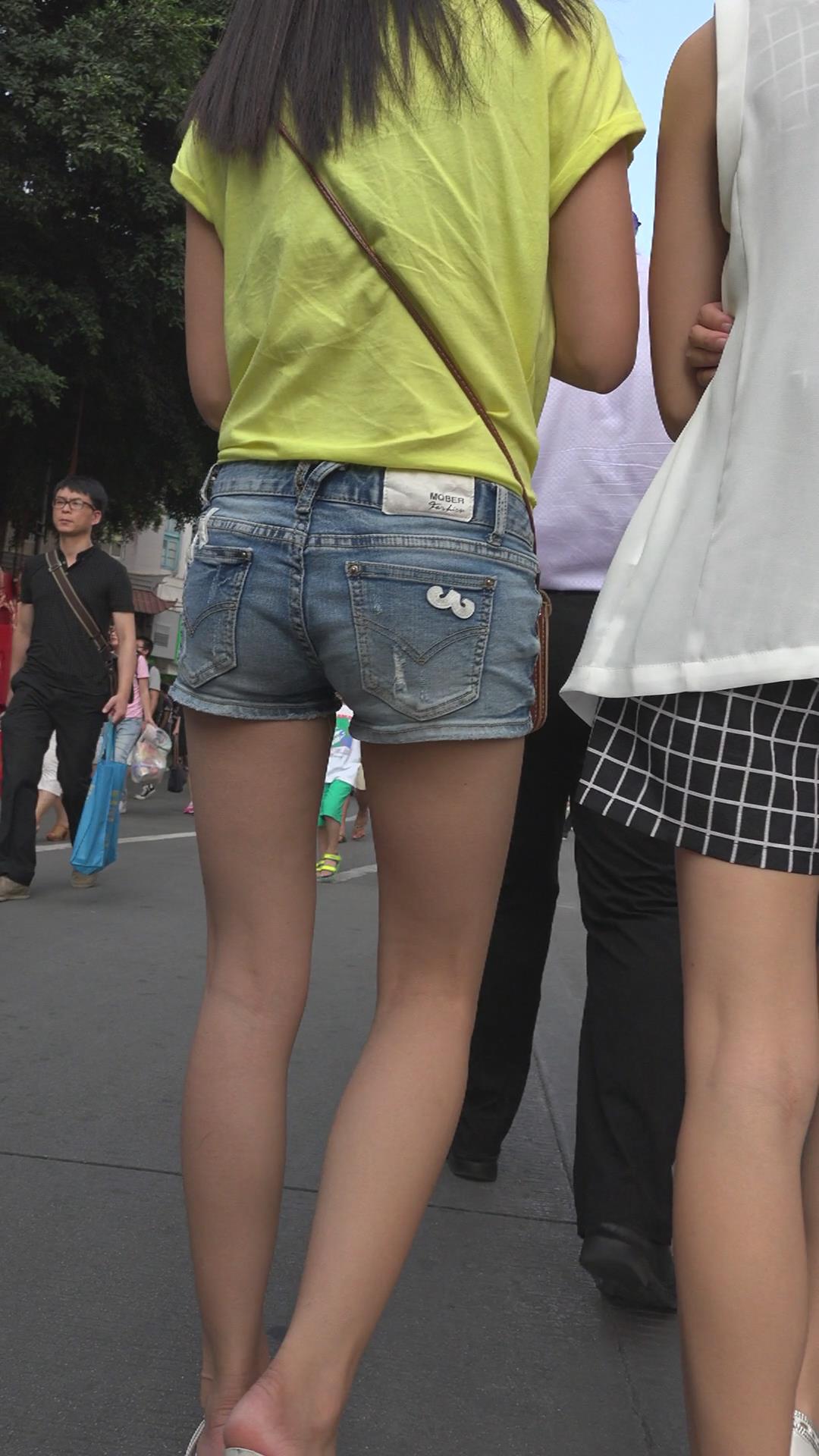 街拍极品美腿黄色T恤衫牛仔热裤美女 编号4431