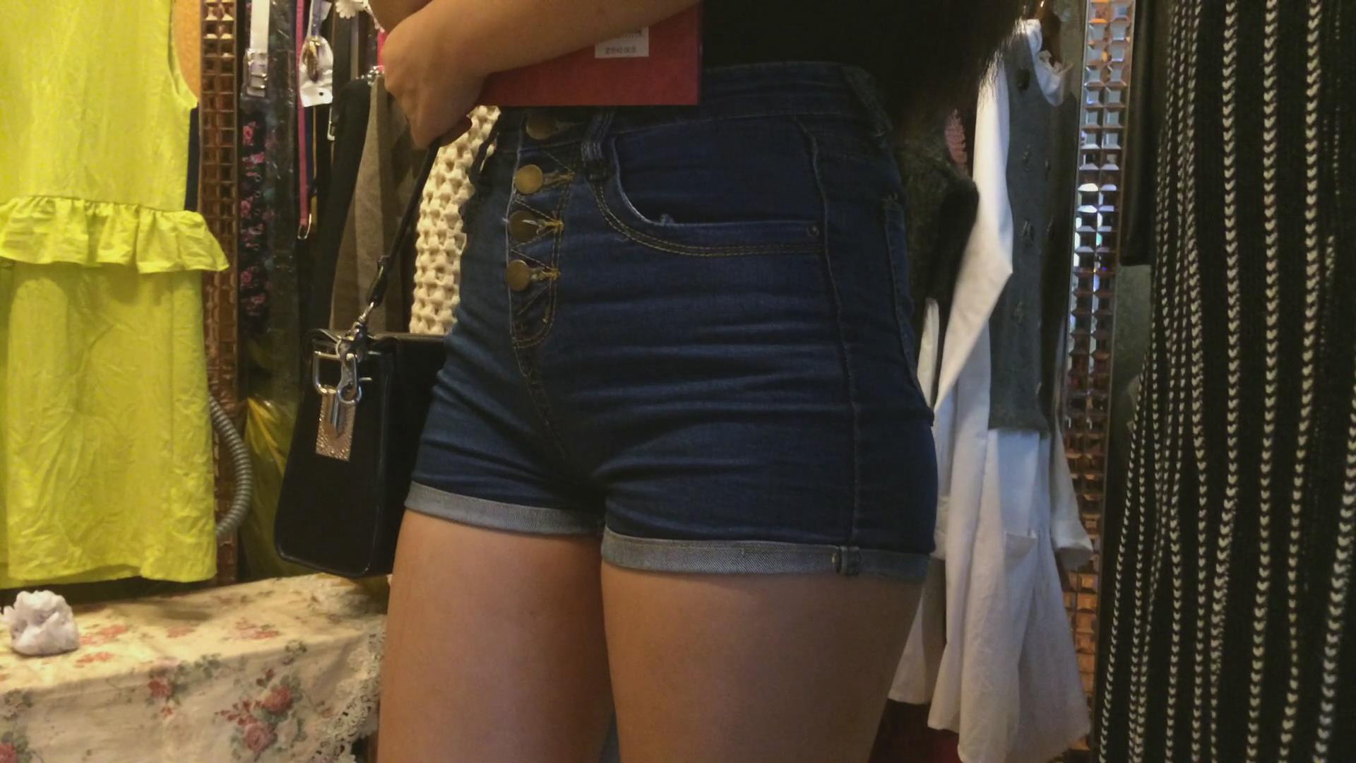 街拍高腰热裤圆臀妹子逛服装店 编号4453