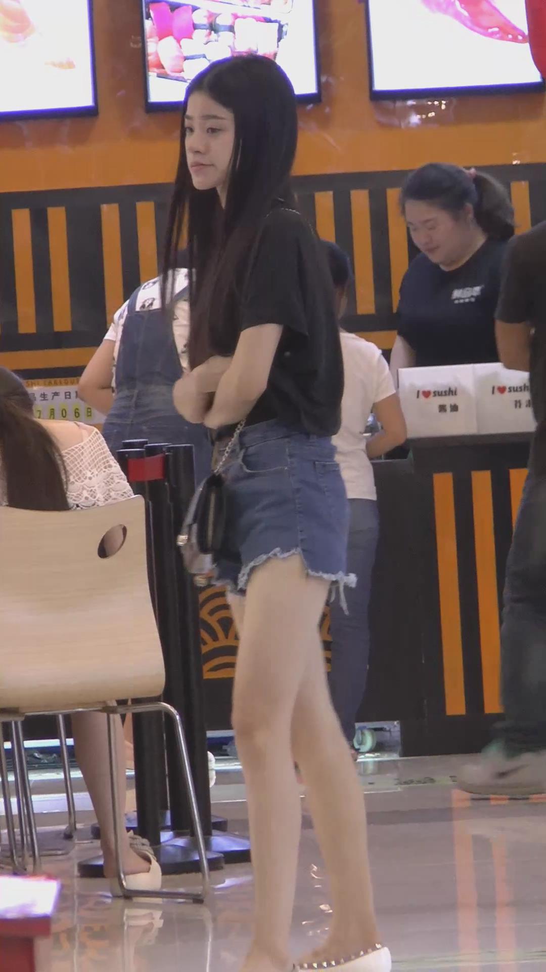 街拍牛仔热裤苗条长发美女服装店挑衣服 编号4459