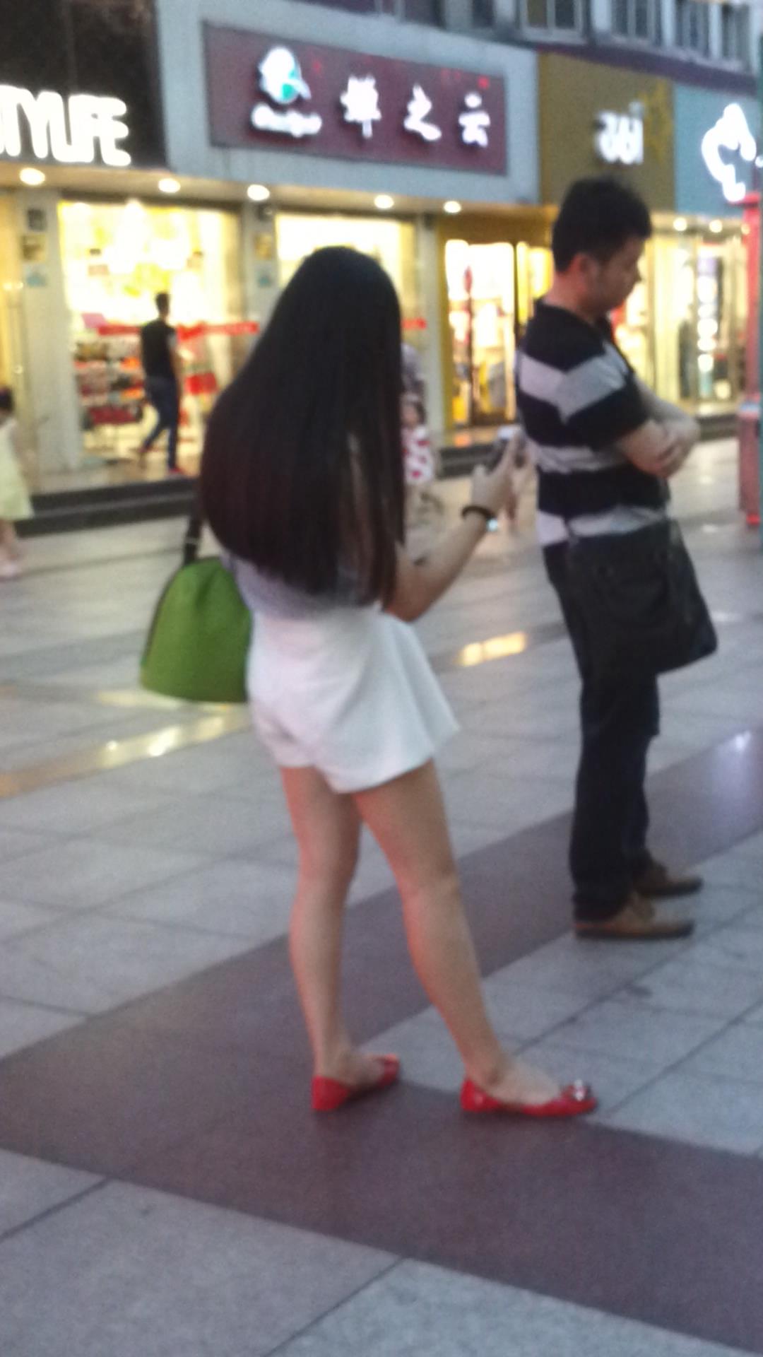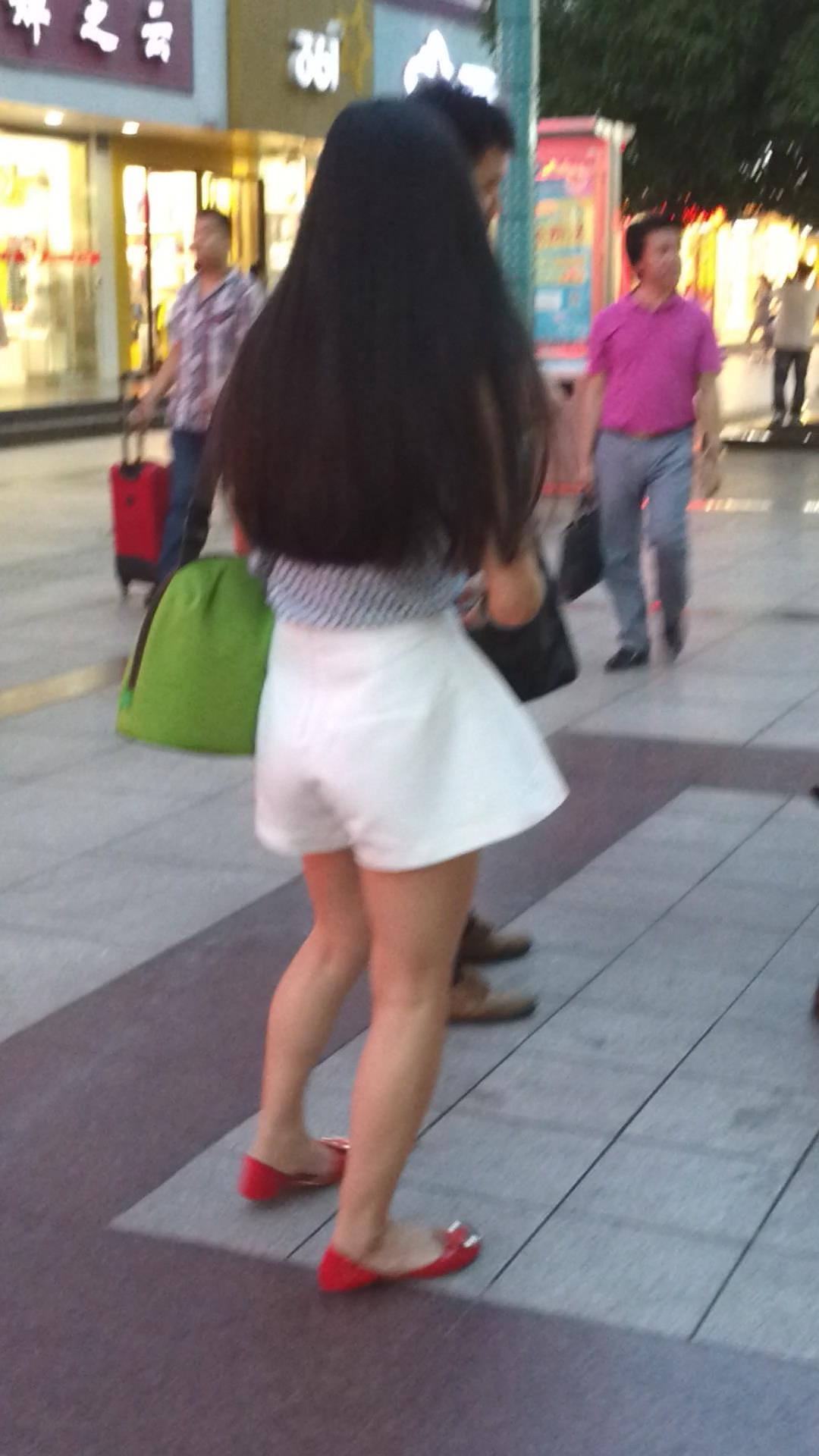 宽松热裤苗条身材小红色平底鞋长发美女 编号4584