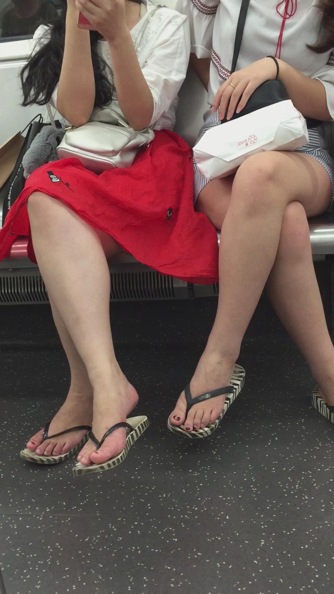 地铁上的人字拖美腿玉足二人组 编号1720