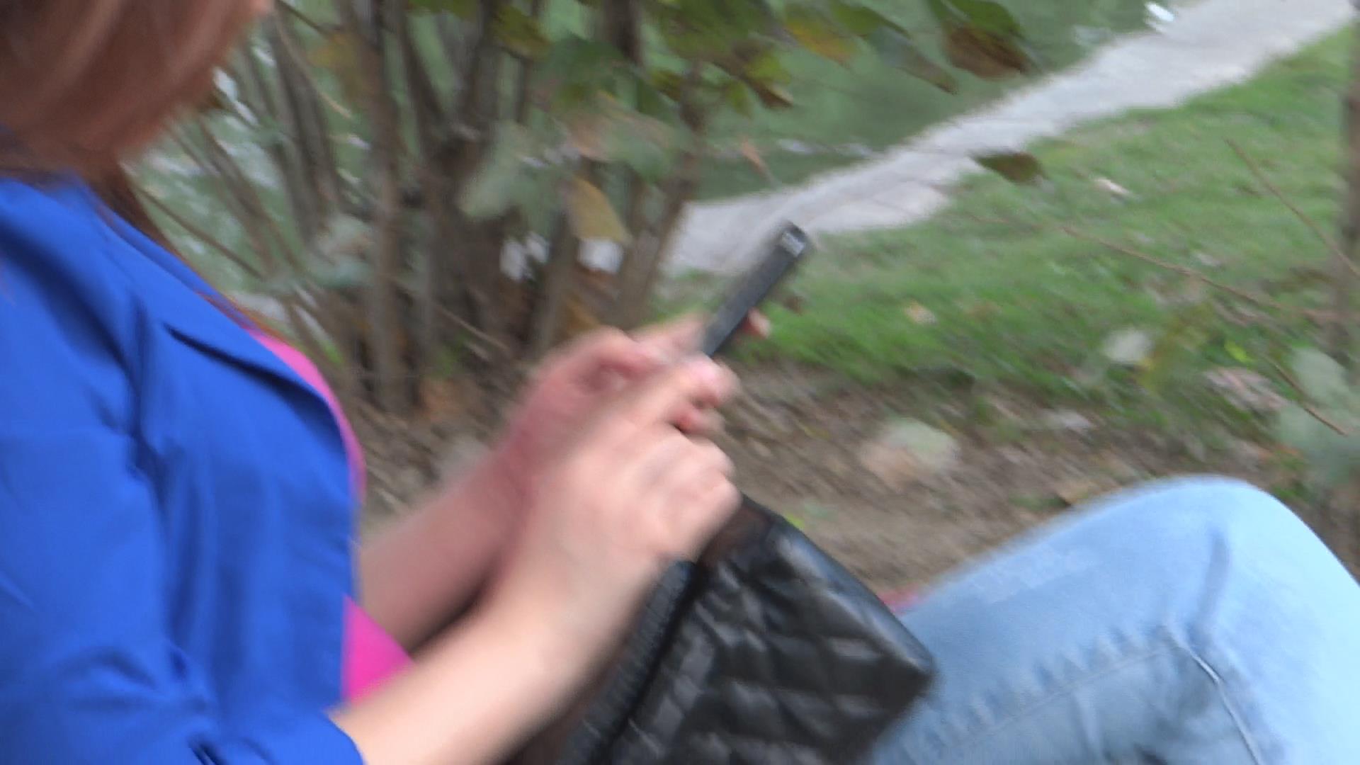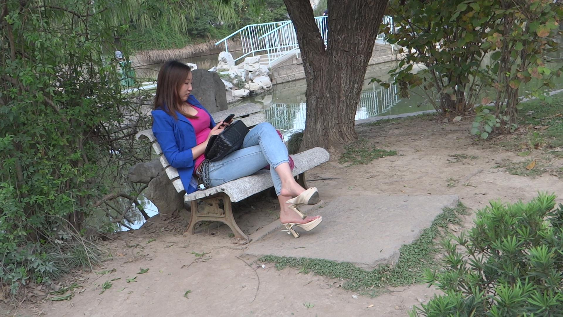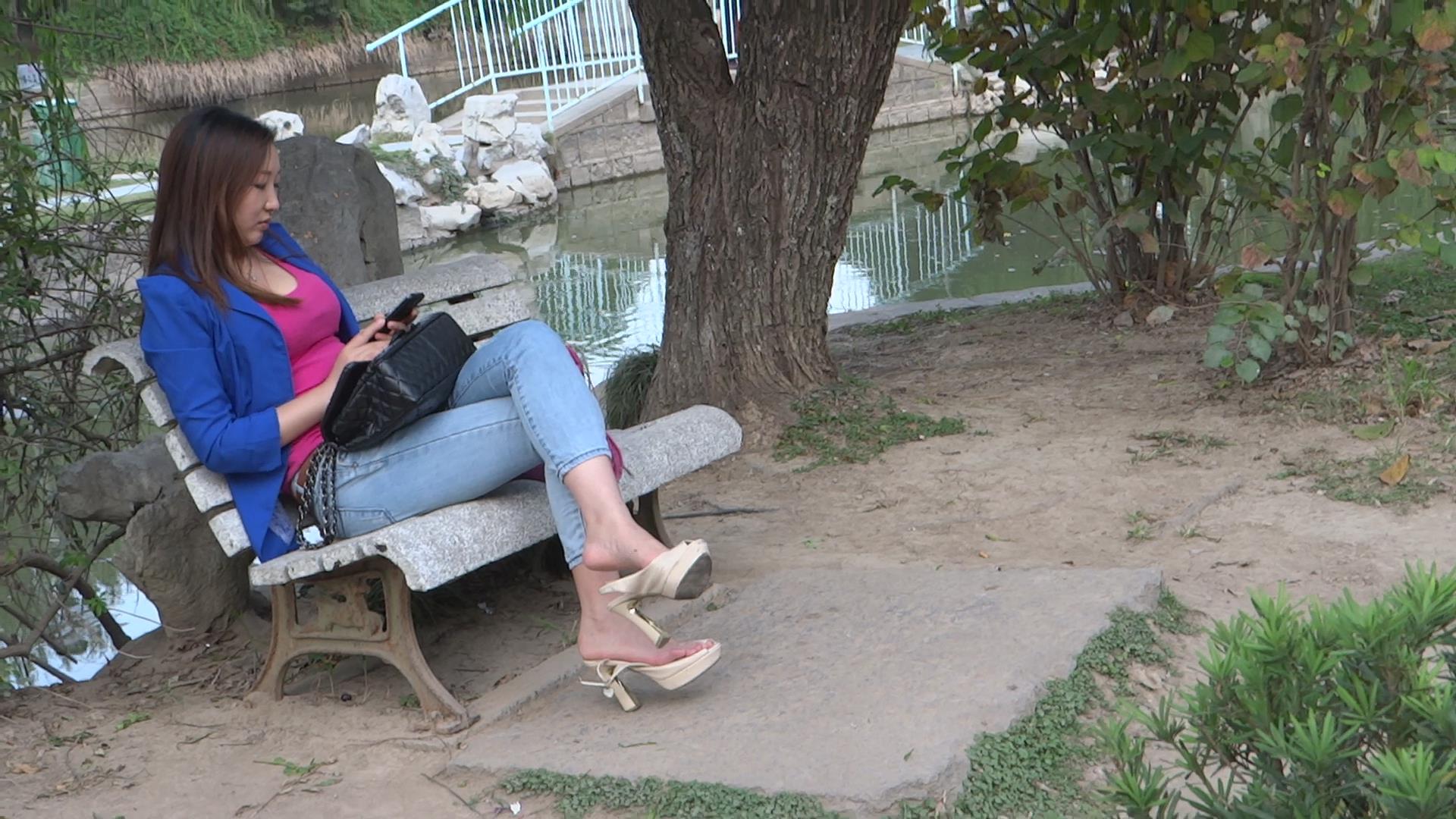 近距离特写公园石凳上玩手机得丰满MM挑鞋 编号1744