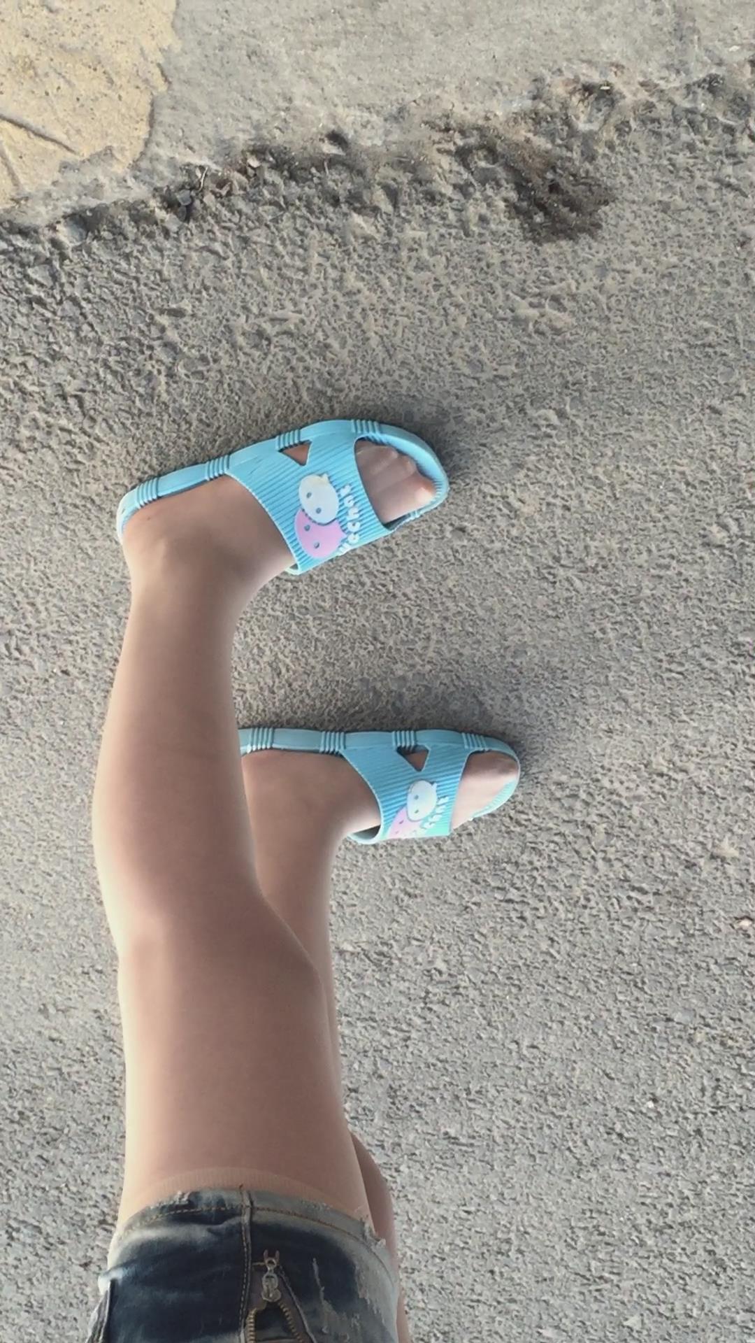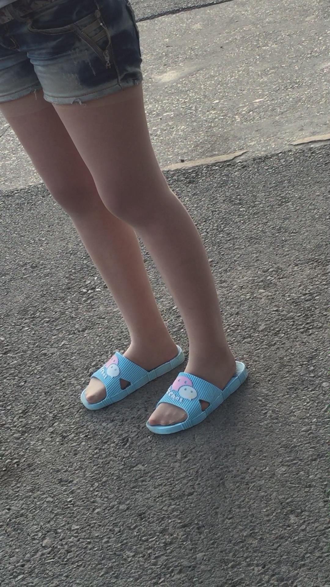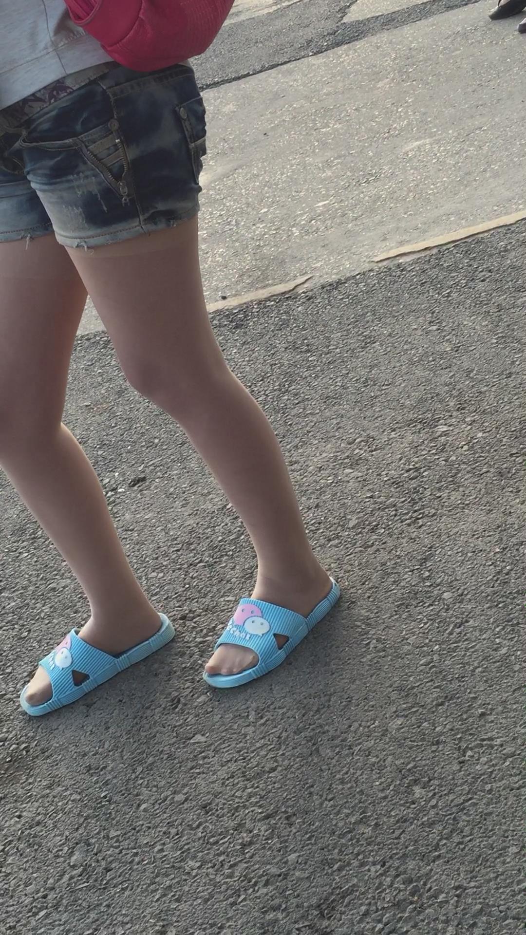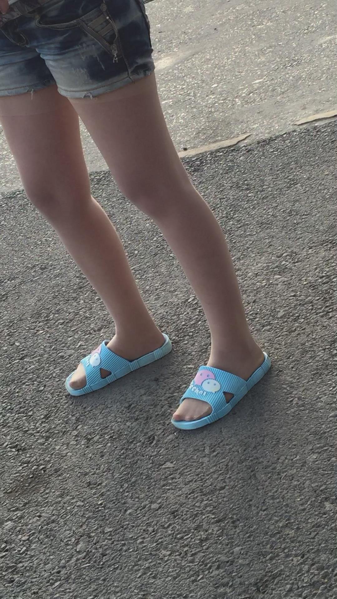 拖鞋丝袜美足牛仔热裤小美女 编号1773