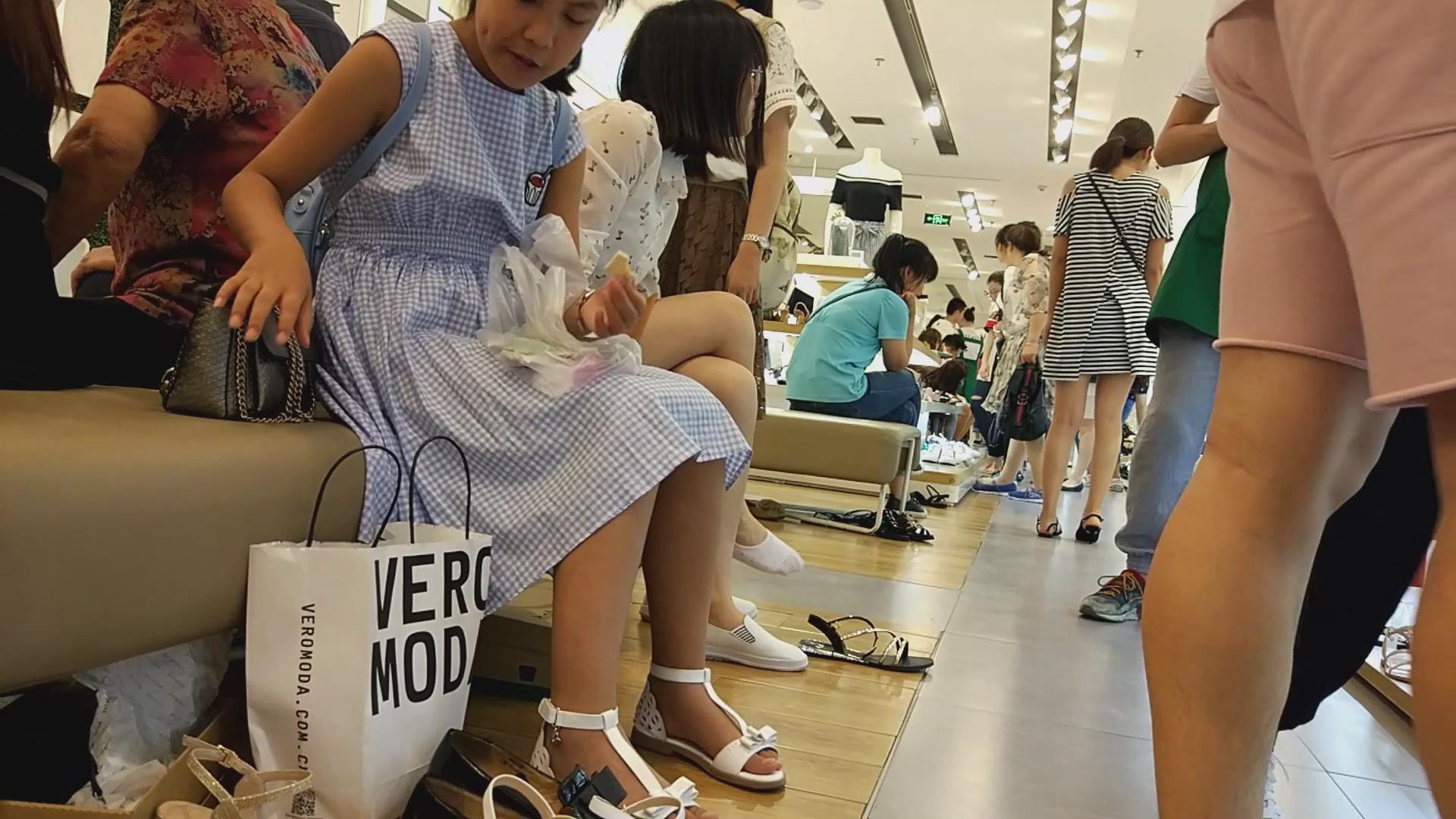 街拍鞋店试鞋的美腿丝足美女 编号6427