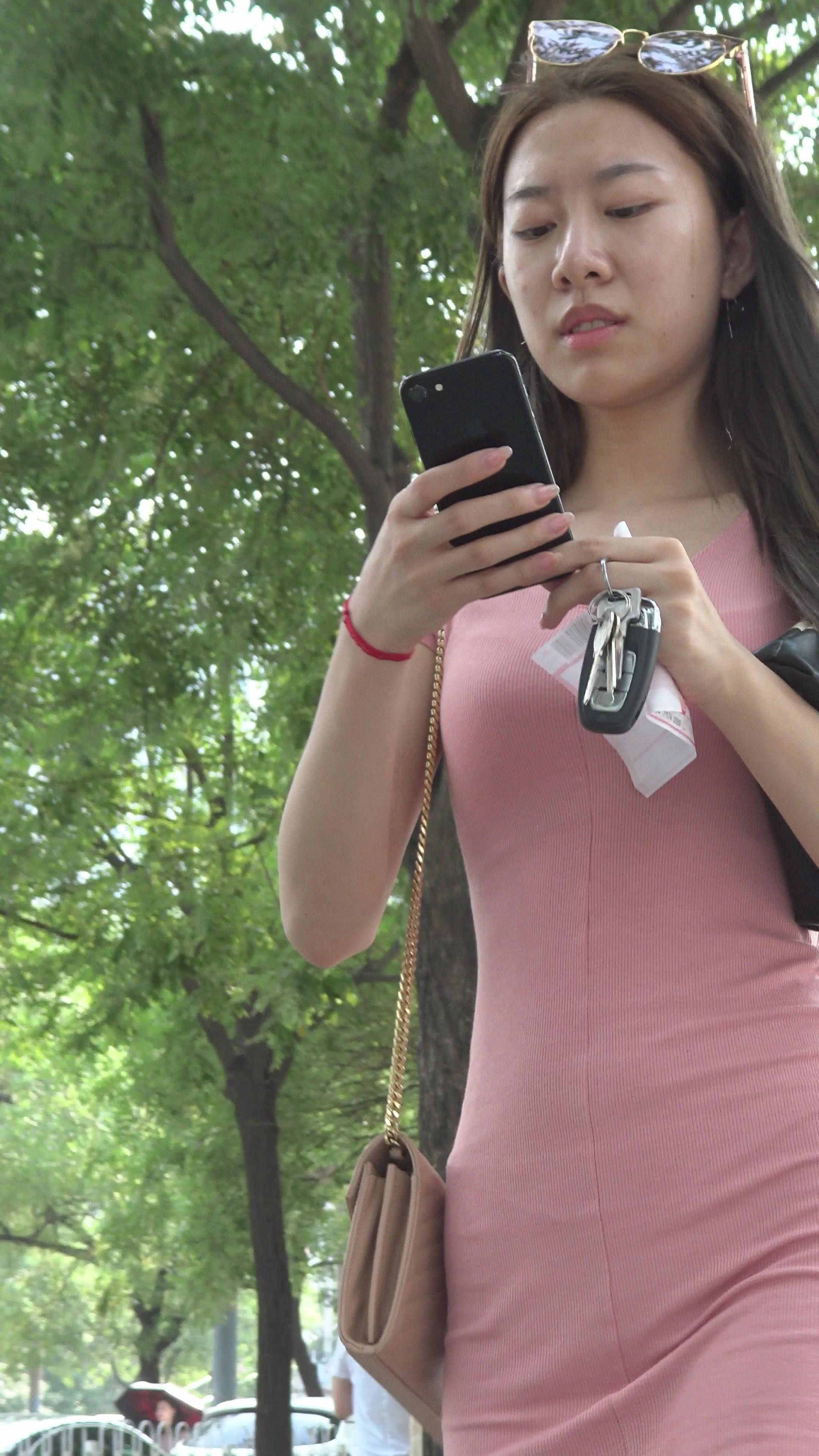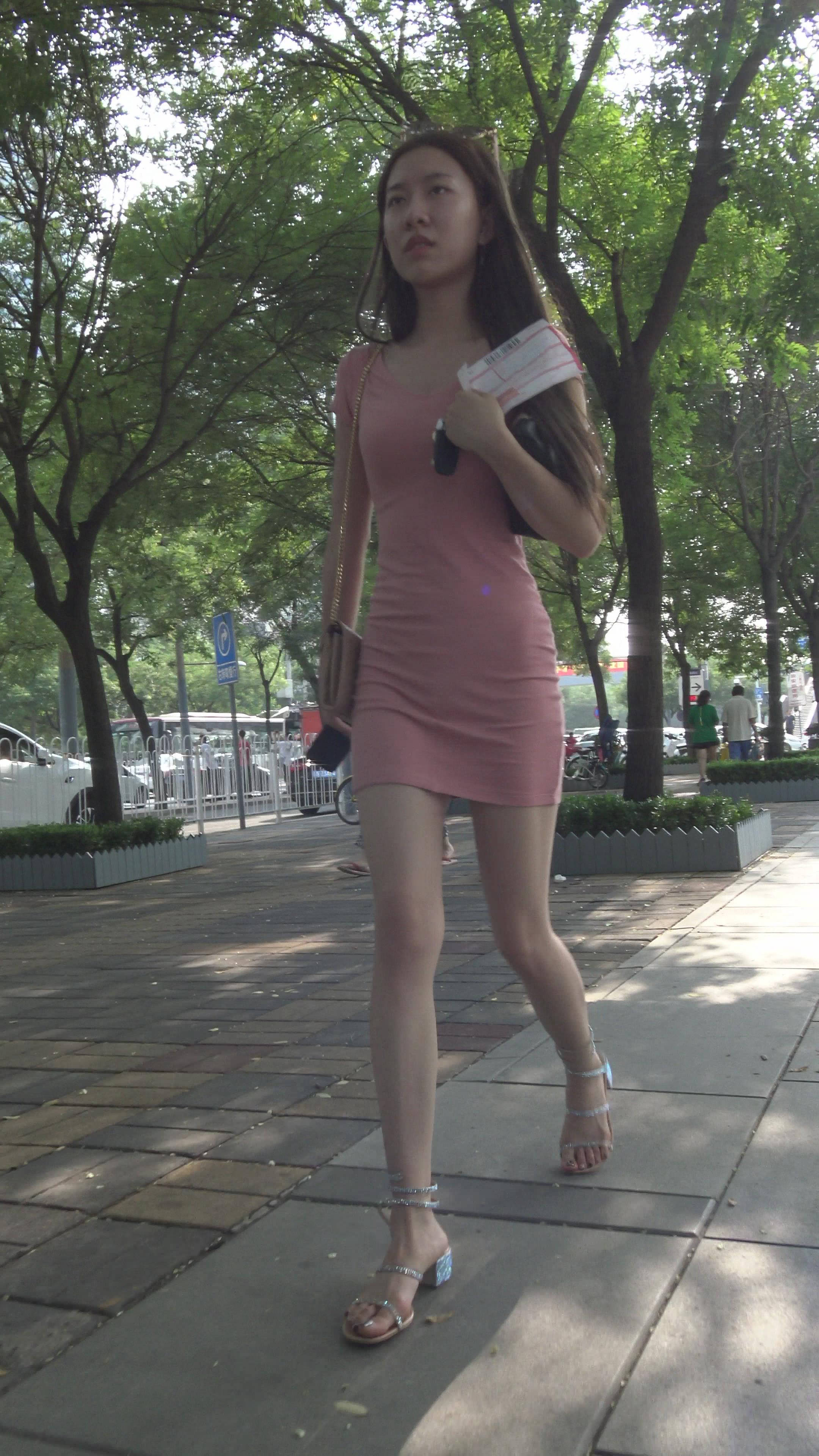 4K 粉色紧身裙街拍美图气质女神姐姐 编号7965