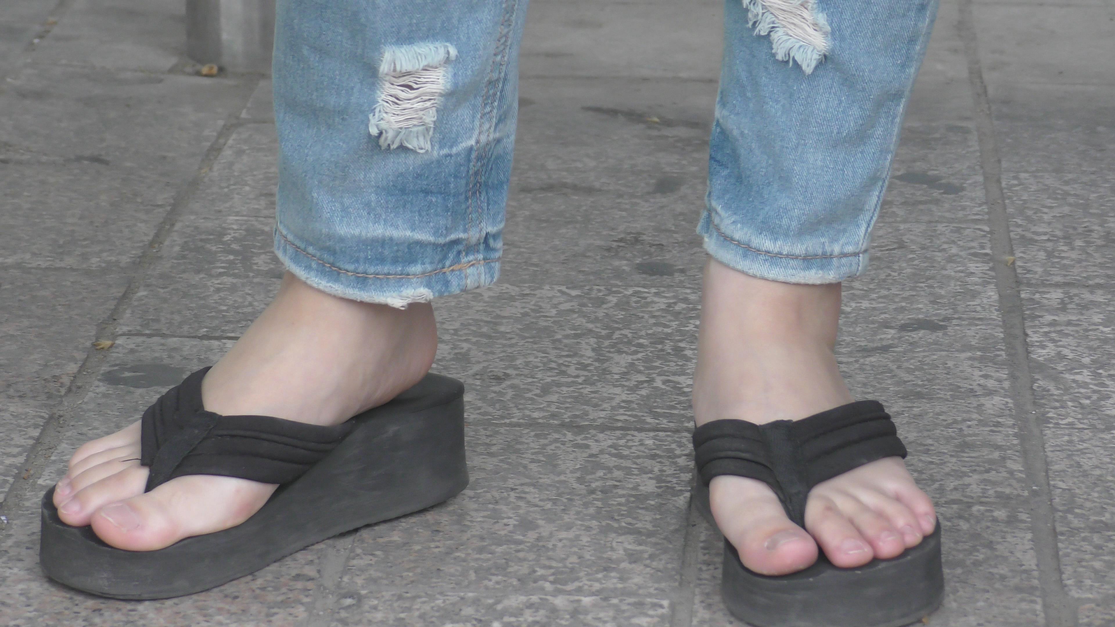 4k-黑色松糕鞋洁白干净素脚丫 编号6506