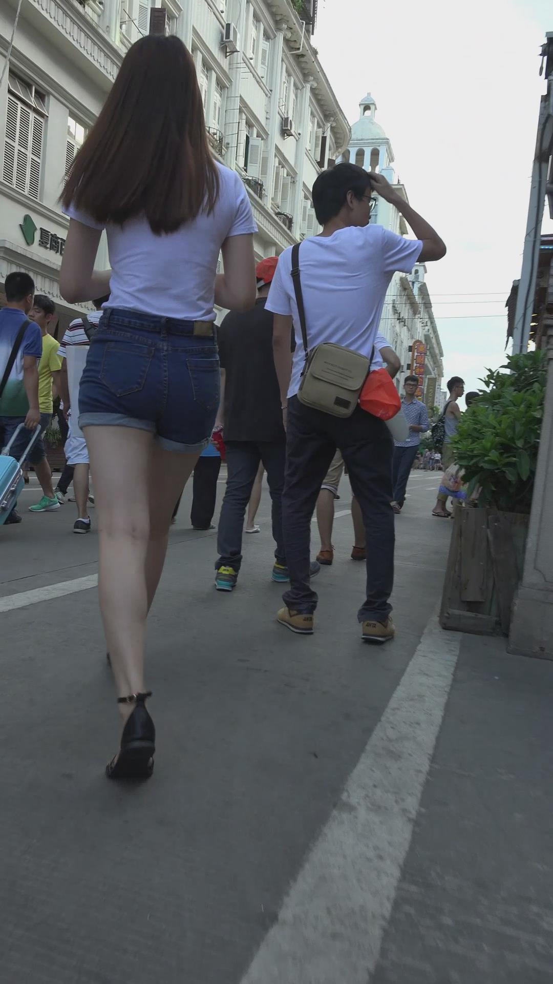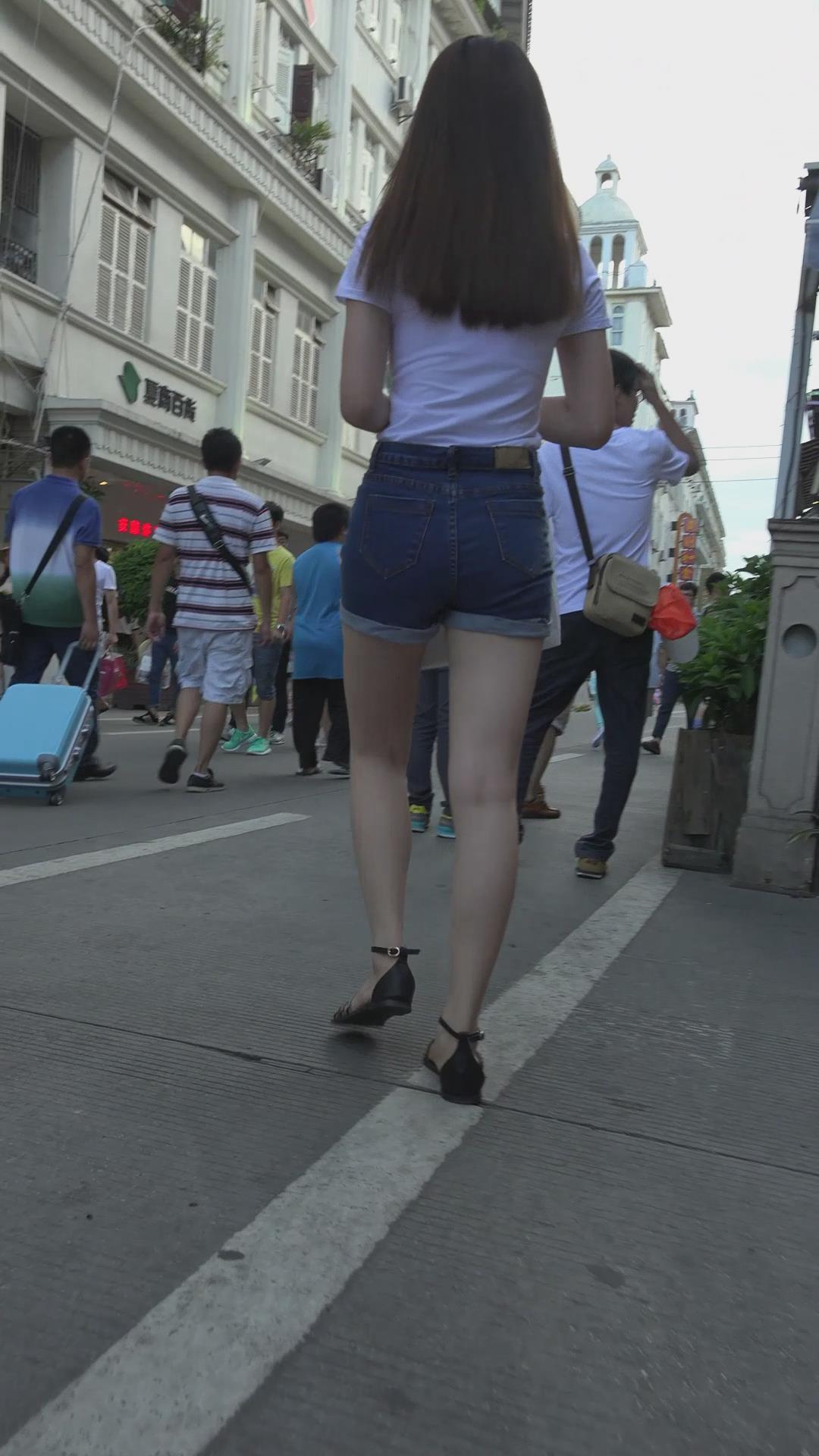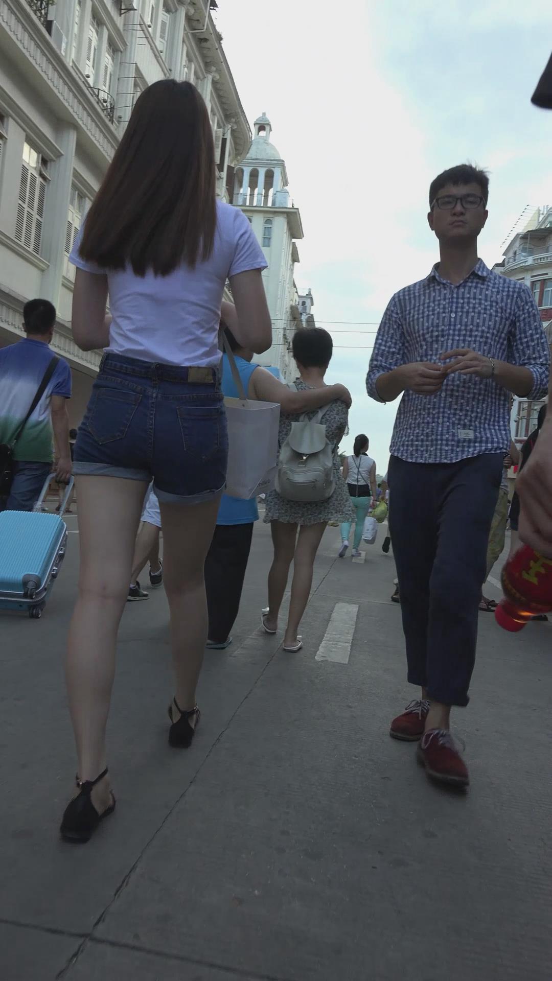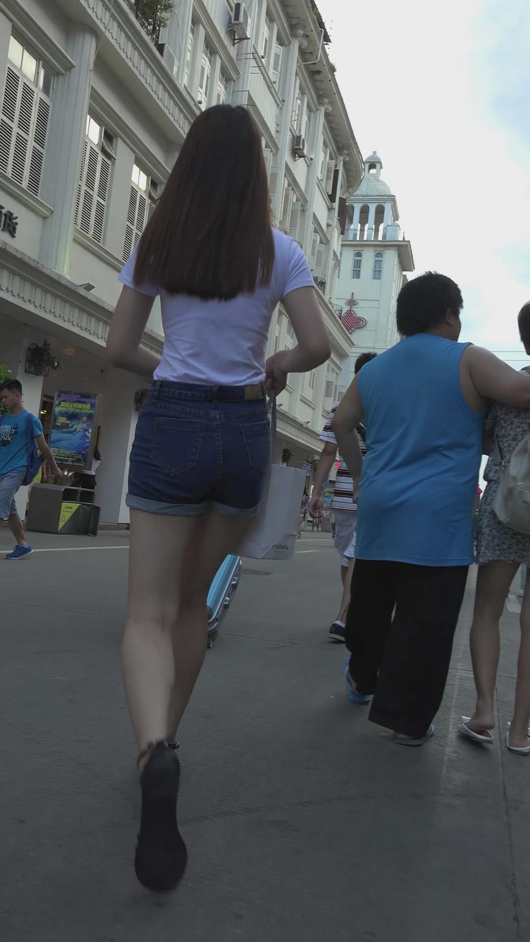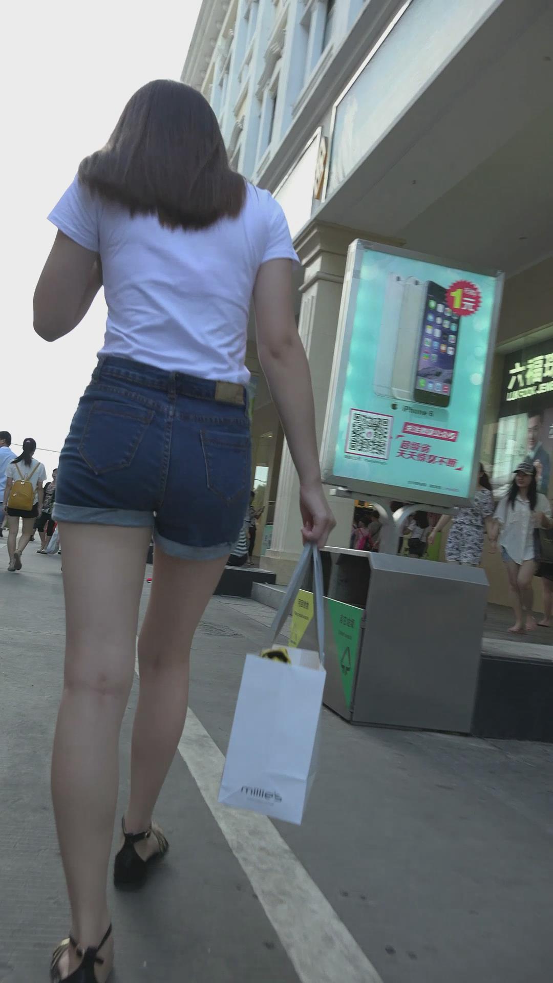 街拍美臀白腿性感热裤美女 编号4615
