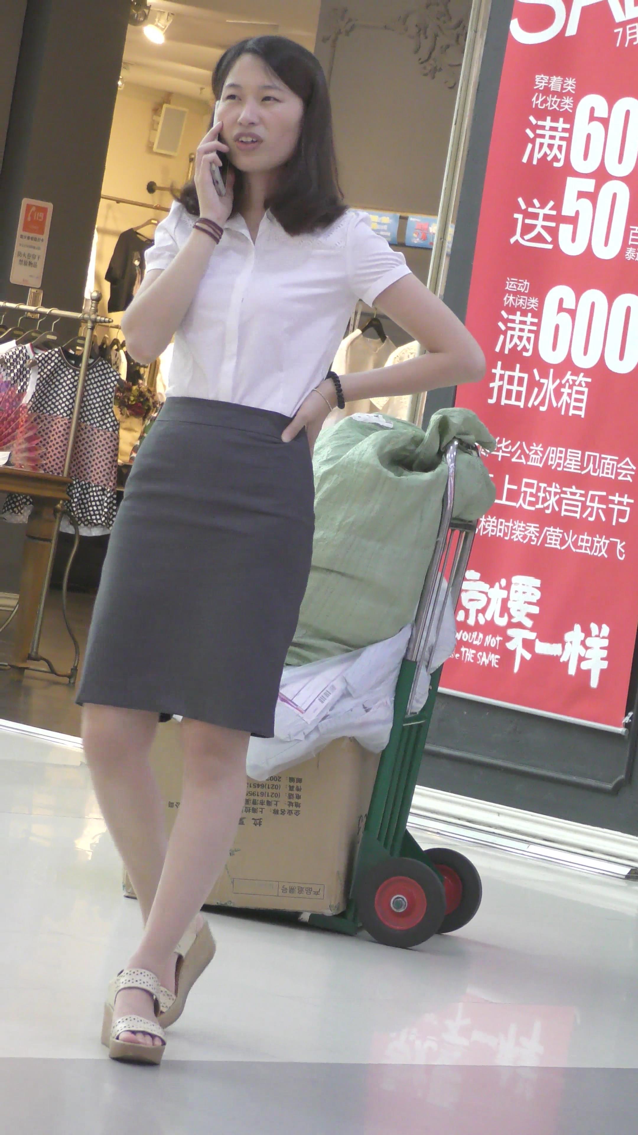 4k-正在打电话的白衬衫OL包臀裙售货员 编号6564