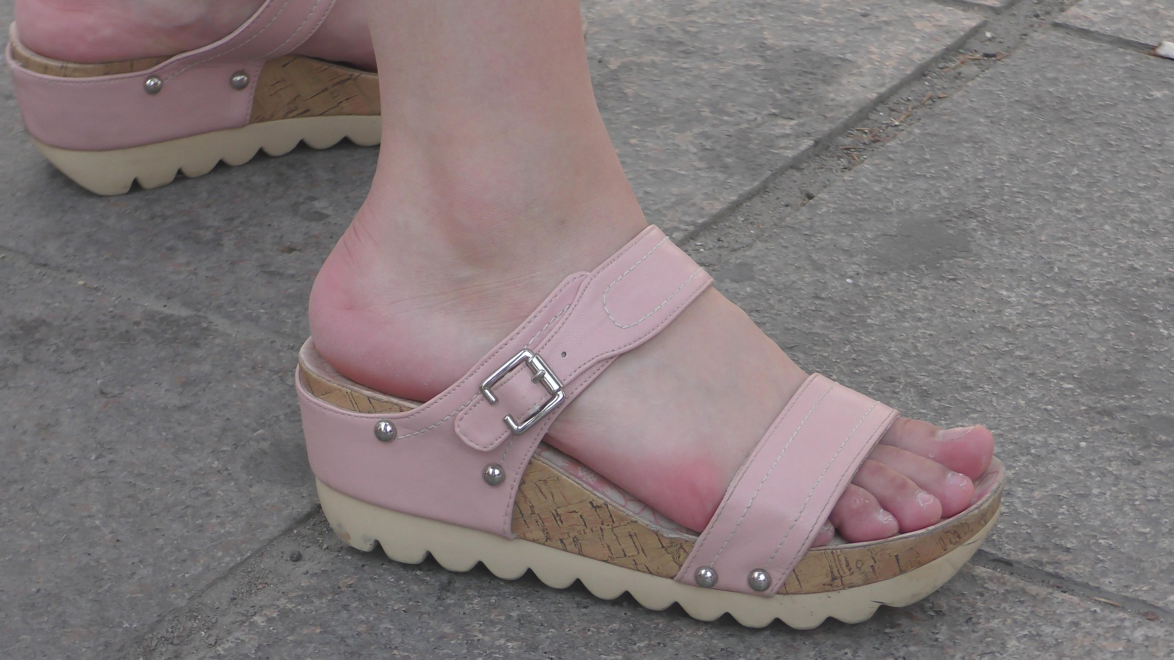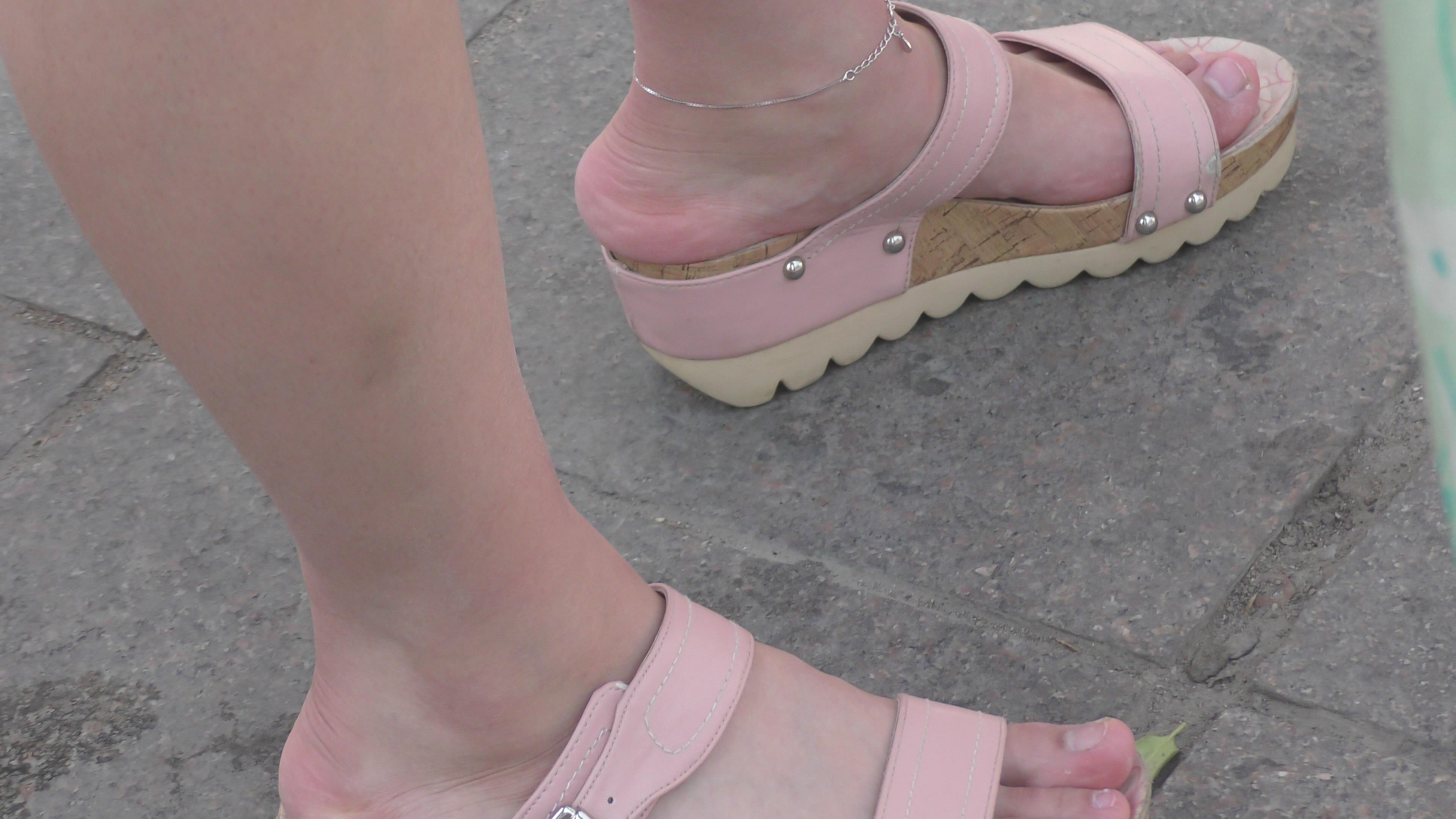 4k-逆天颜值的粉色坡高跟凉鞋美女,马尾辫更显清纯 编号6576