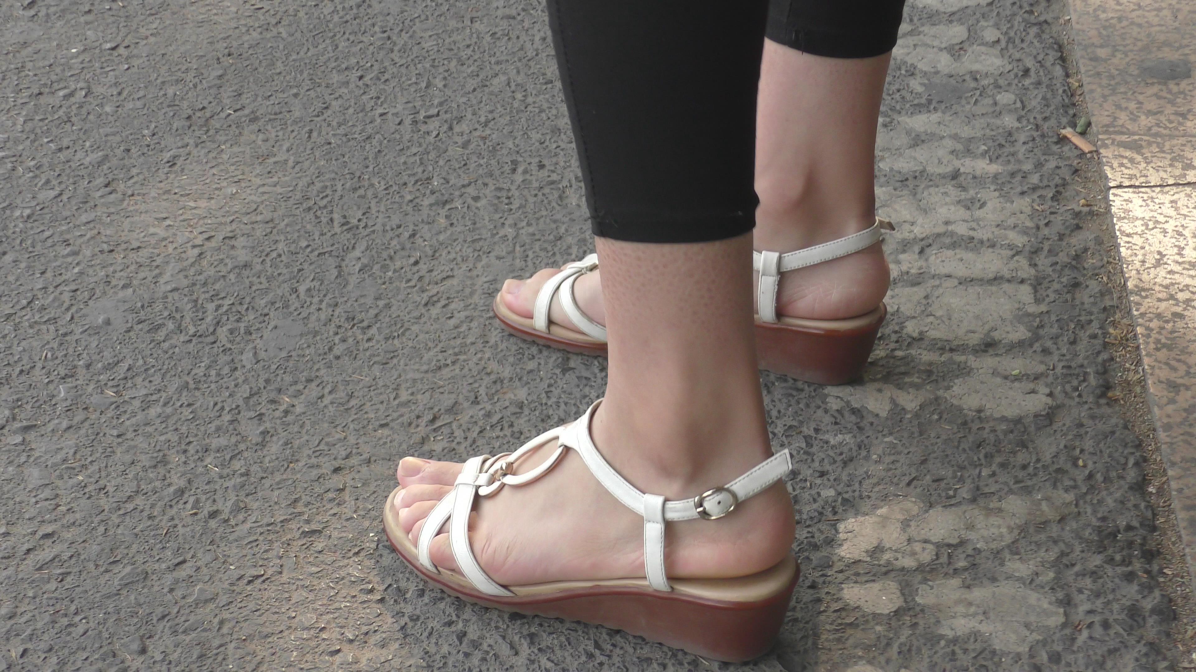 4k-等公车的光脚凉鞋素脚丫眼镜妹 编号6588