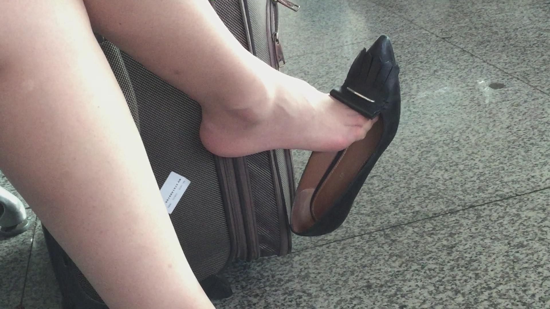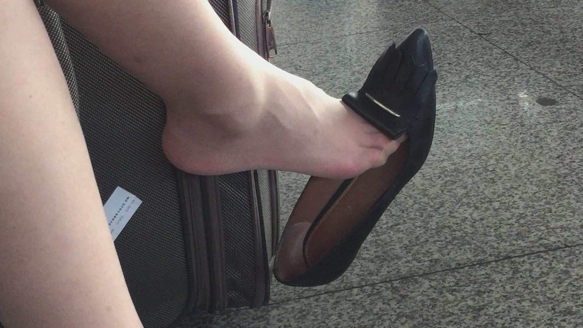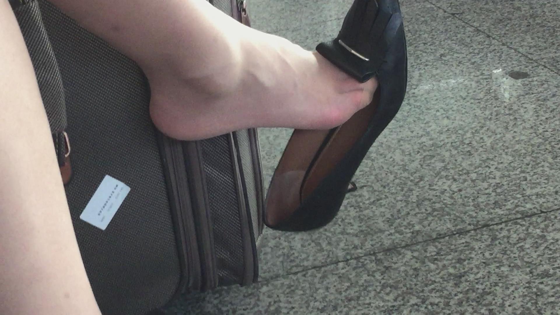 车站偶遇挑鞋的高跟美足少妇 编号6591