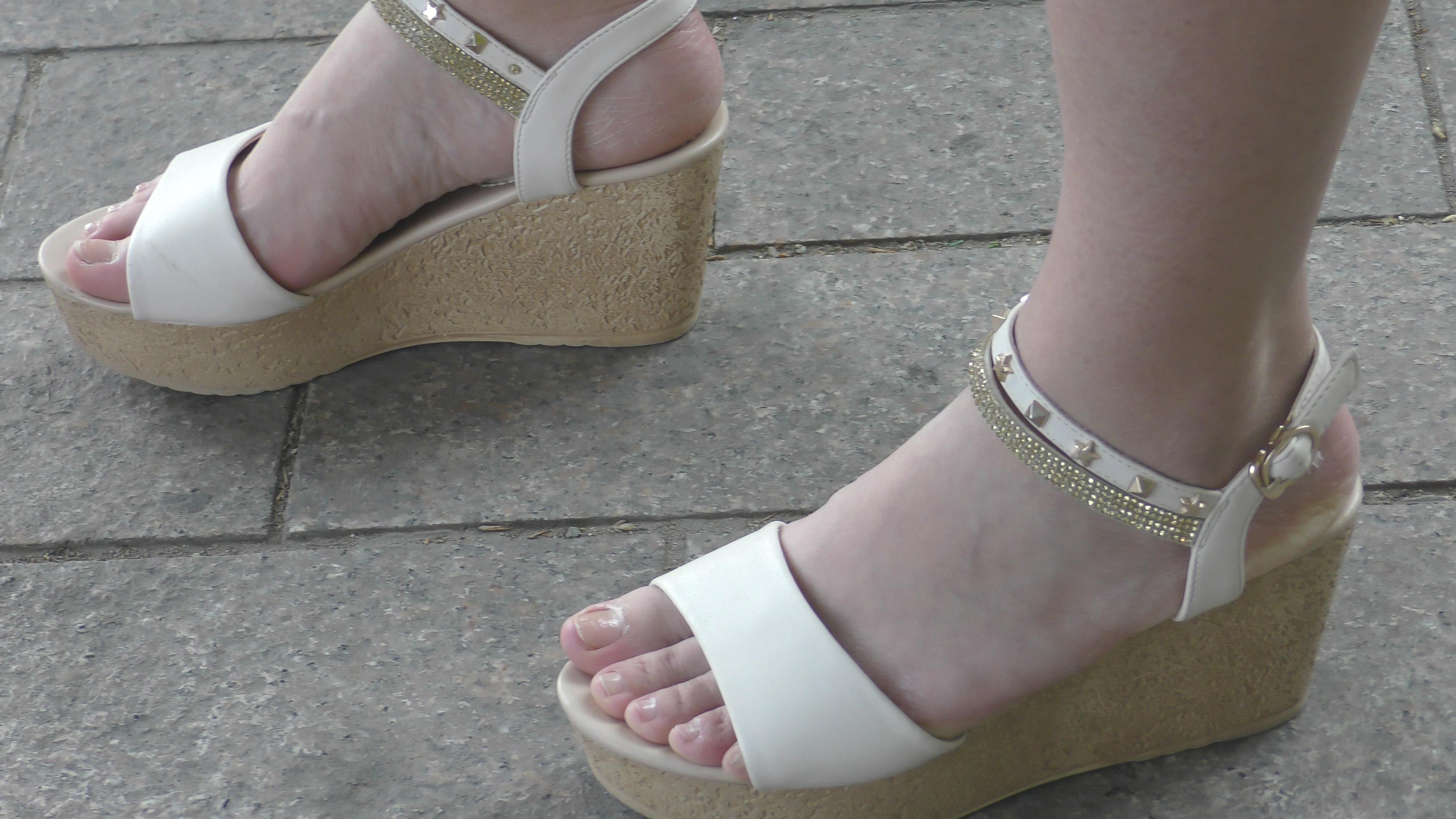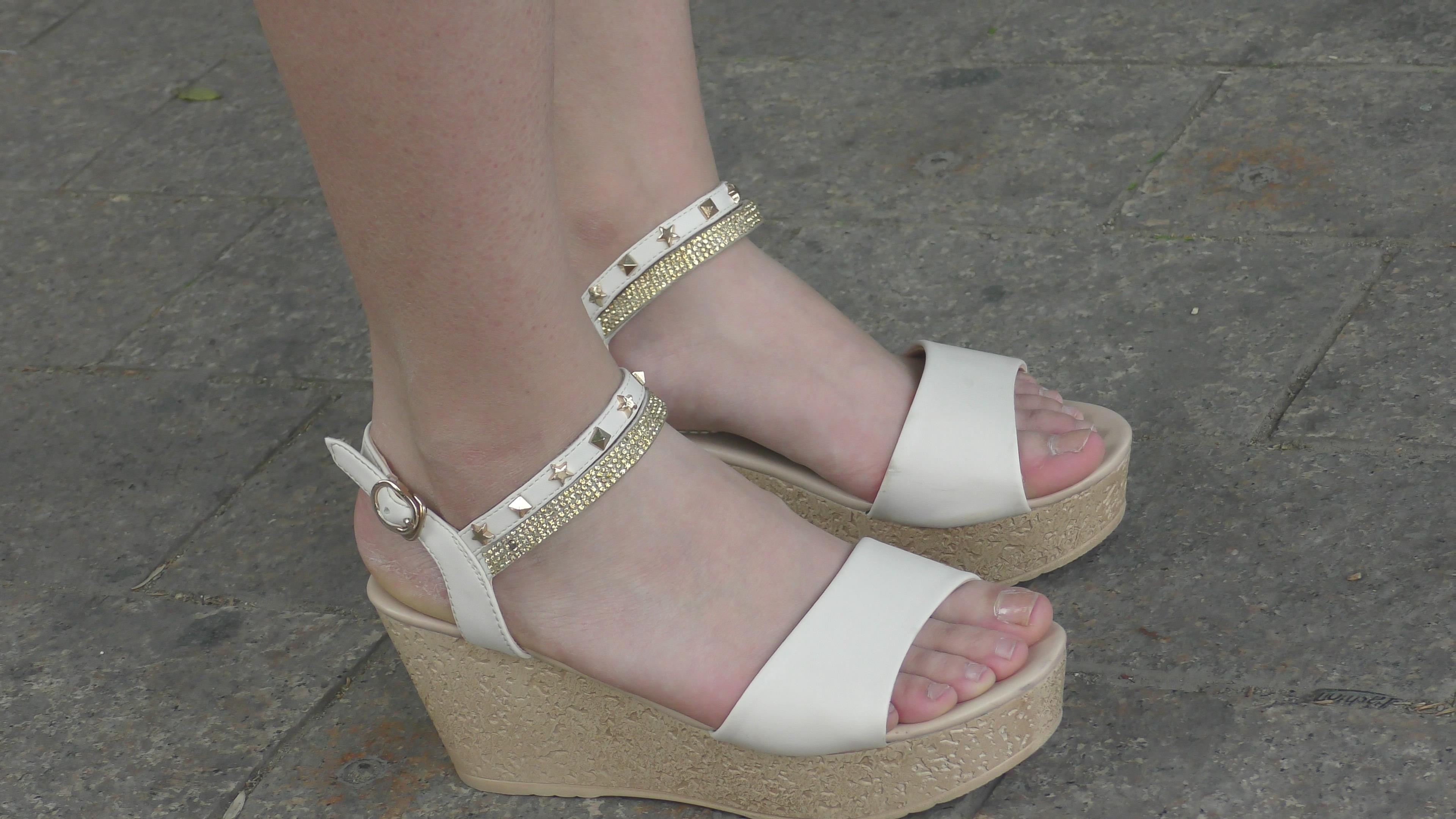 4k-干净素脚丫坡高跟凉鞋美足美女 编号6593
