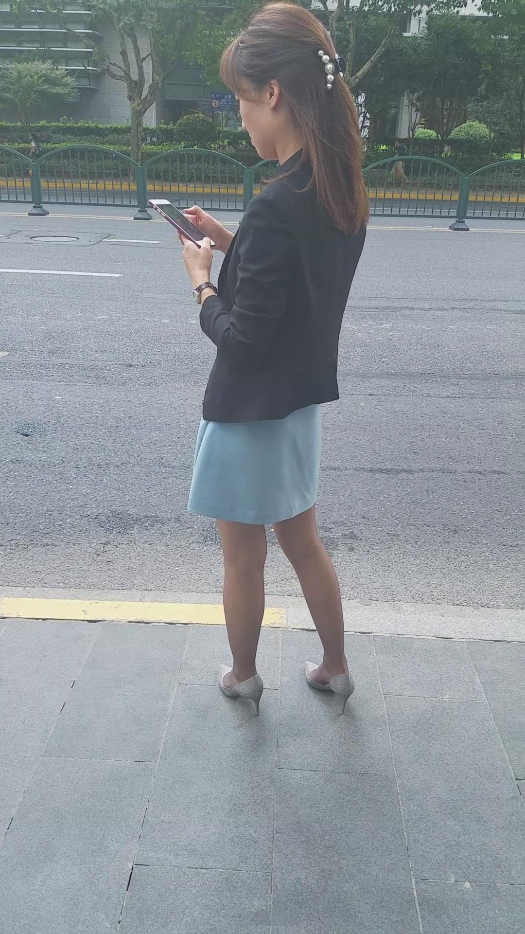迷人的黑丝短裙高跟街拍美女 编号2052