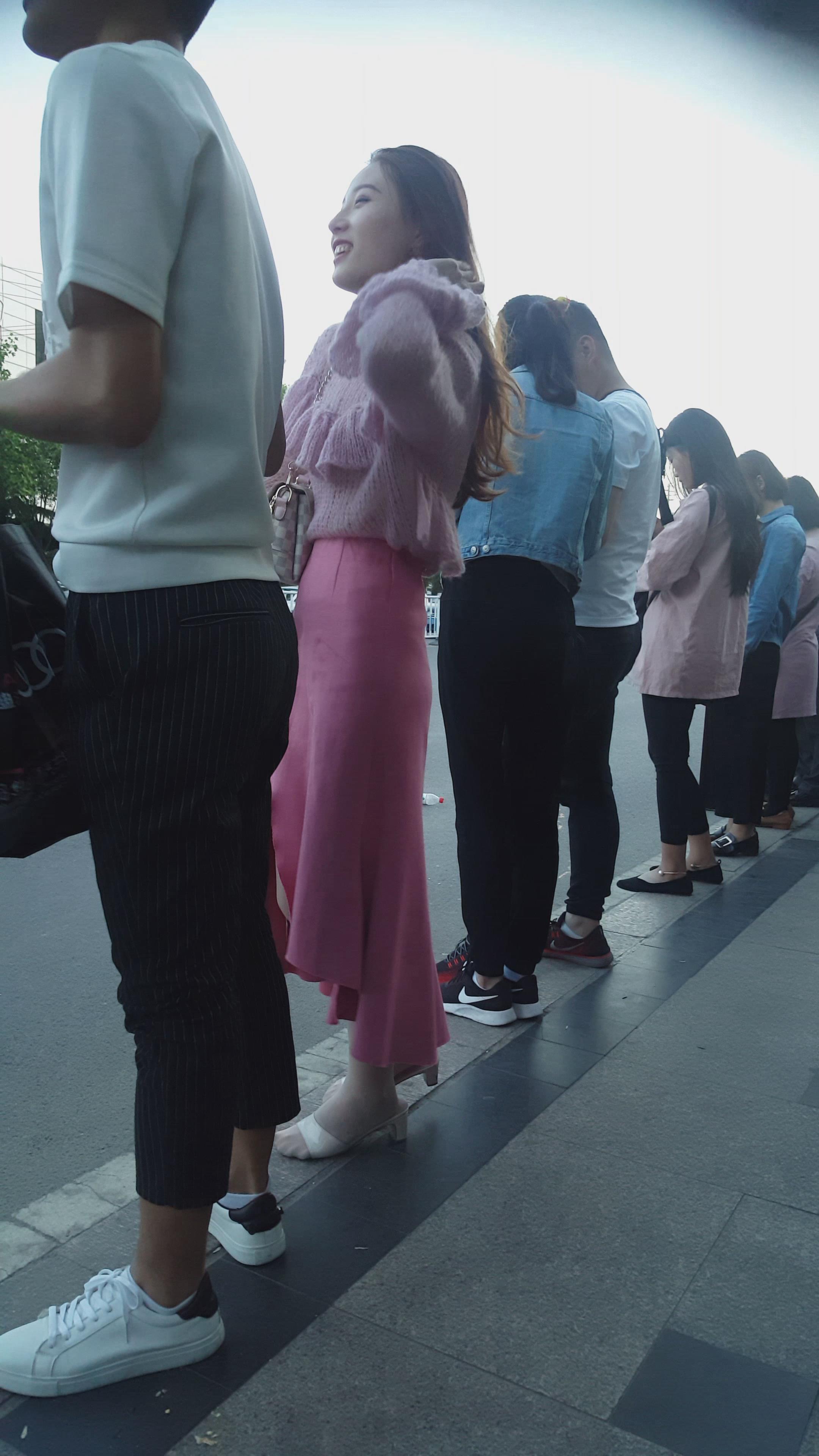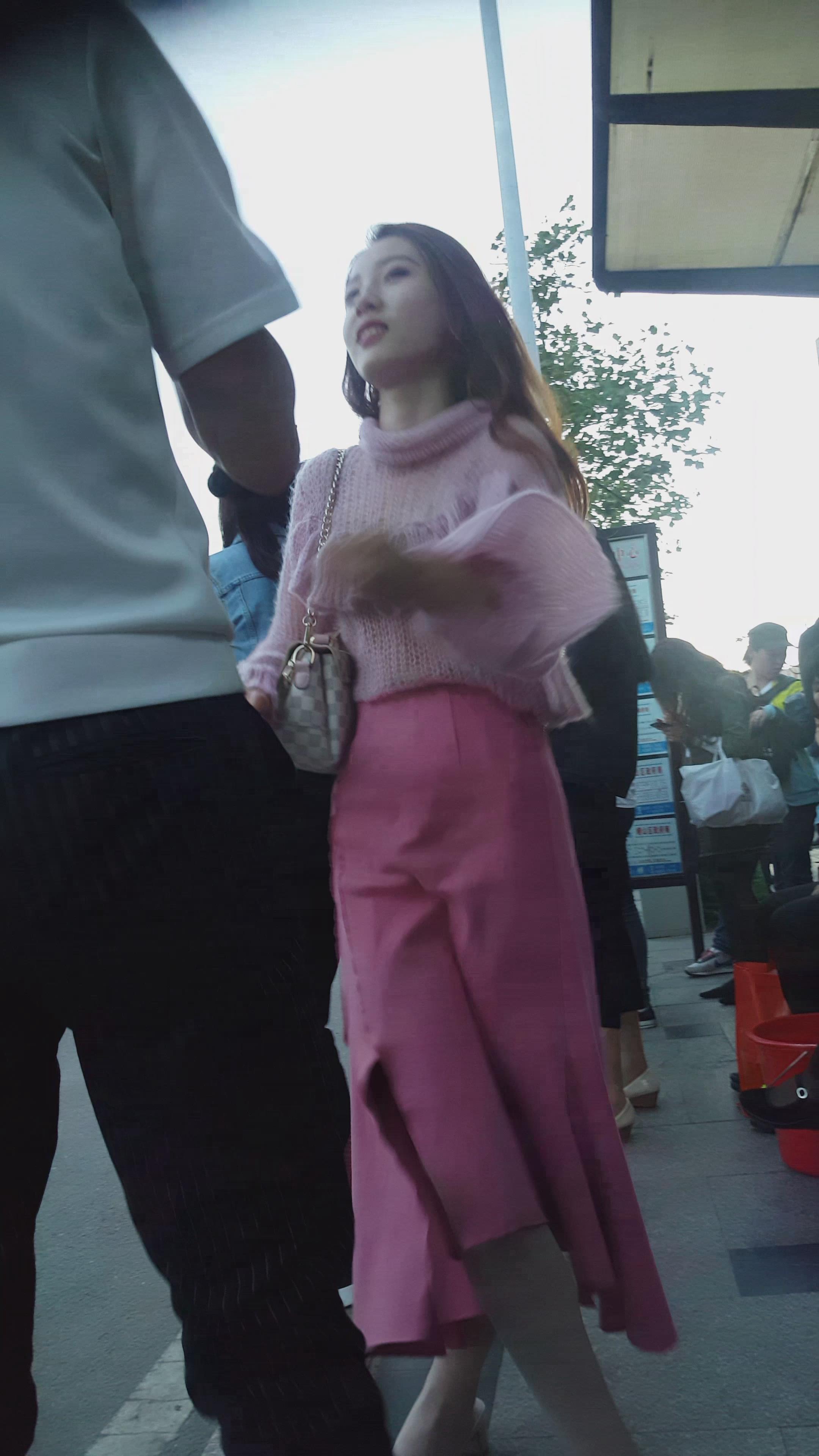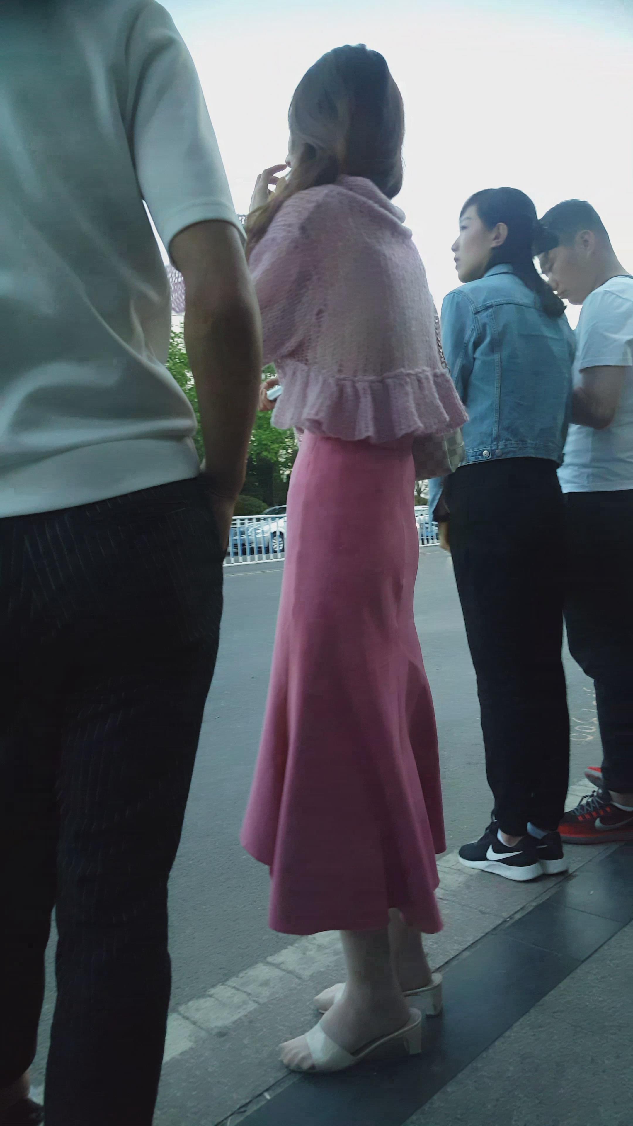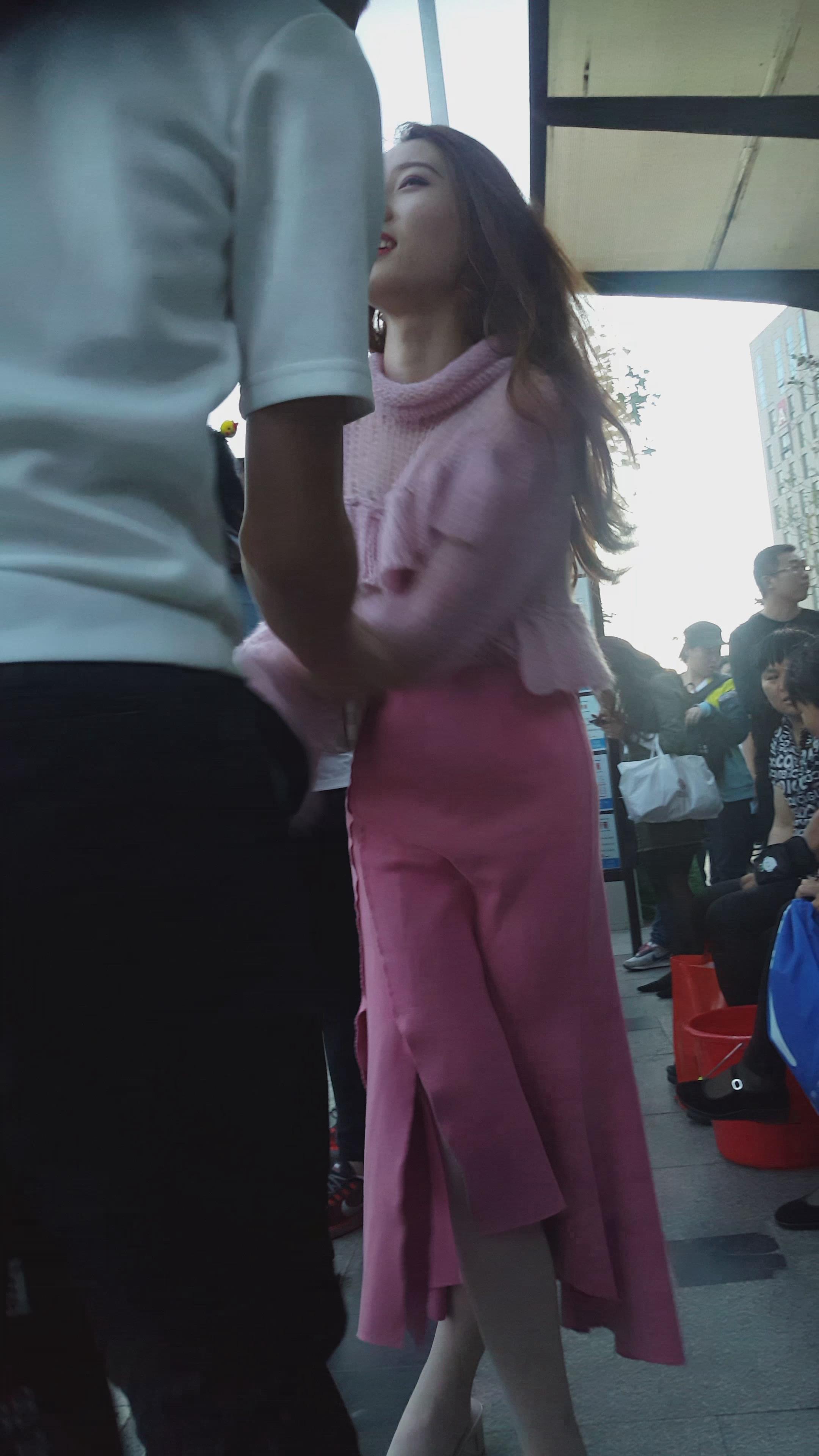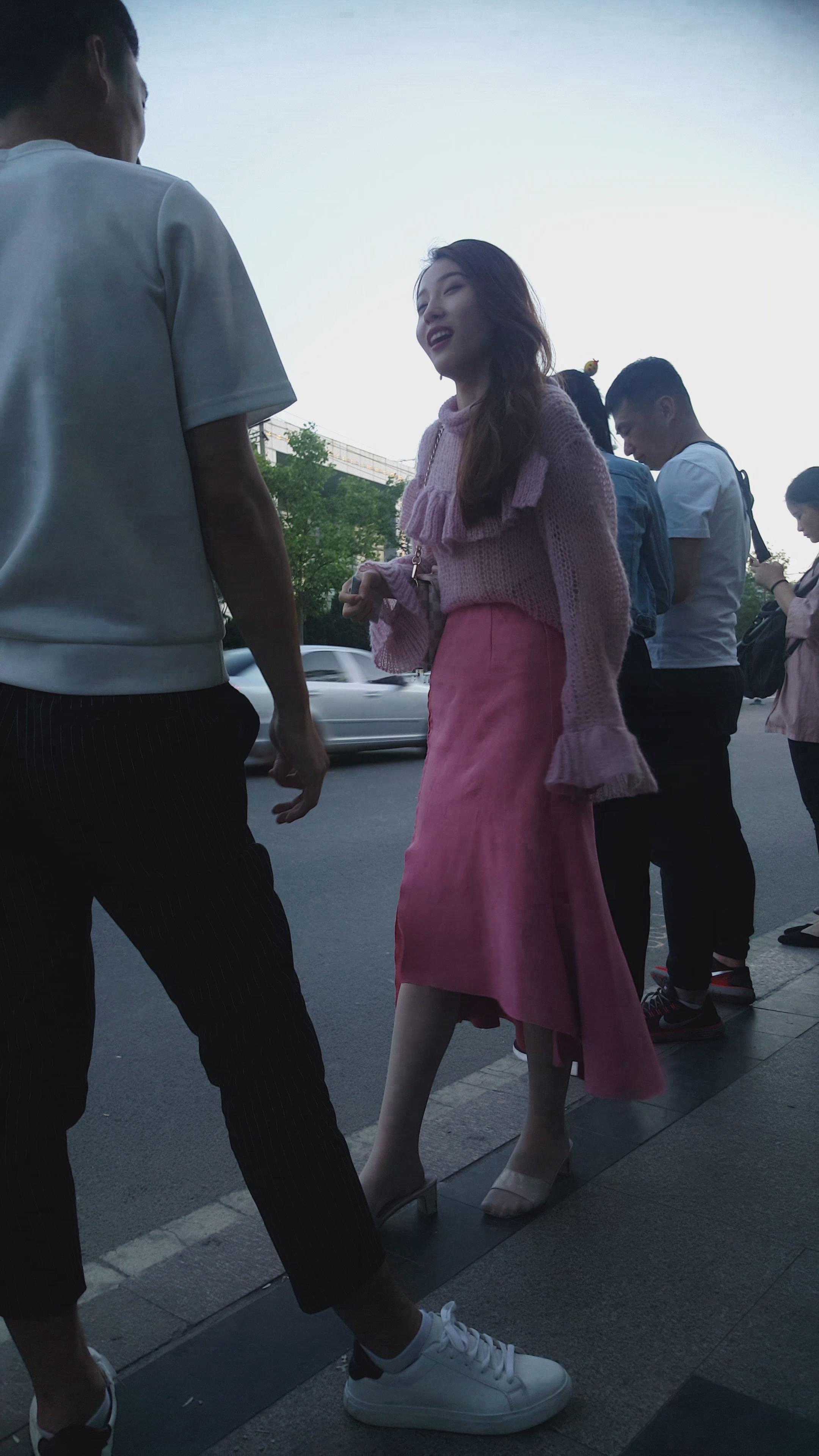 街拍粉色裙超气质高颜值美女 编号2060