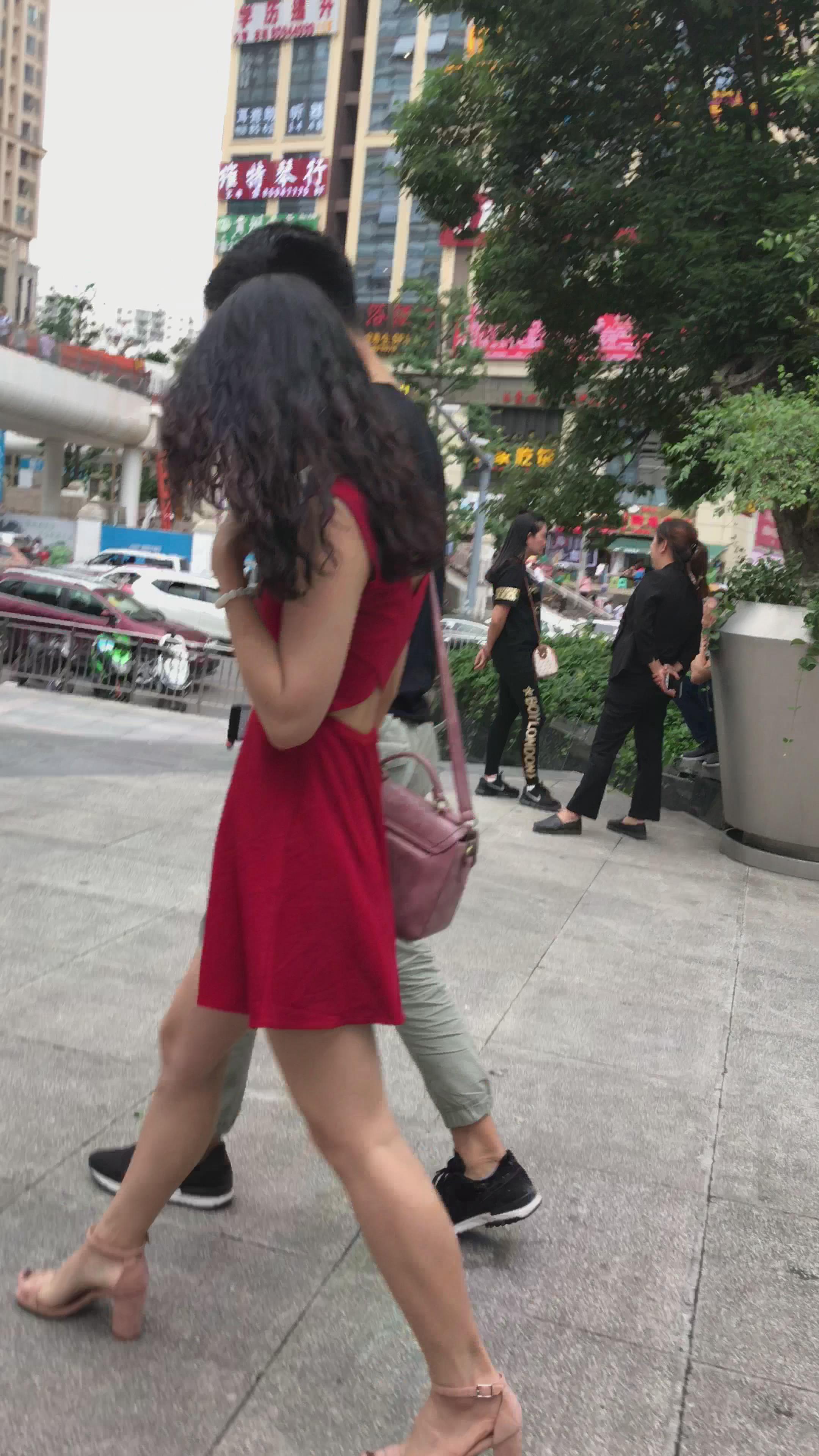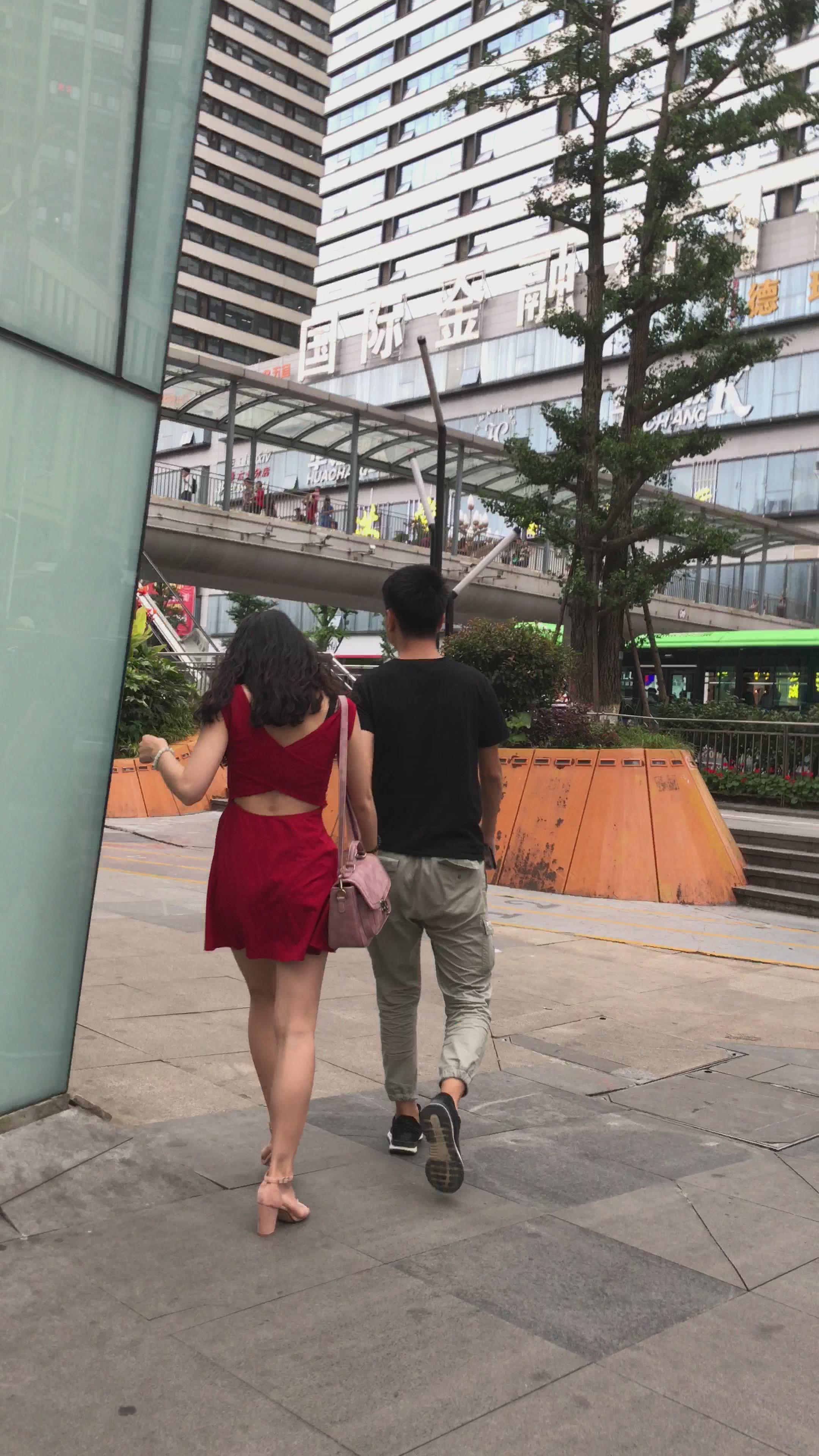 街拍红裙性感凉高跟美腿辣妹 编号2067