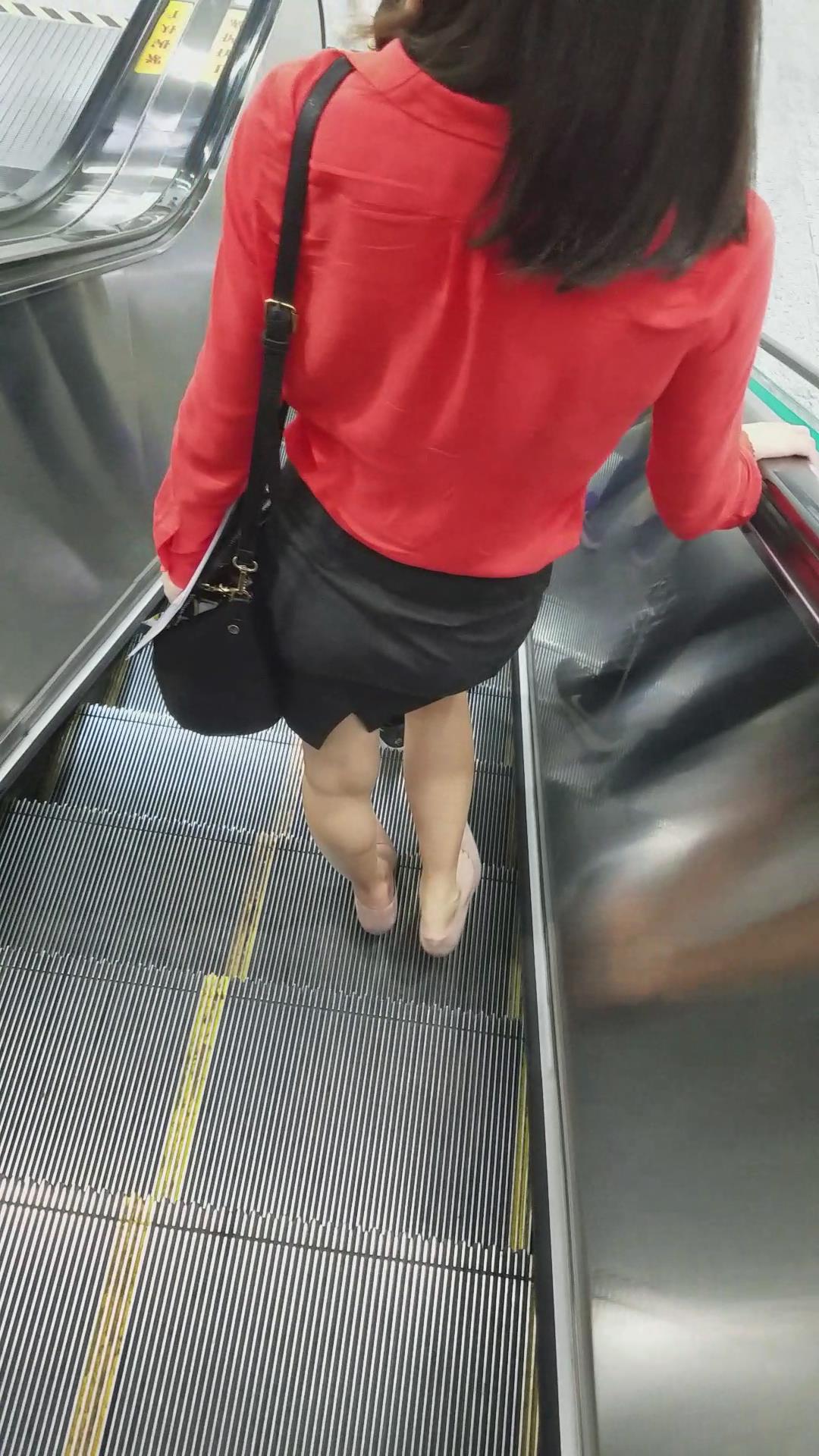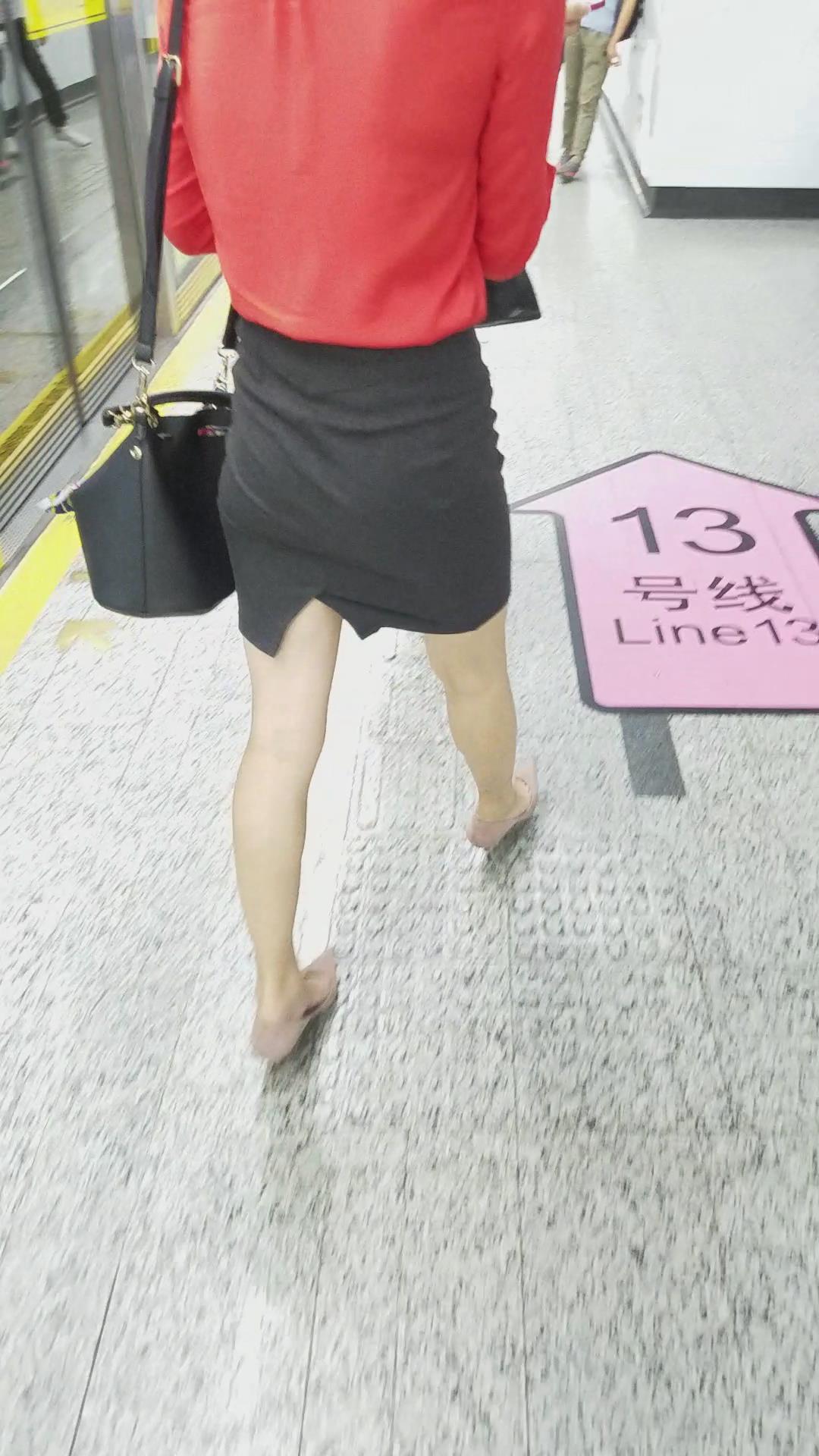 跟拍红衣街拍紧身裙高跟美女 编号2076