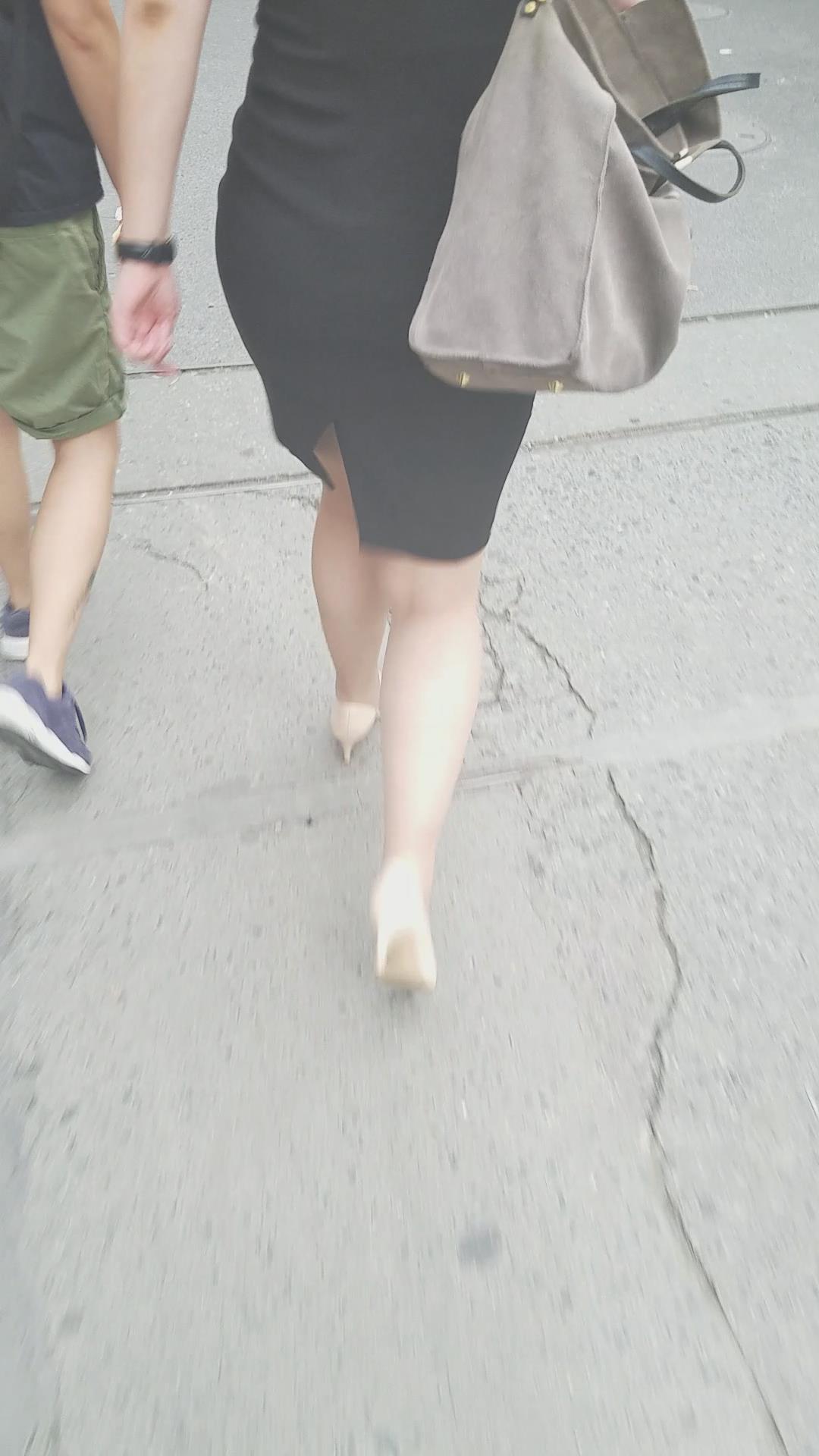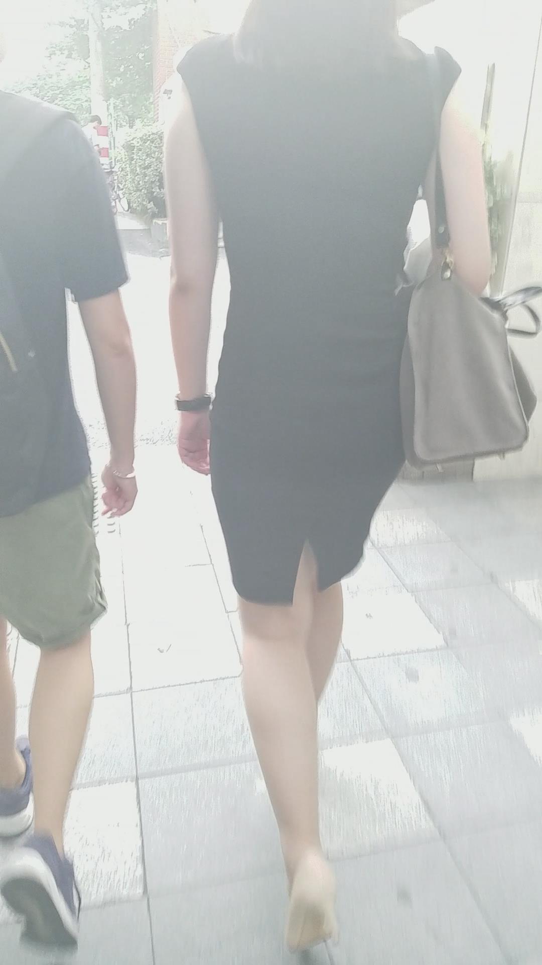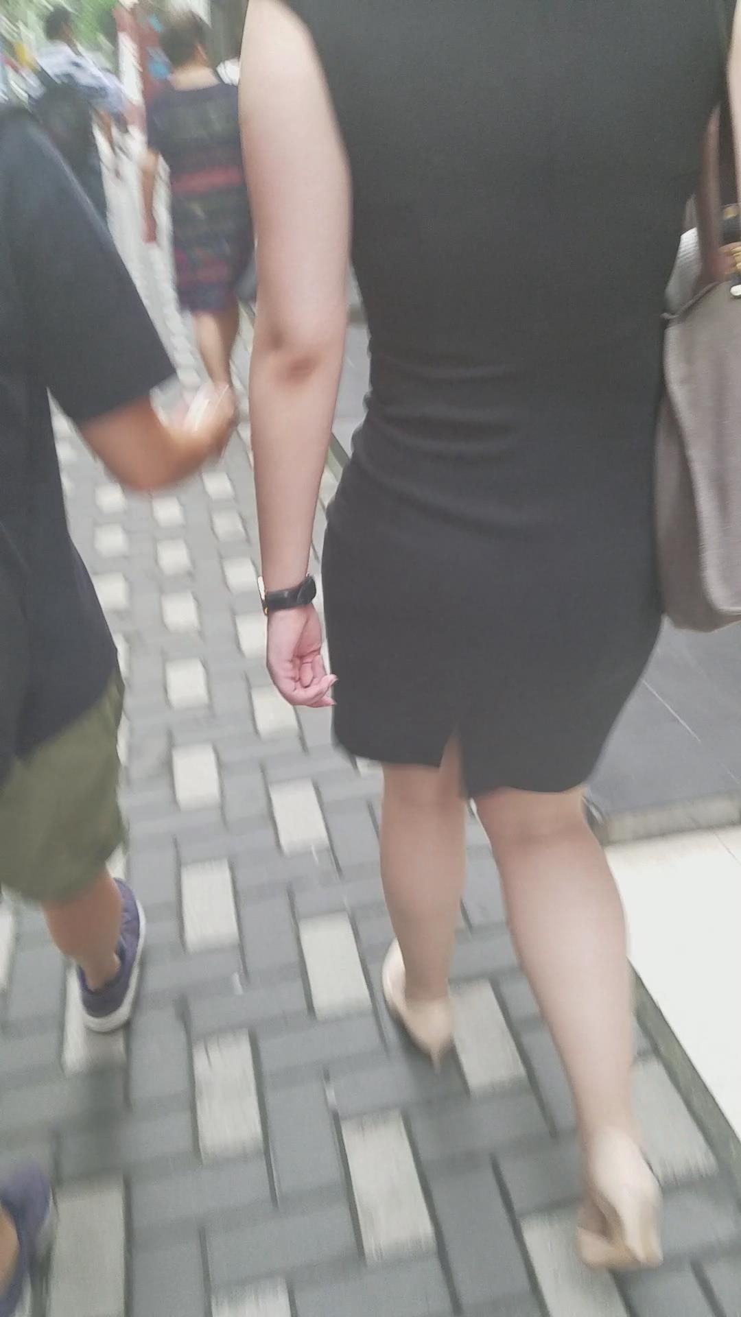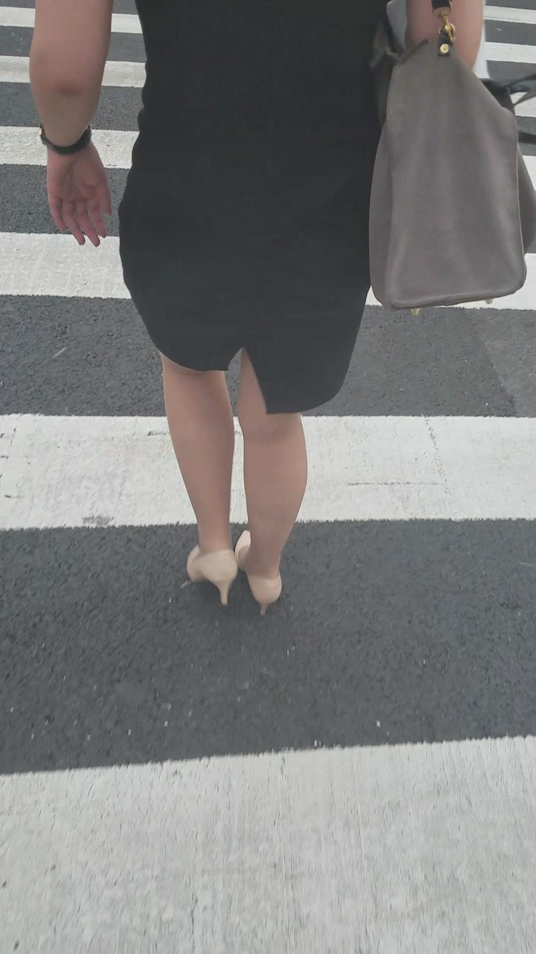 性感的黑色包臀裙米色高跟鞋美妇 编号2079