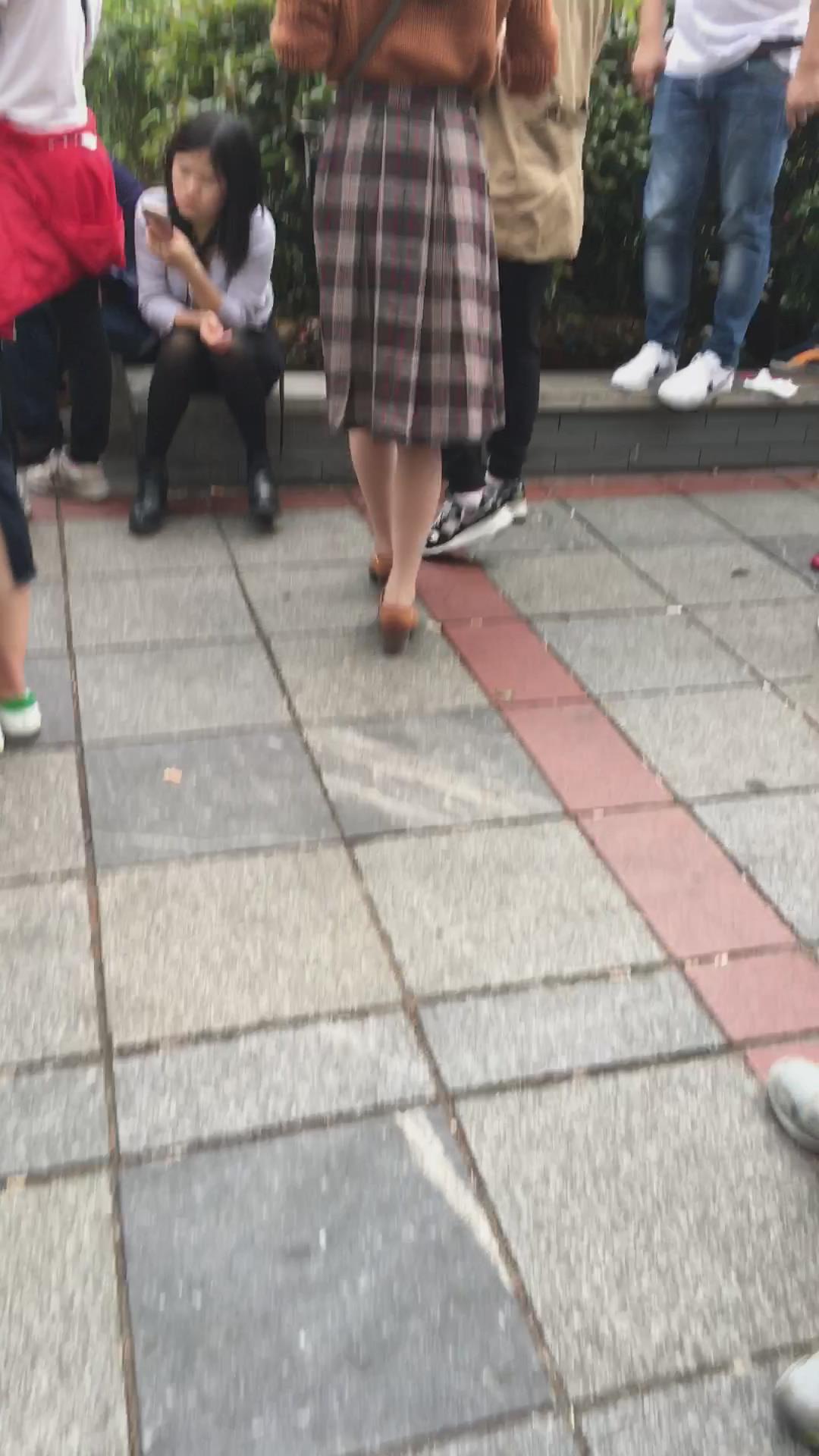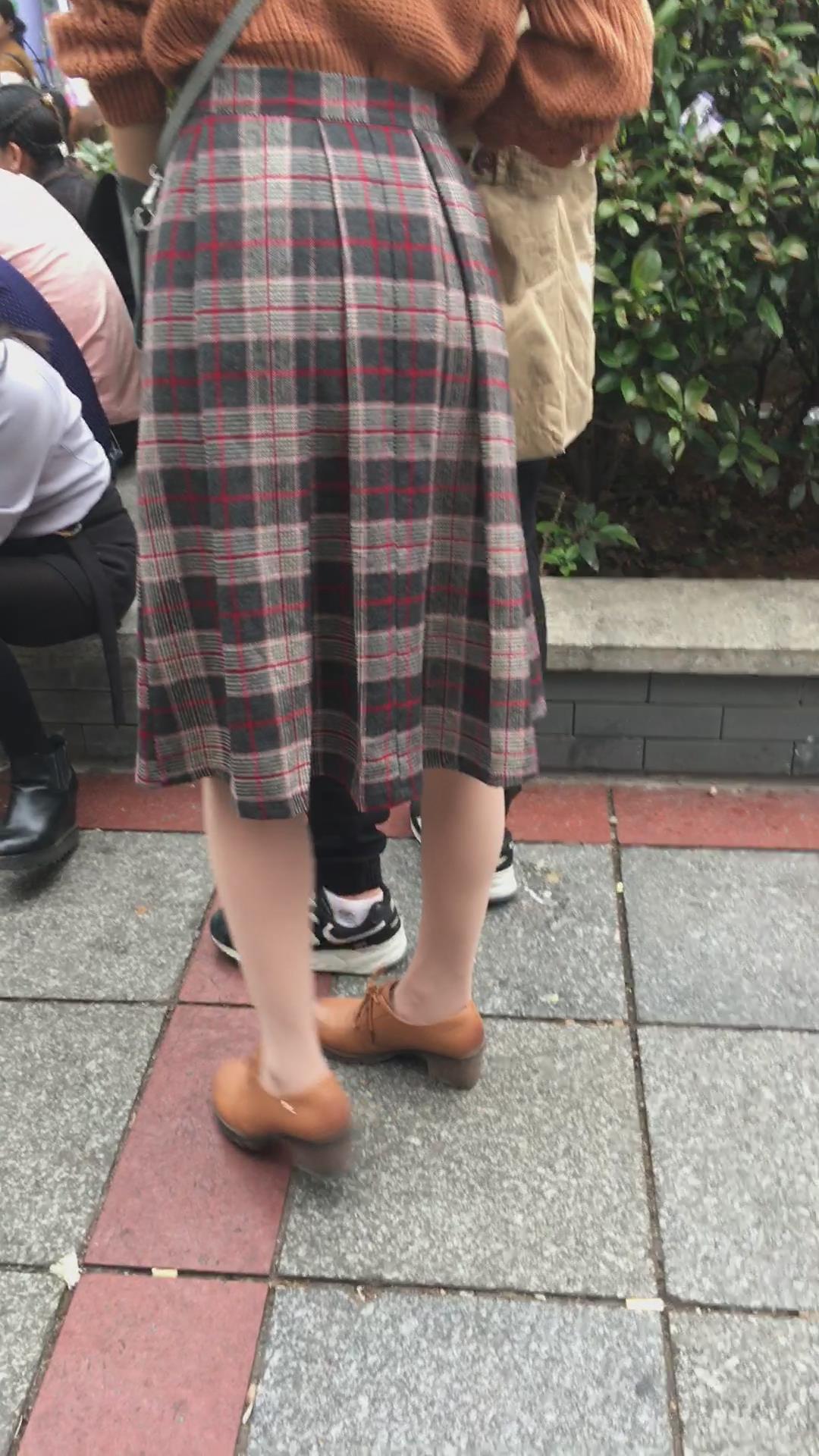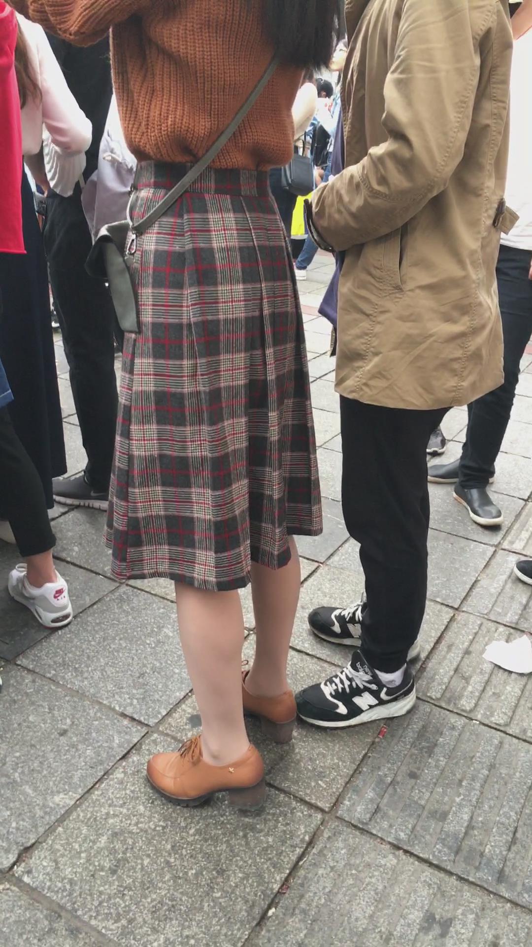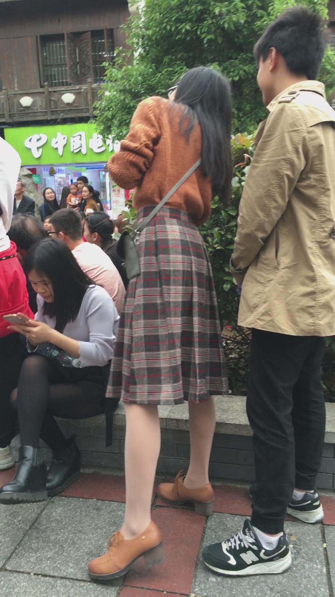 街拍丝袜格子裙美女小妹 编号2087