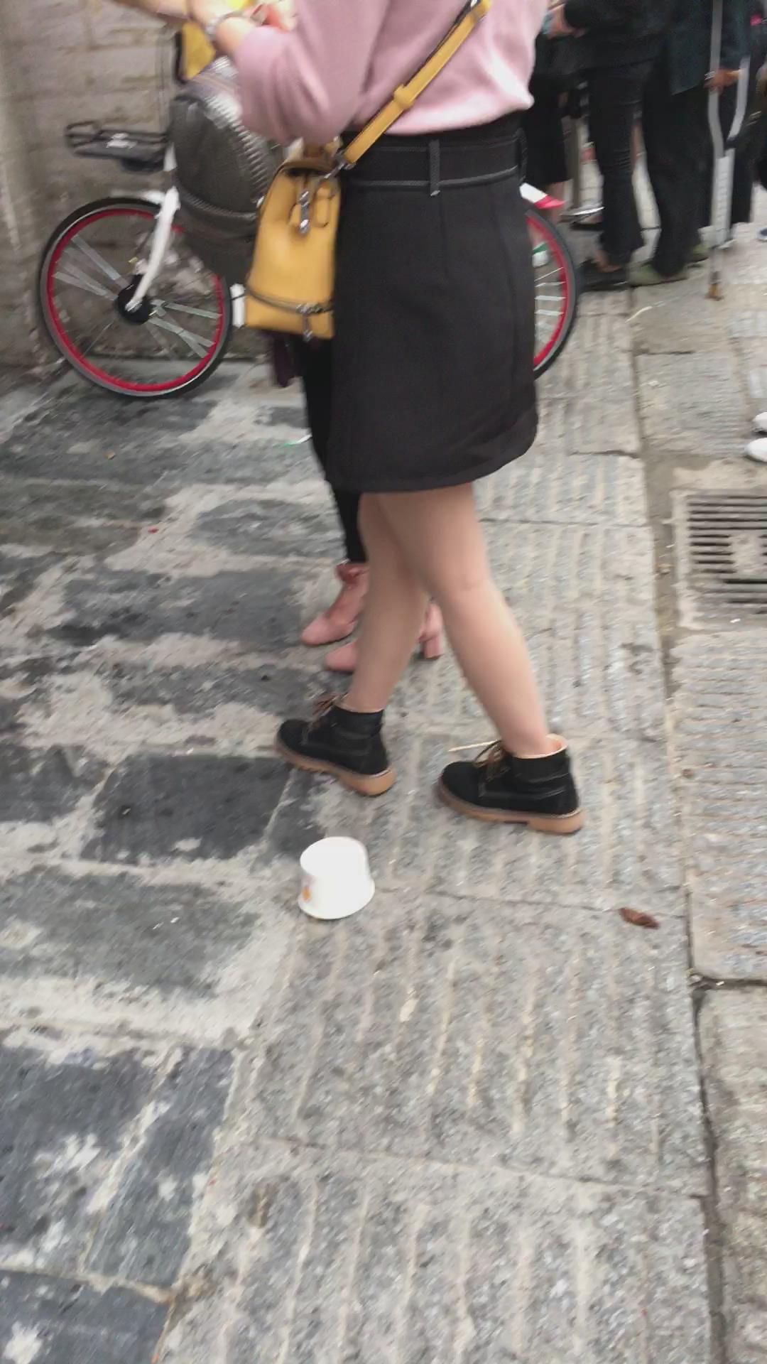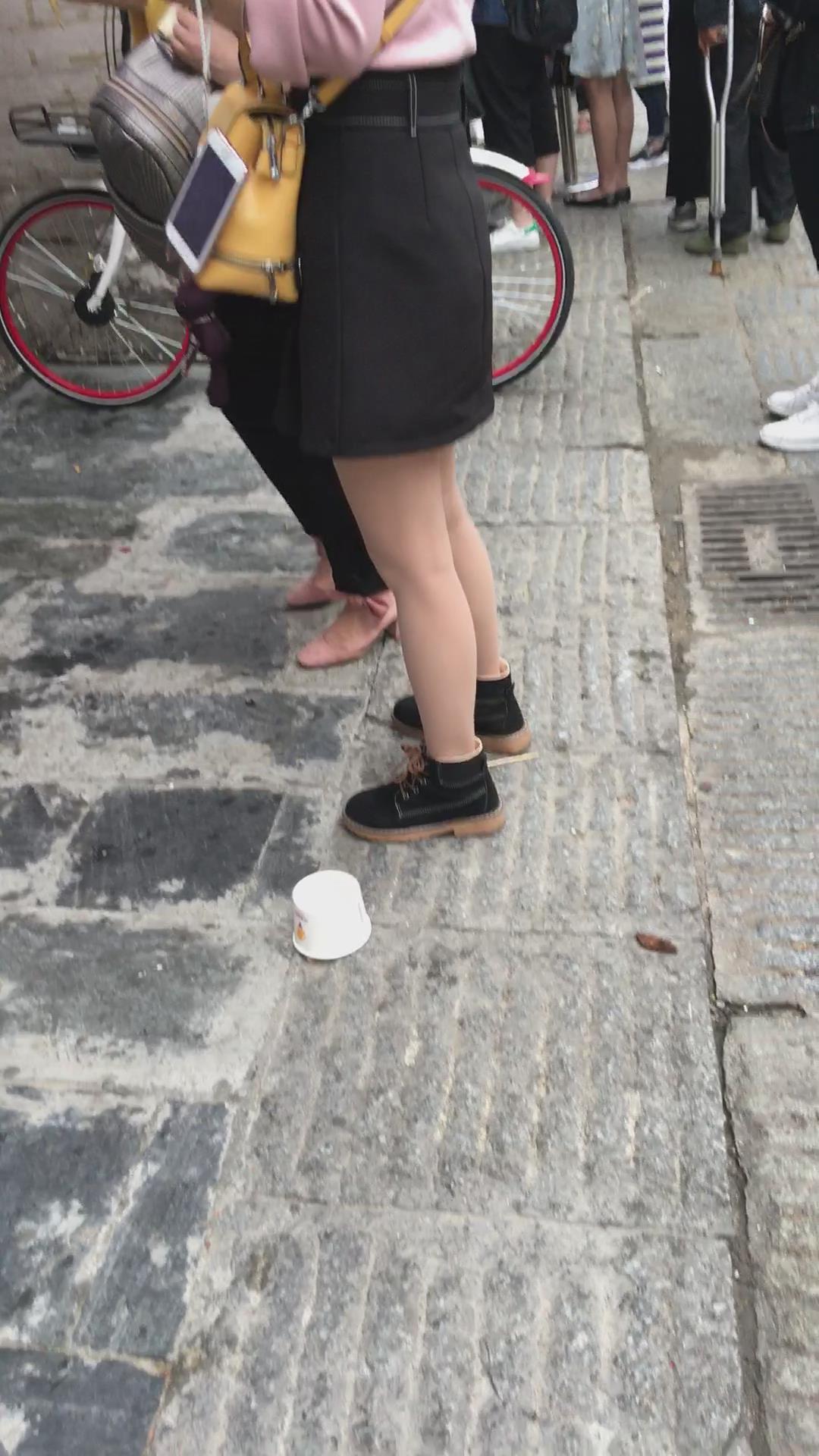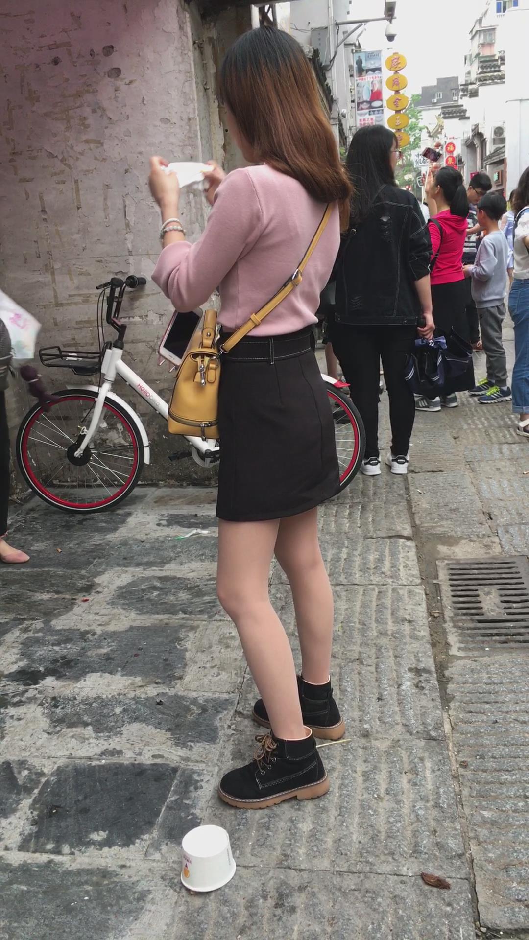 街拍粉衣短裙丝袜美女小妹 编号2088