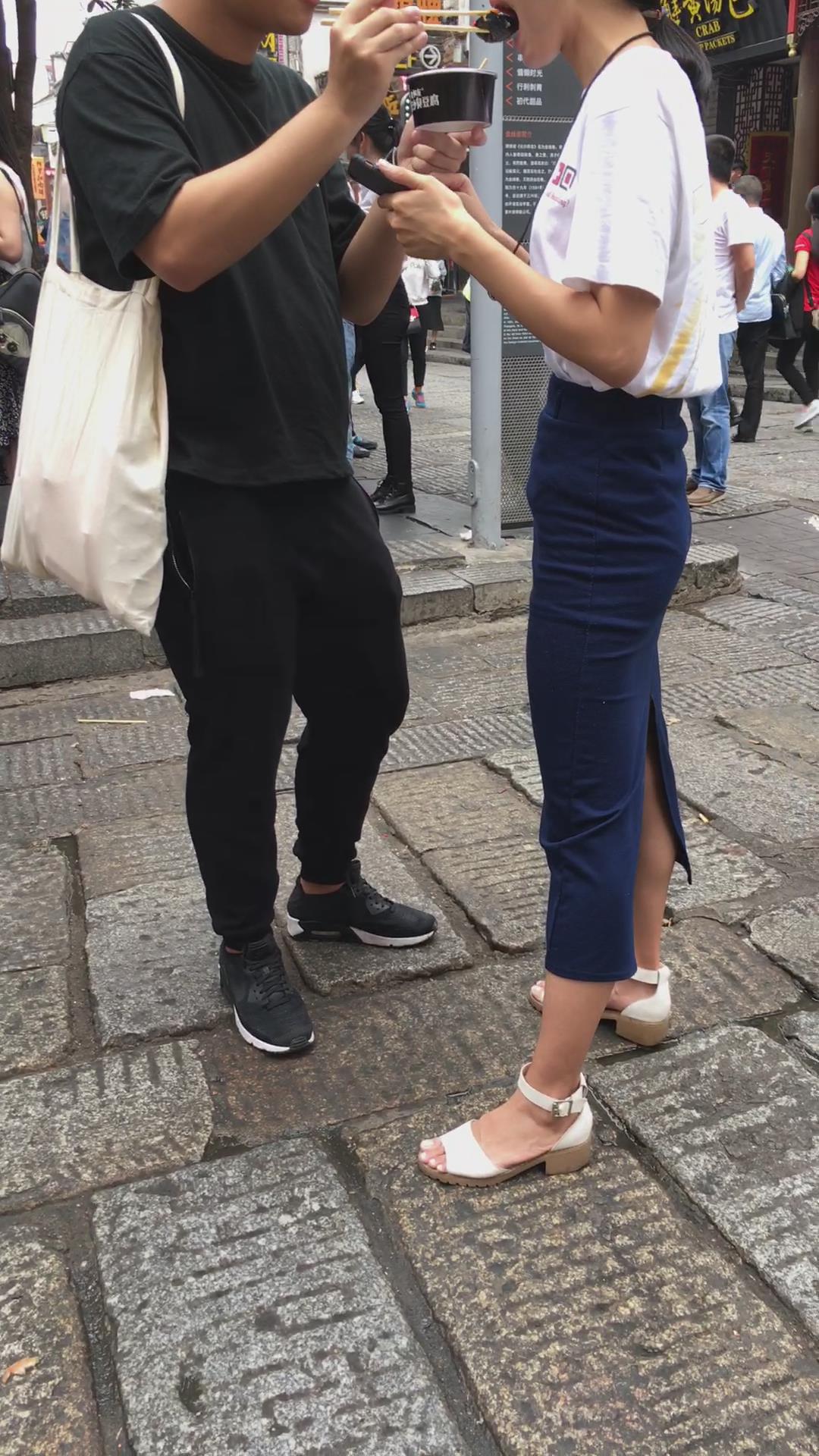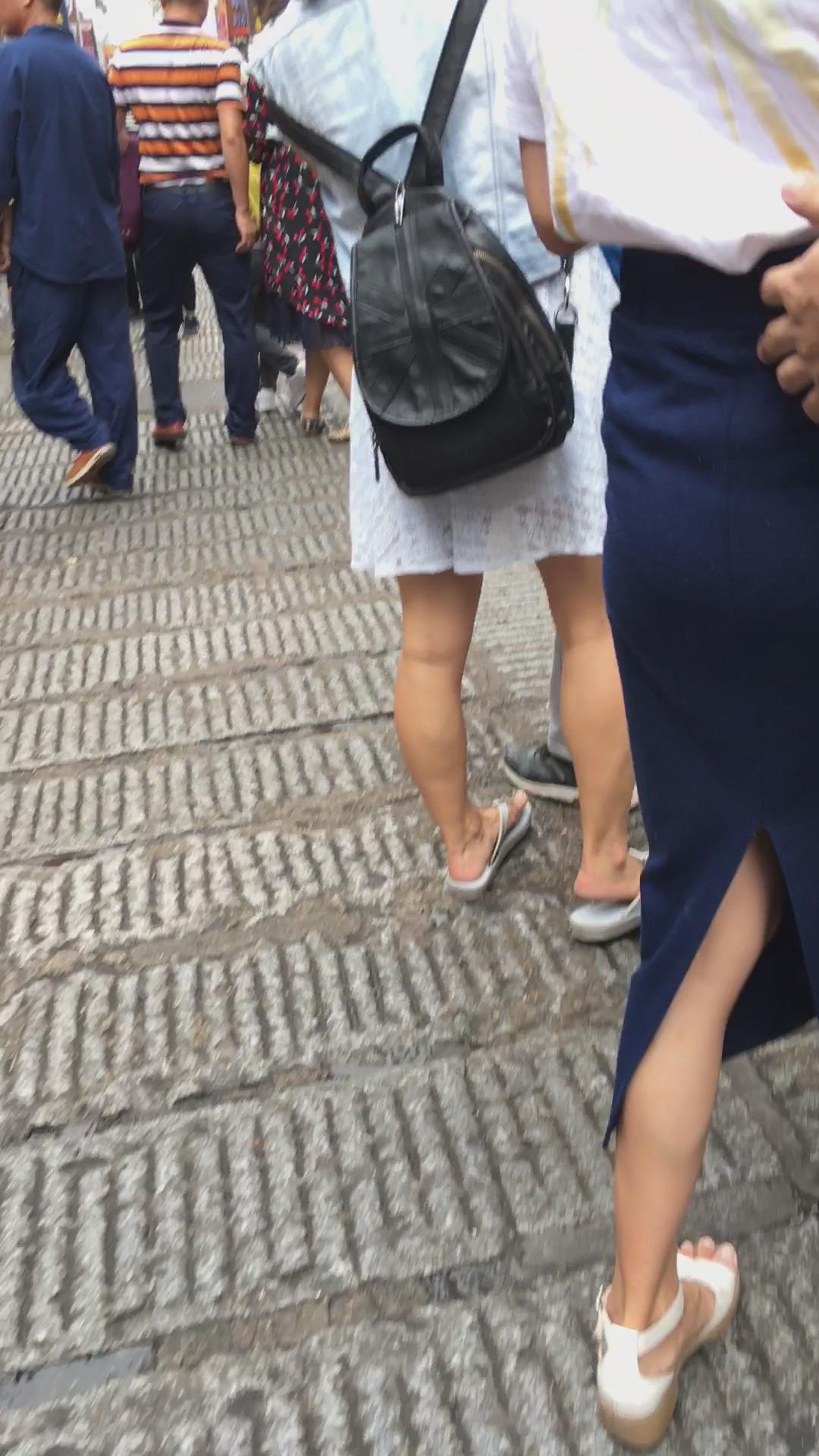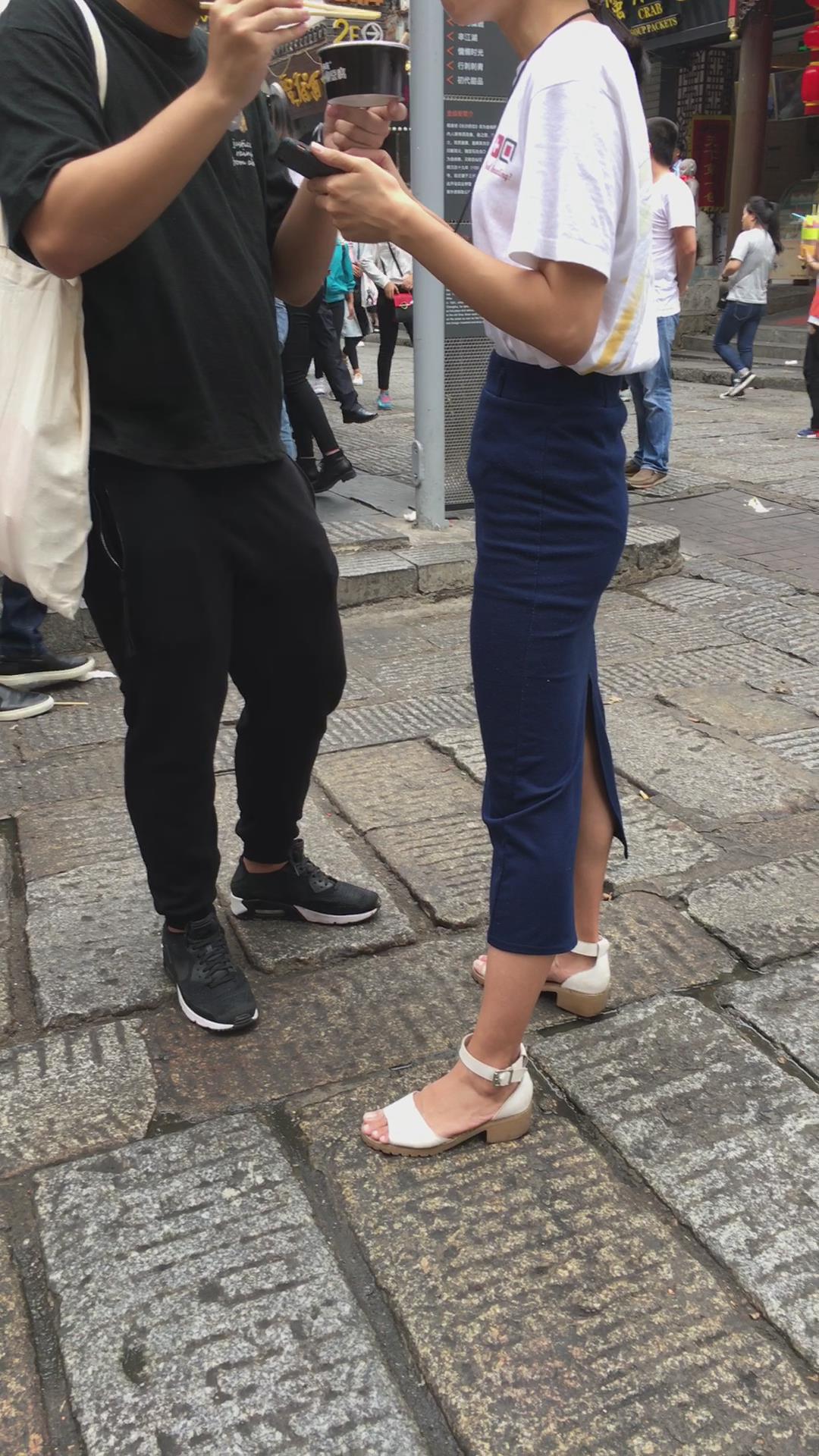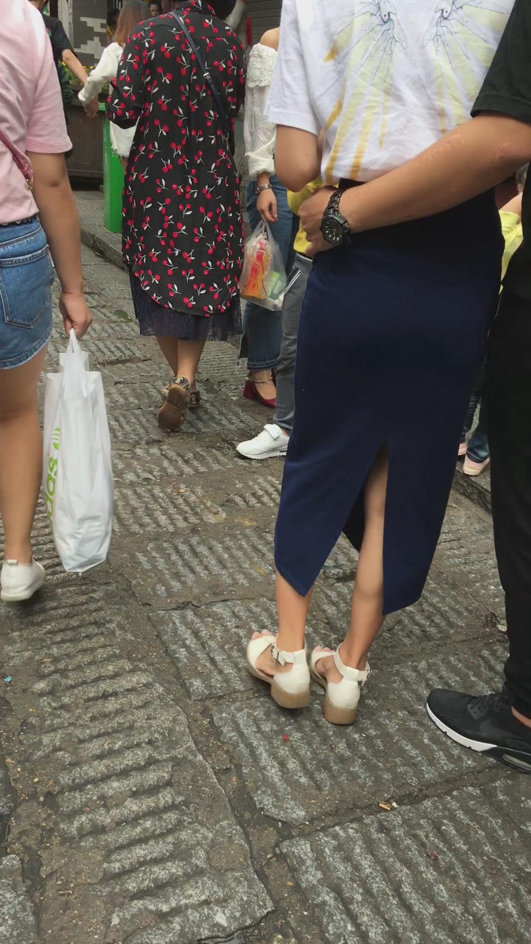 深蓝色开叉包臀裙街拍美女小姐姐 编号2108