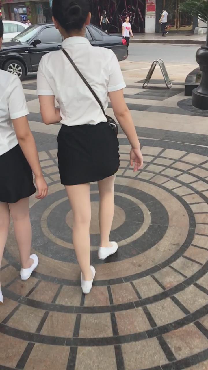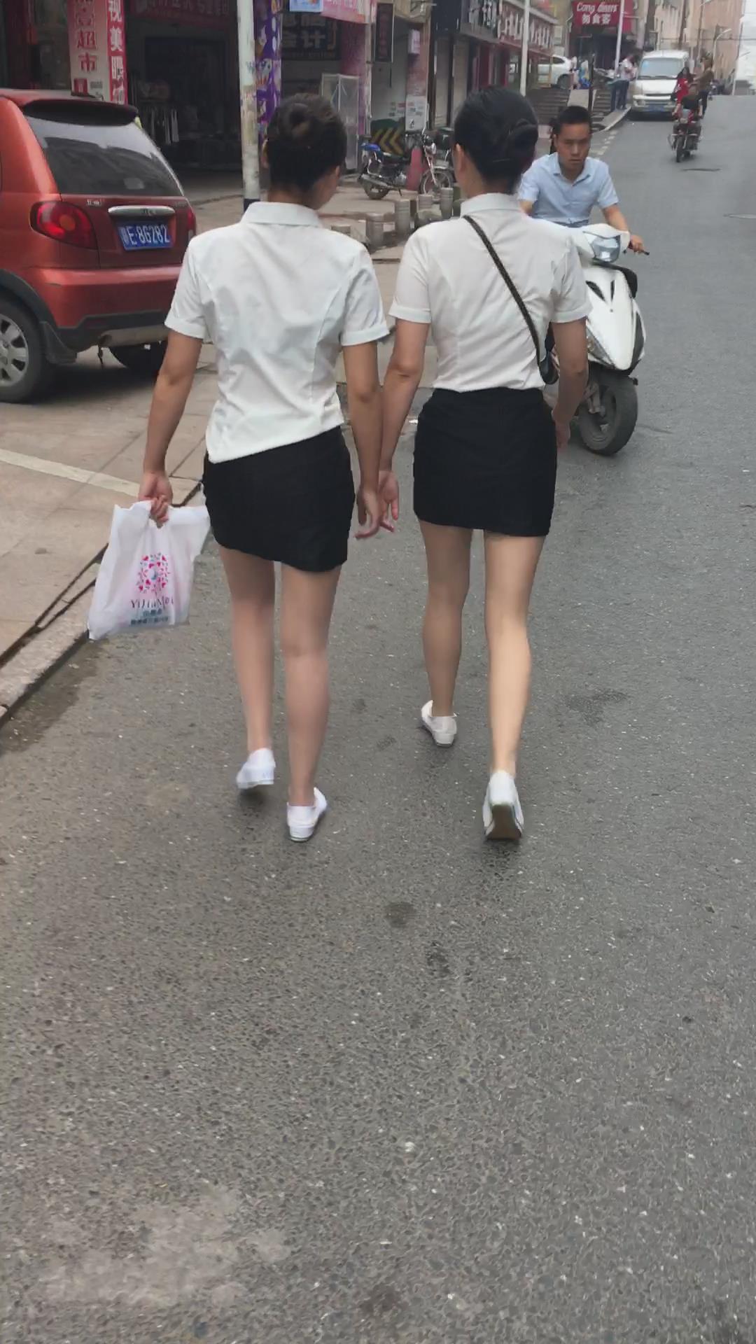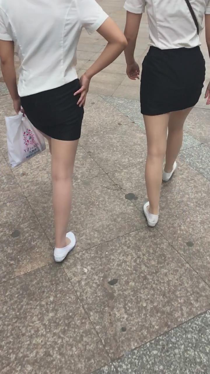 白T恤包臀裙肉丝袜街拍美腿美女姐妹 编号2109