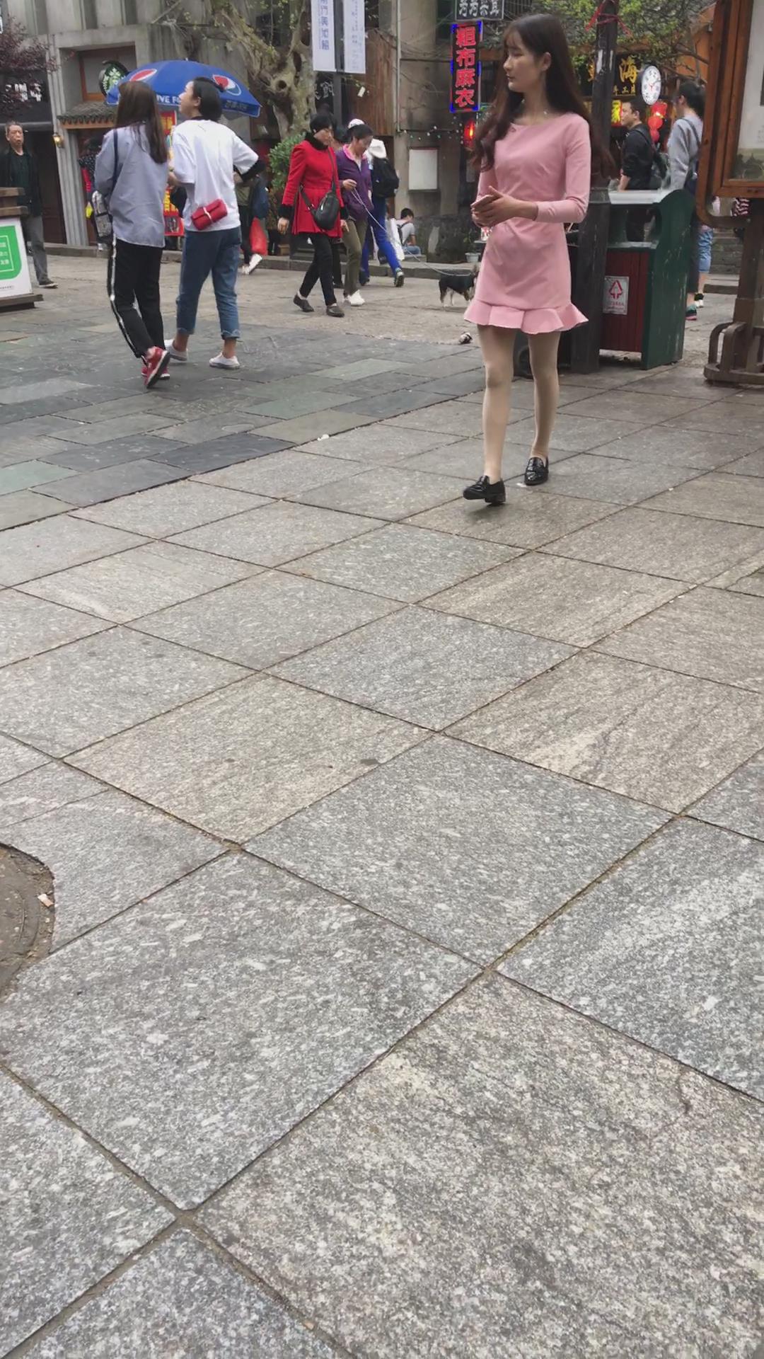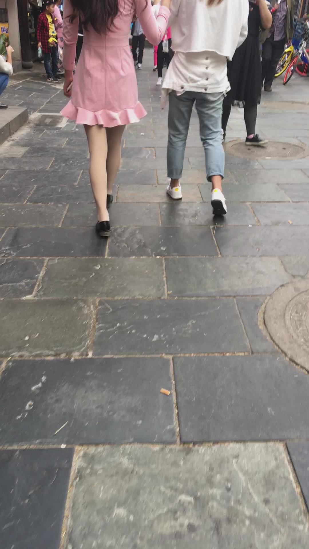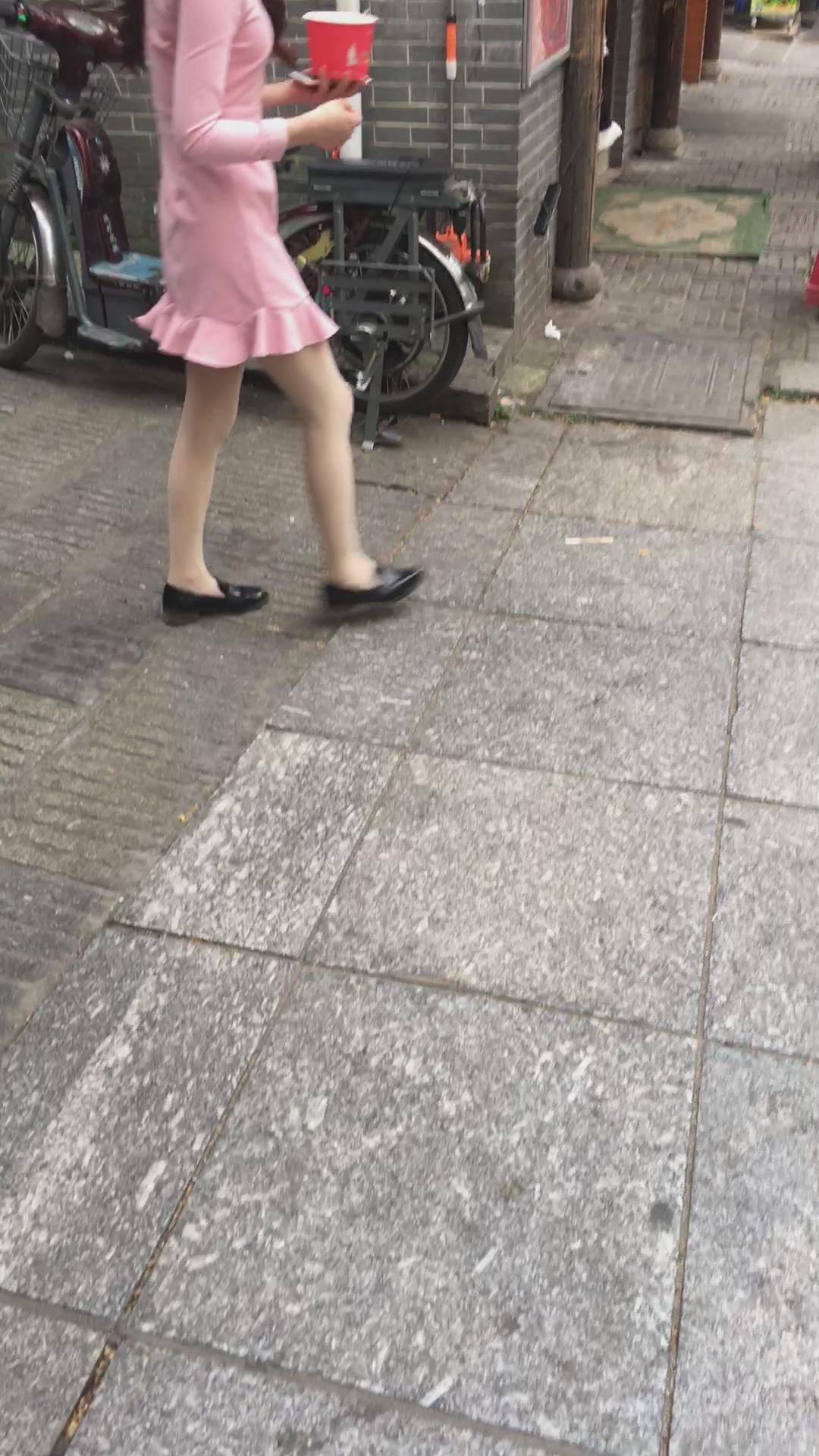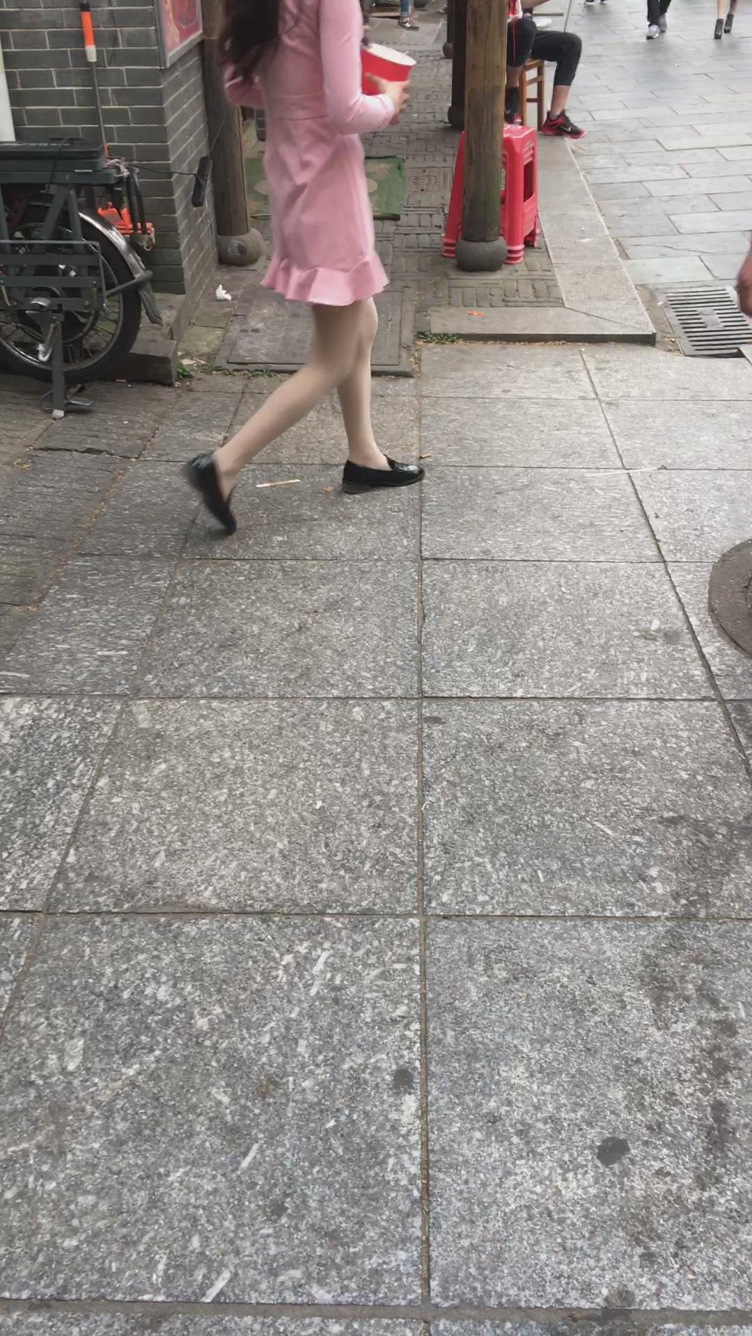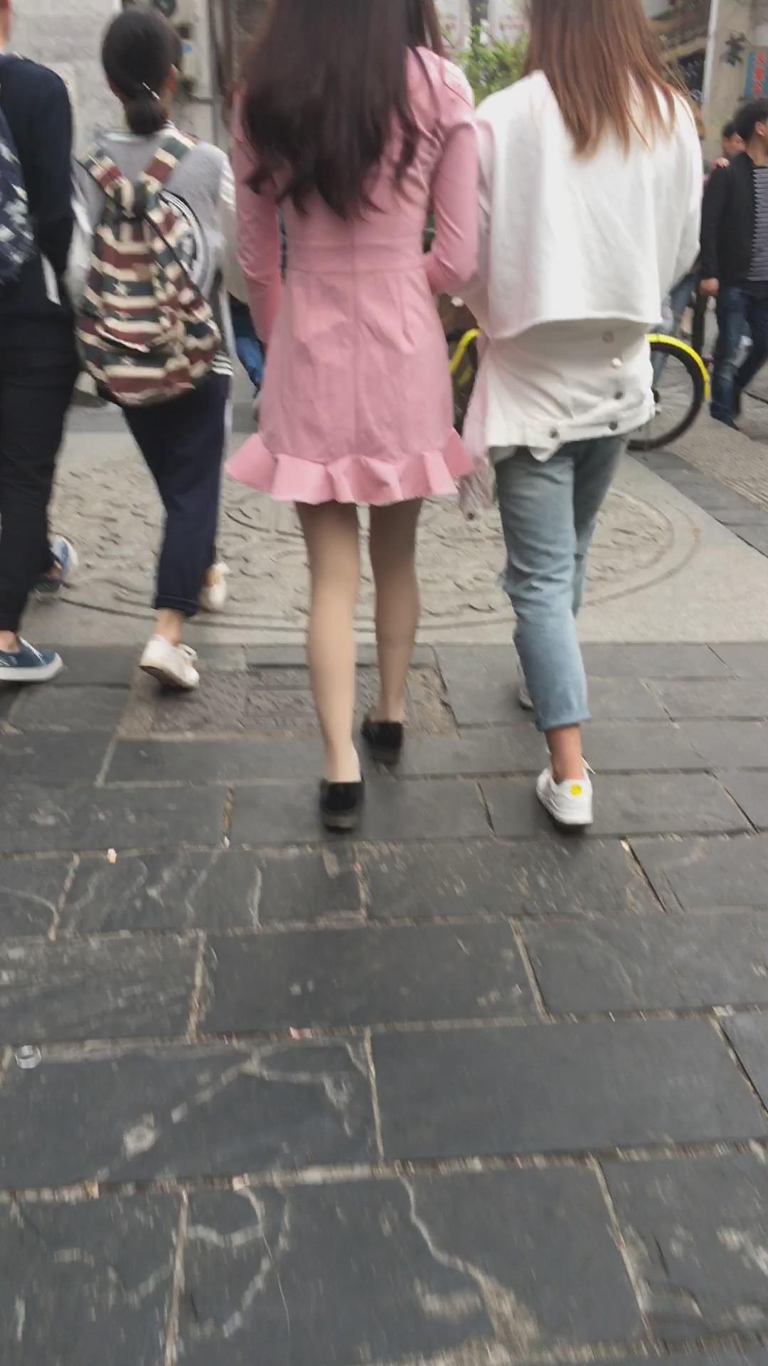 街拍粉色裙肉丝袜气质美女 编号2115