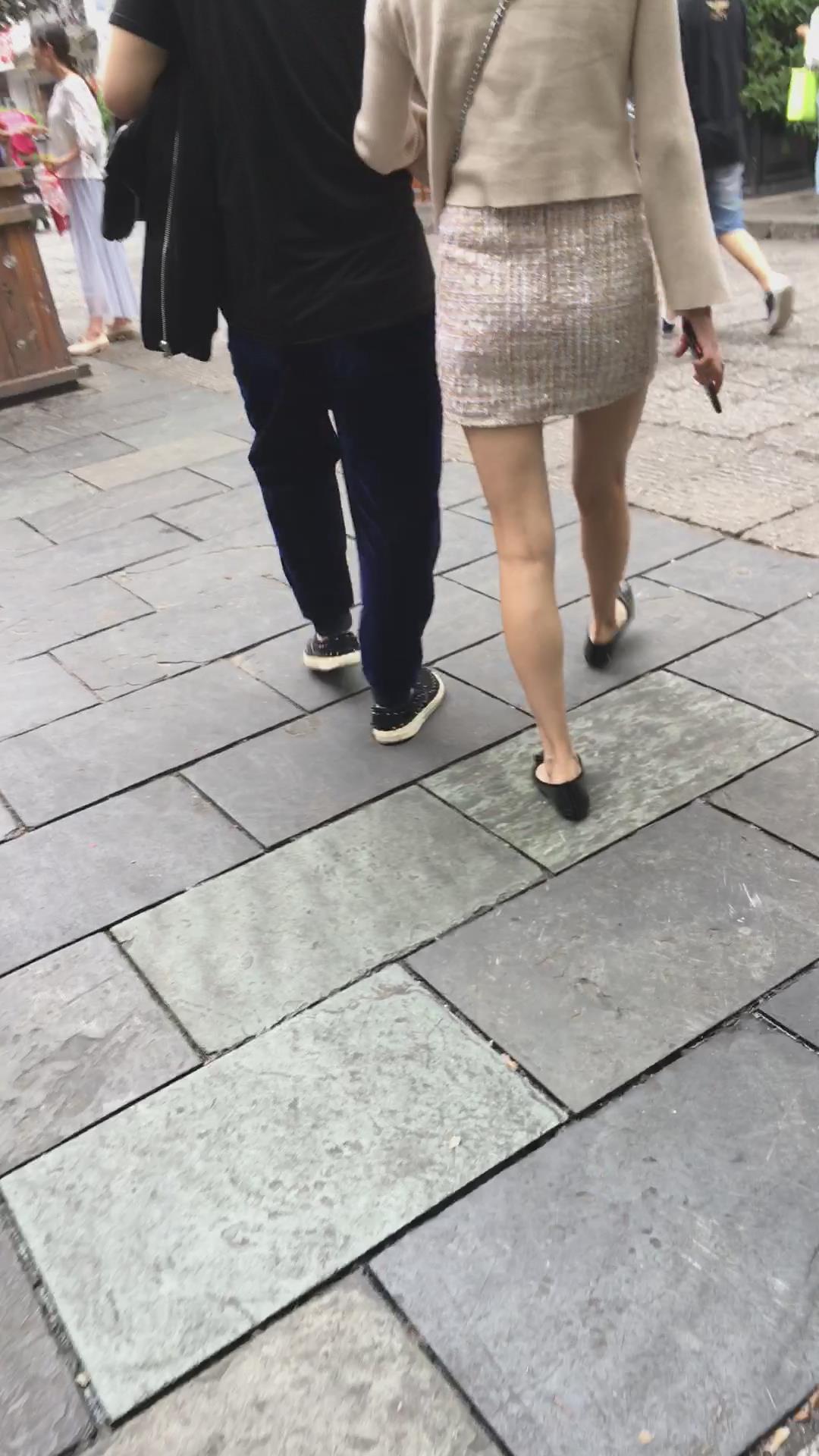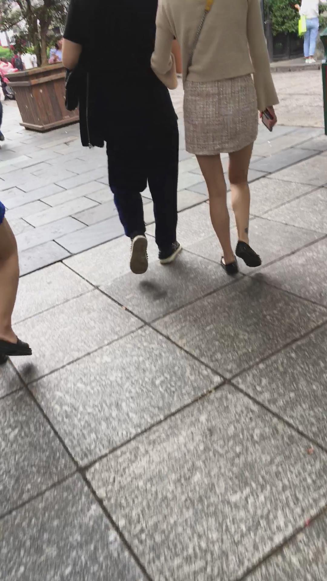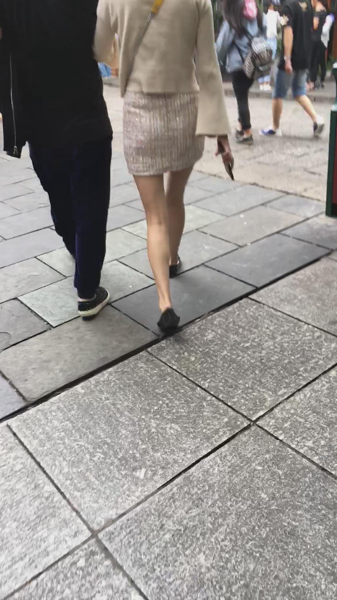 非常漂亮的米色包臀裙街拍肉丝美腿 编号2121