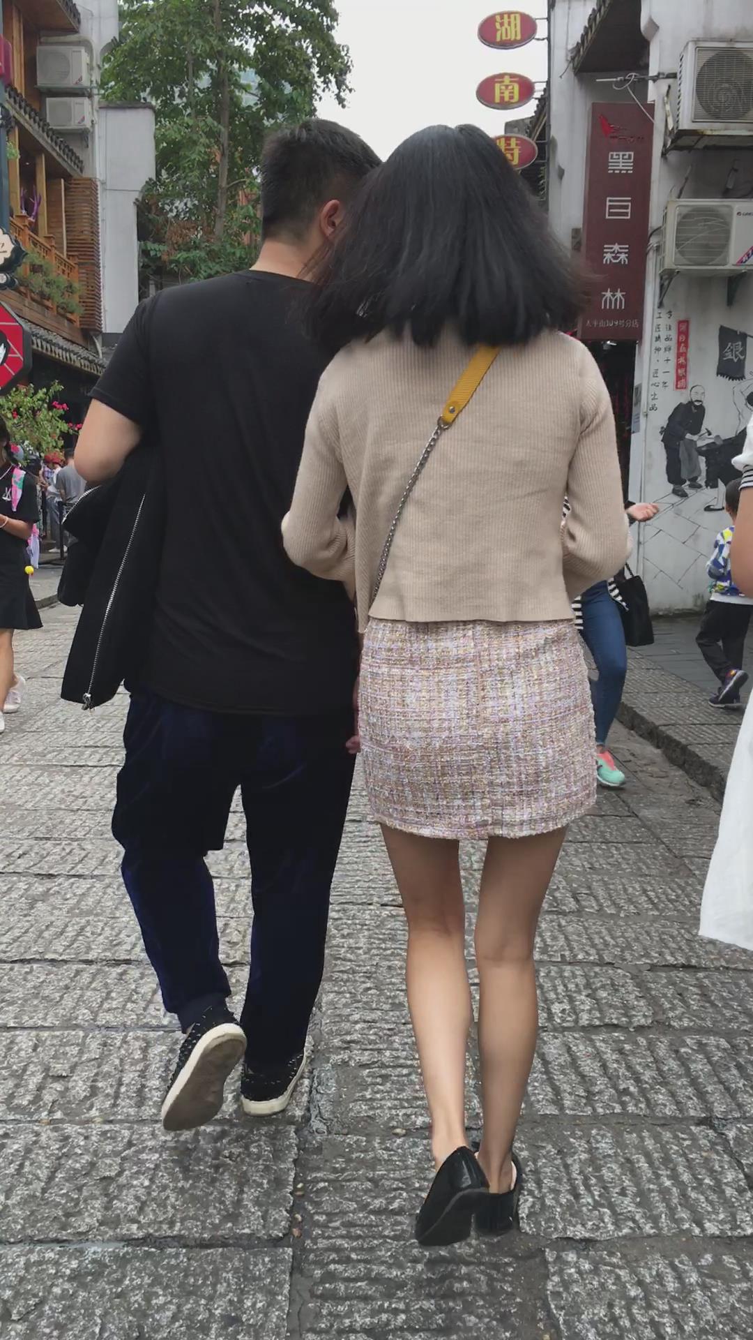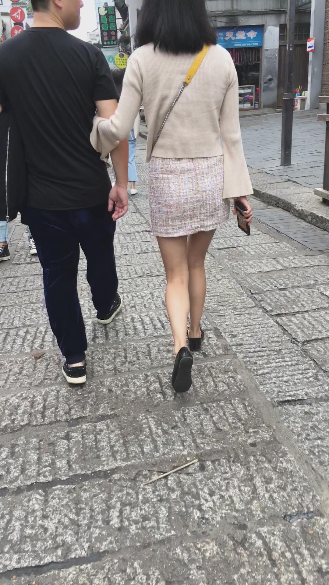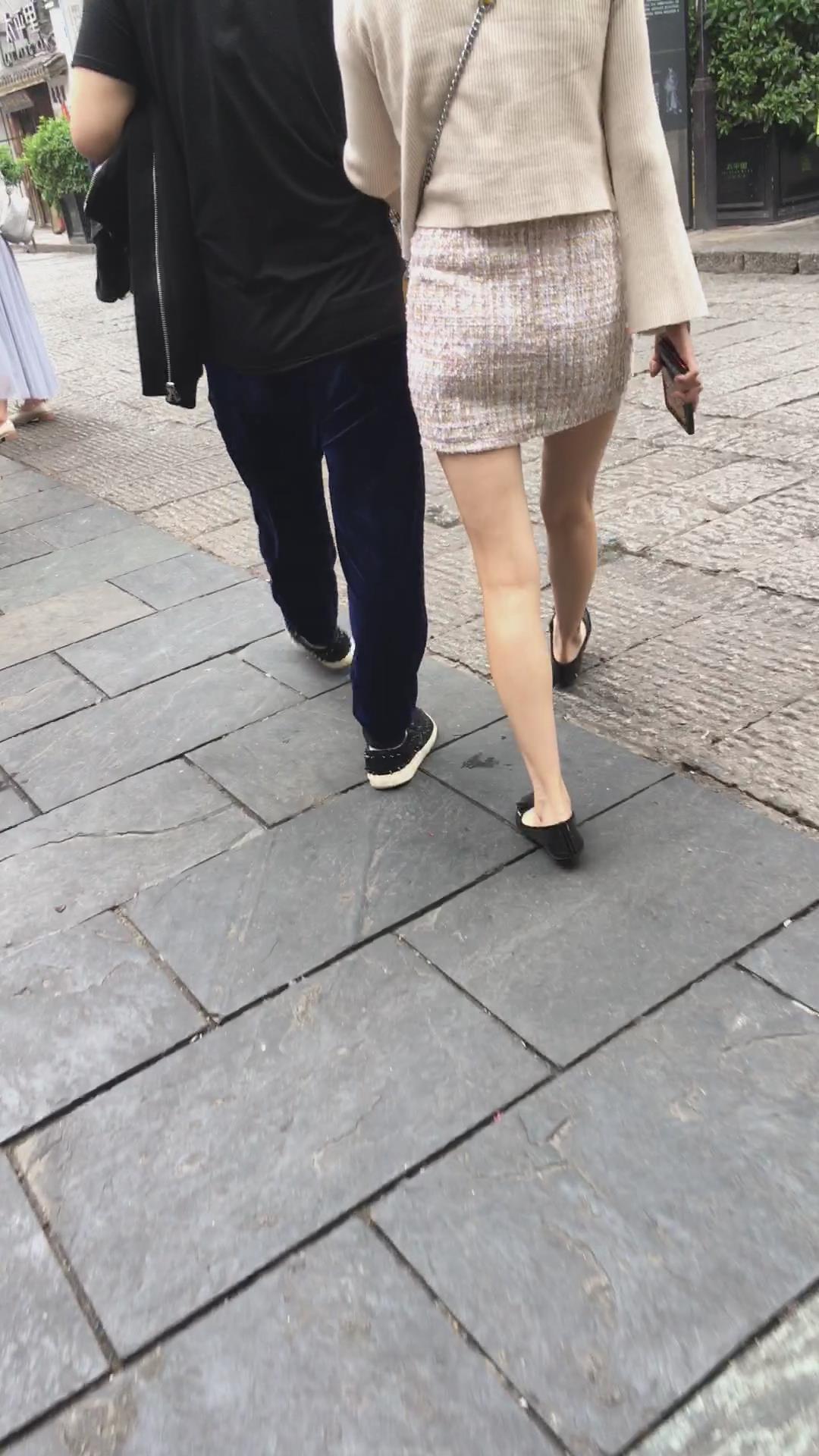 非常漂亮的米色包臀裙街拍肉丝美腿 编号2121