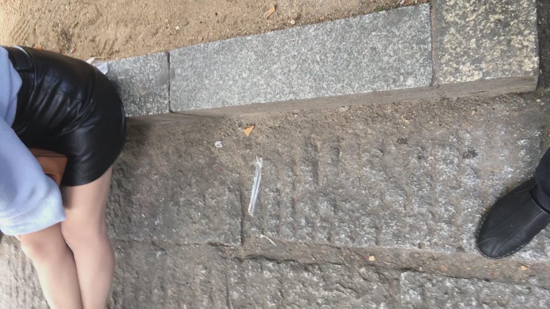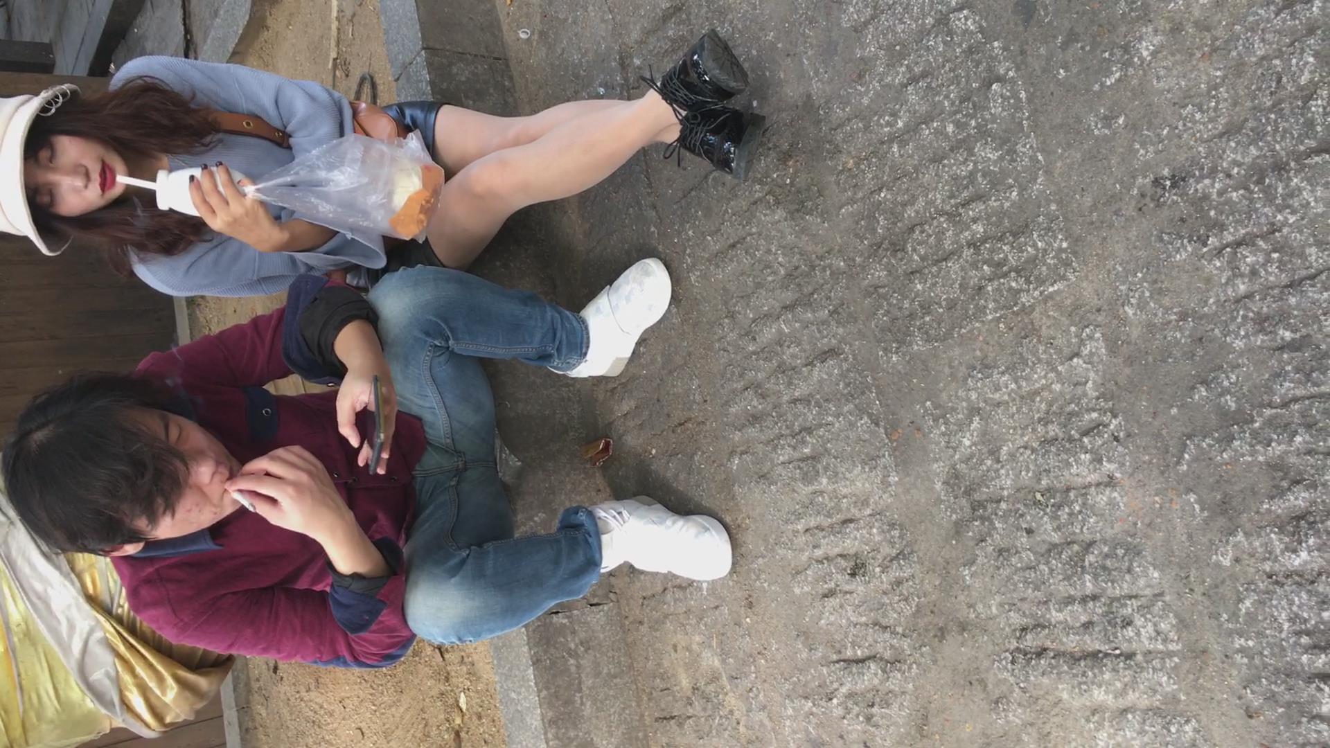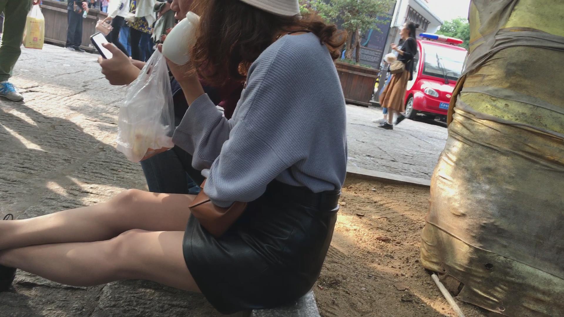 花坛边休息的皮裙街拍肉丝太阳帽美眉 编号2130