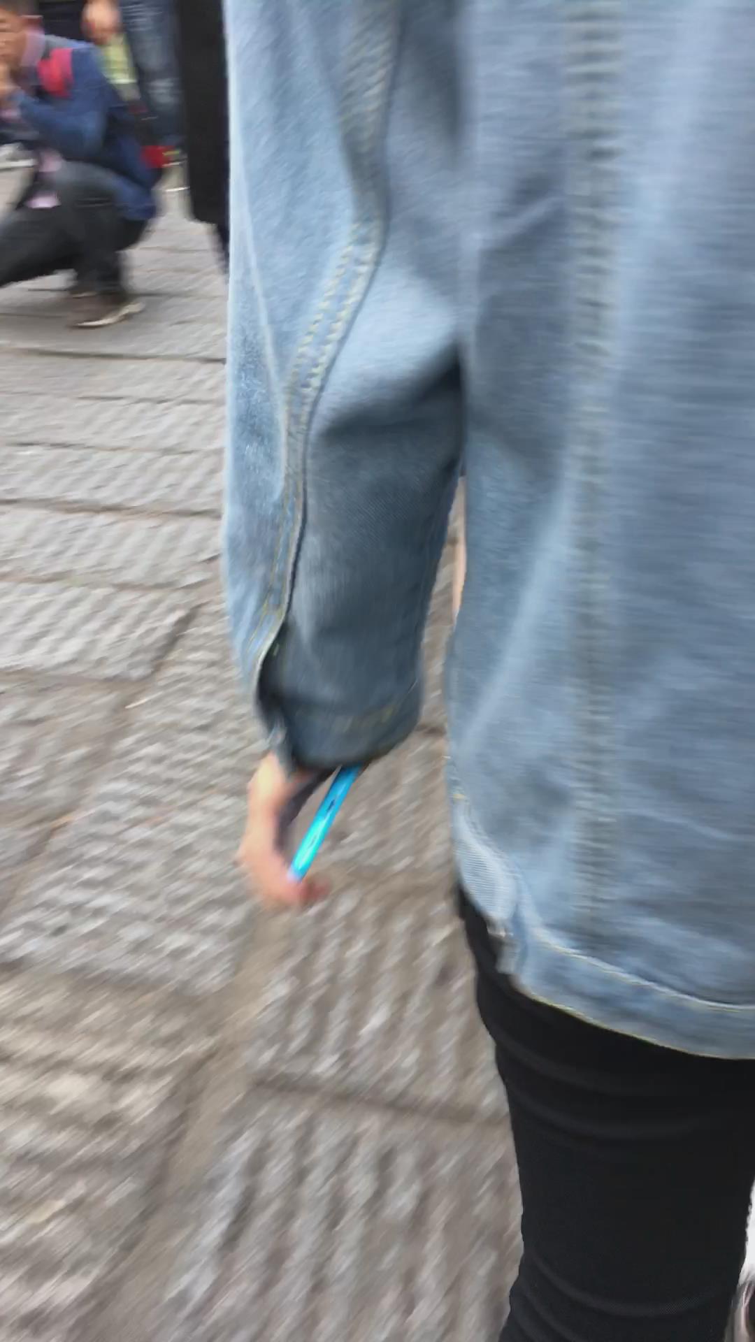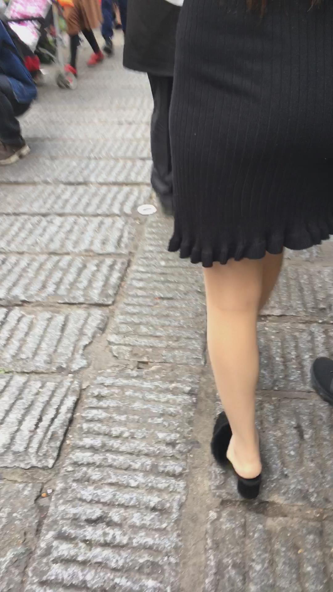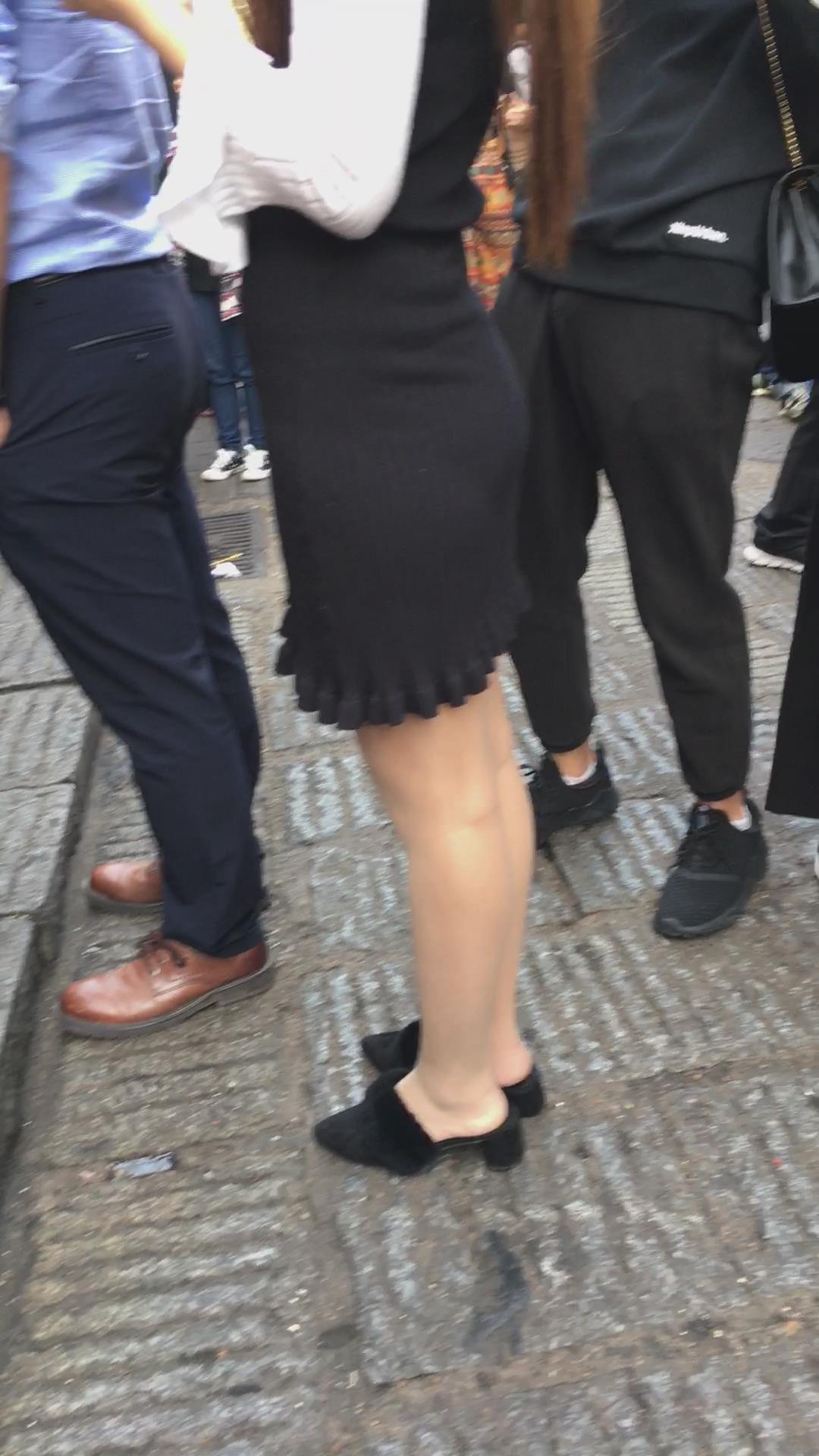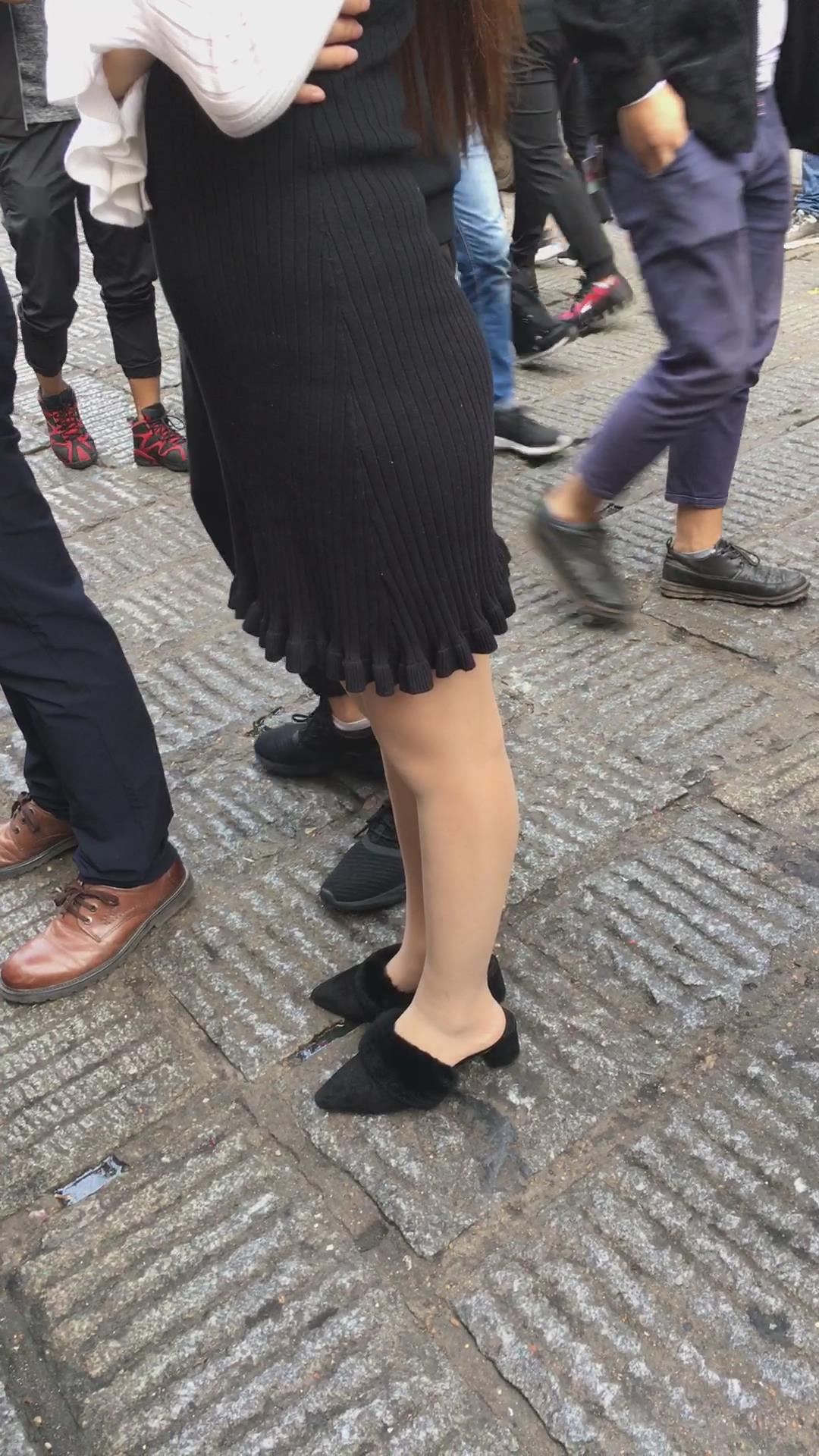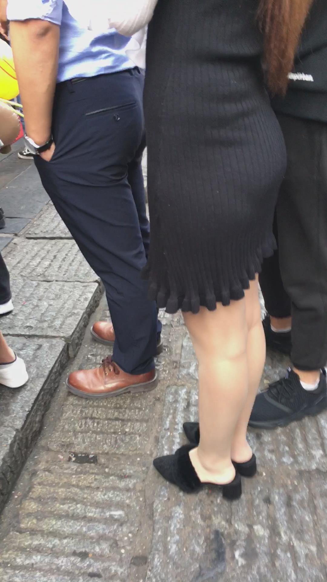 黑色性感包臀裙美眉排队买小吃 编号2134