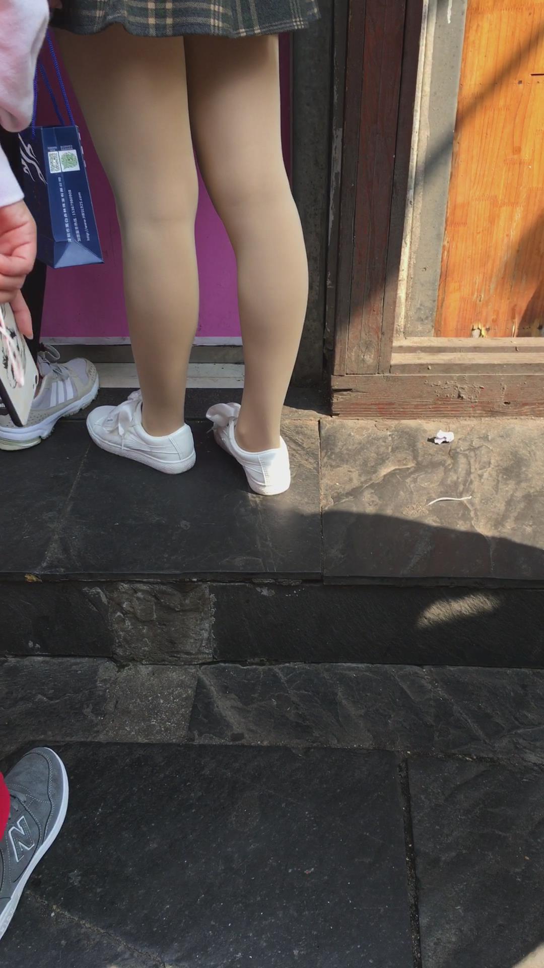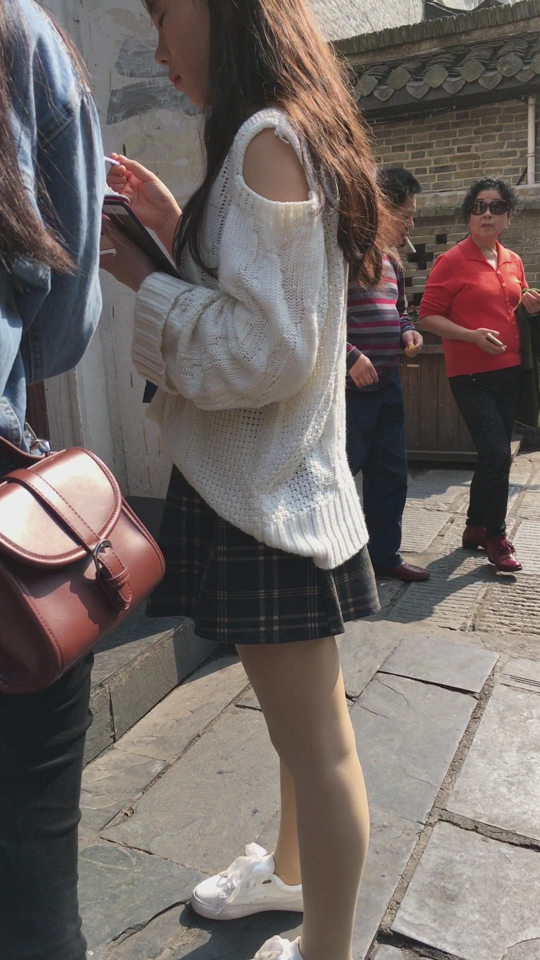 白毛衣超短裙街拍肉丝小姐姐 编号2145