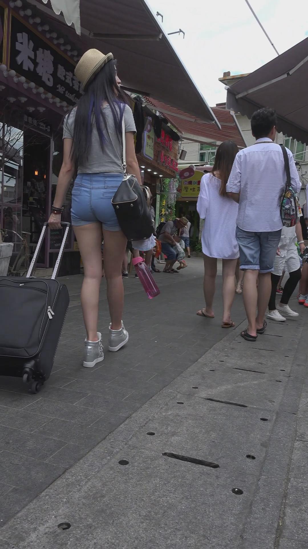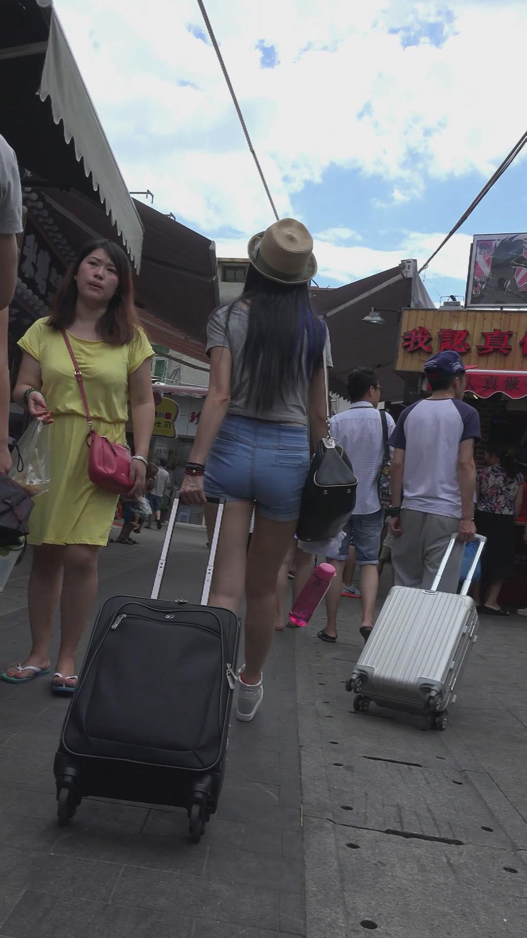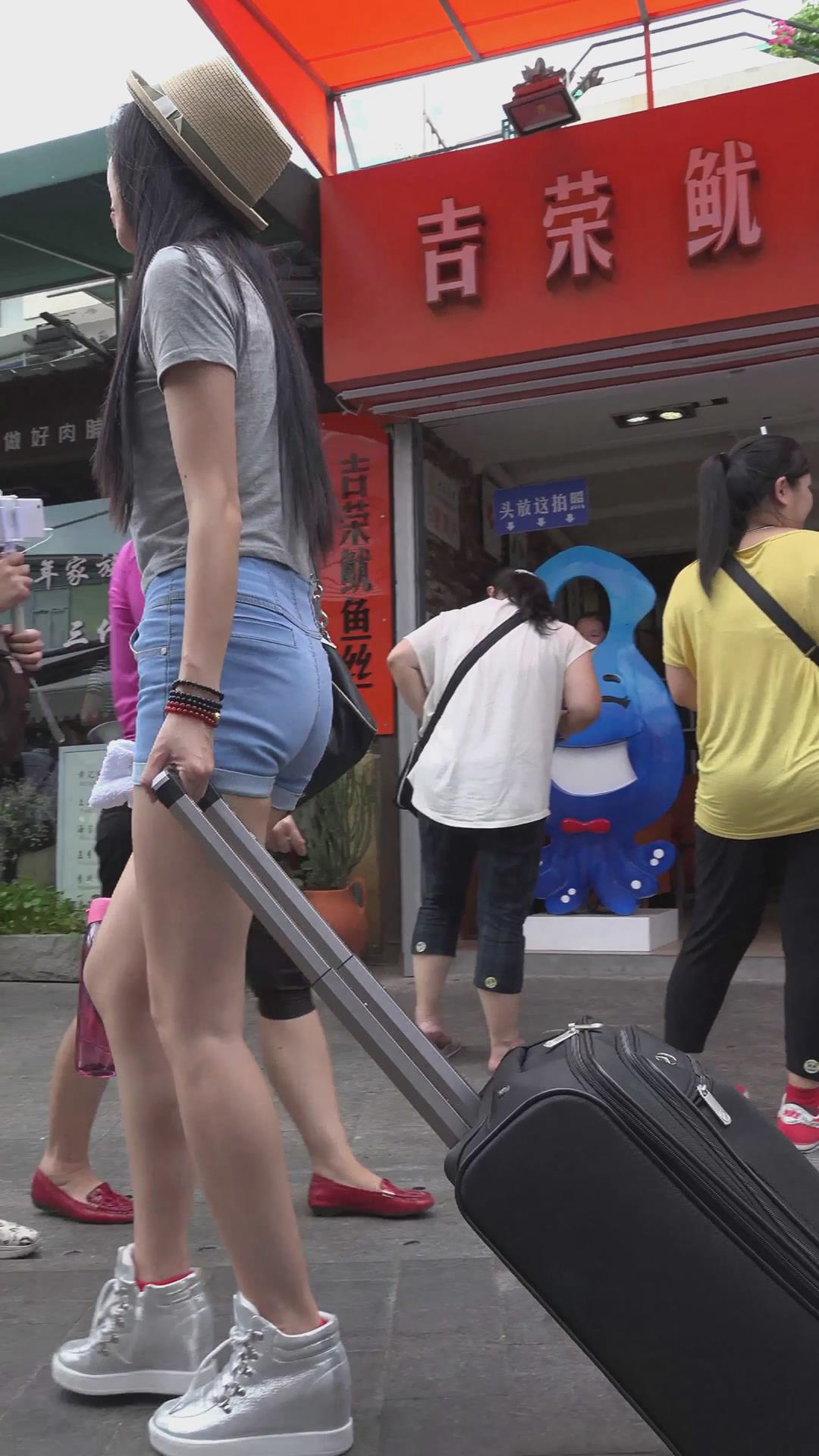 拉着行李箱的美臀热裤美眉 编号4633