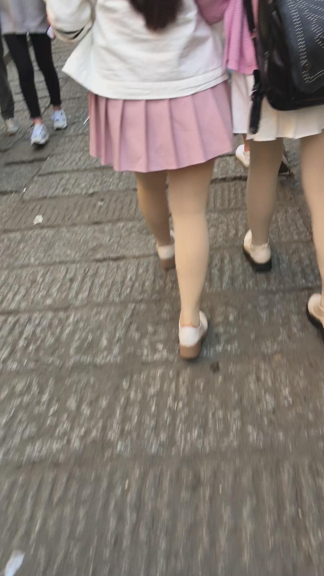 粉色百褶裙肉丝街拍美眉视频 编号2152