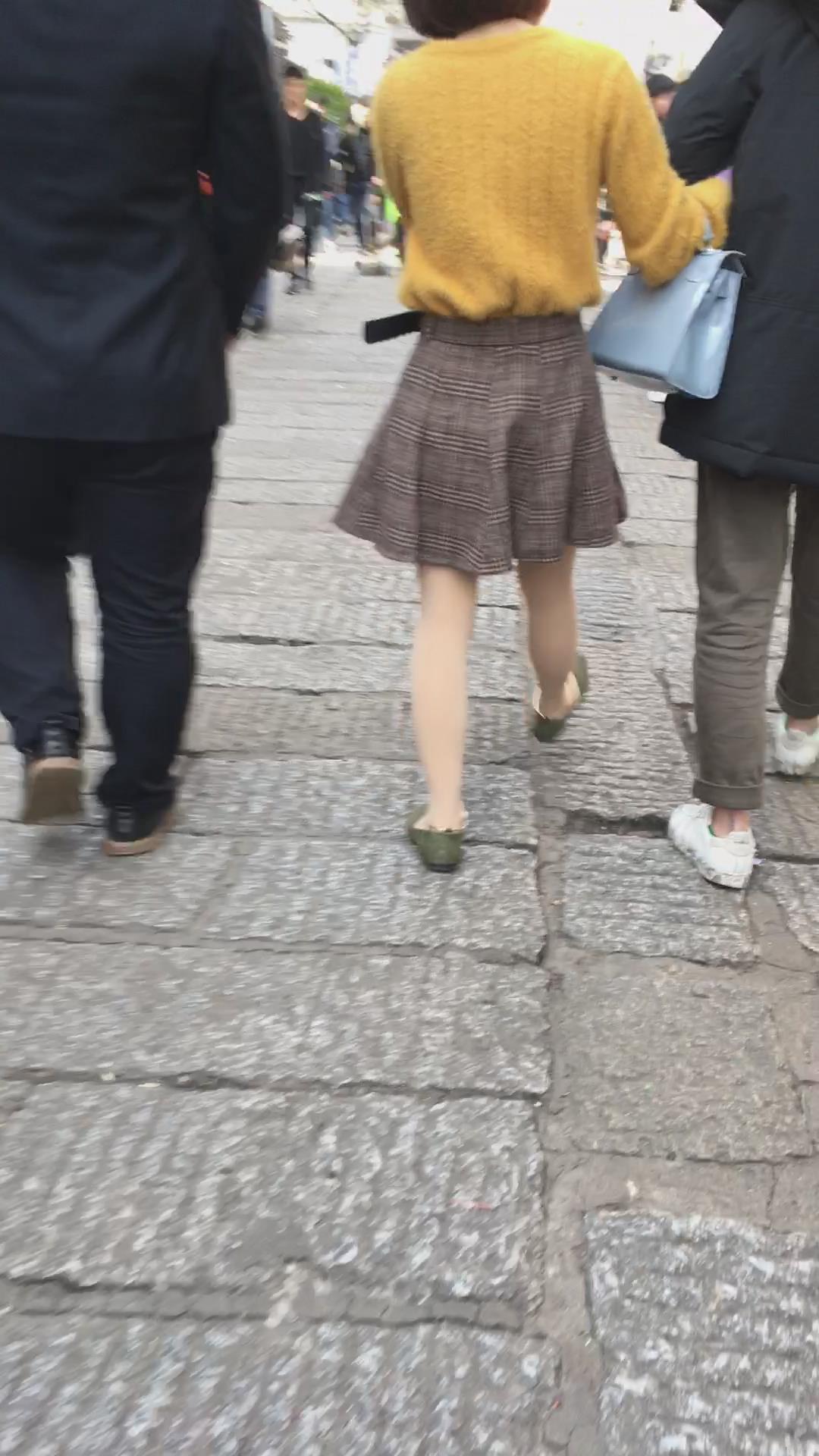 黄色毛衣短裙街拍肉丝视频 编号2153