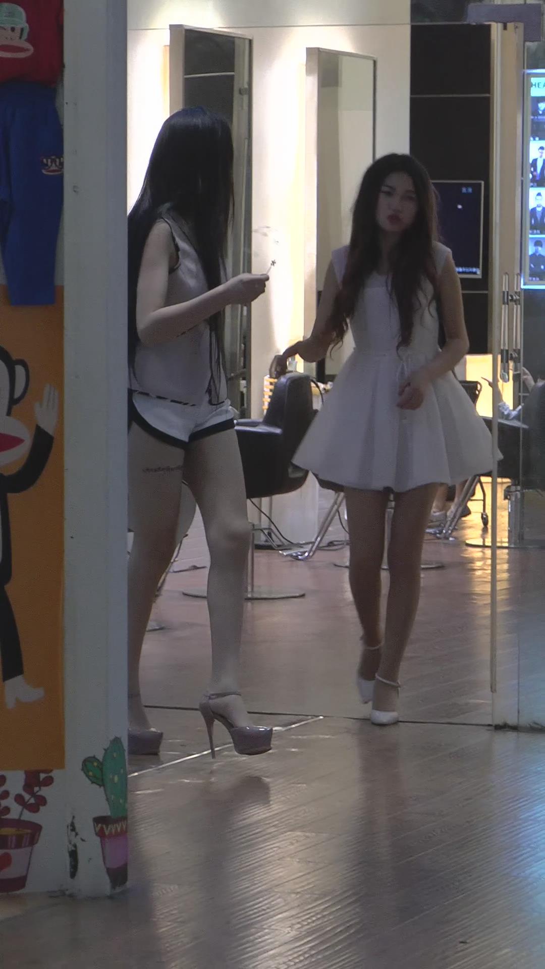 超性感连衣裙长腿高跟鞋街拍美女姐妹购物 编号2161