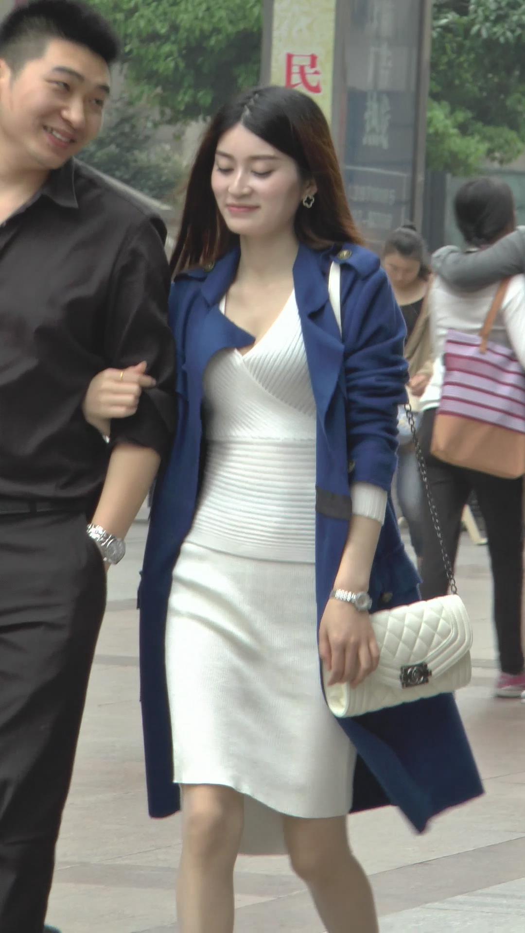 街拍白色连衣裙文静甜美小姐姐 编号2171