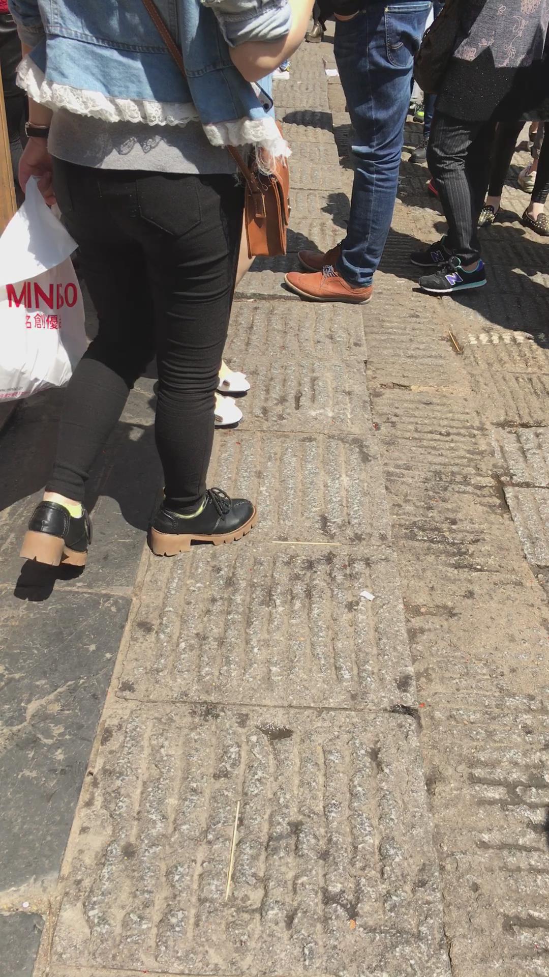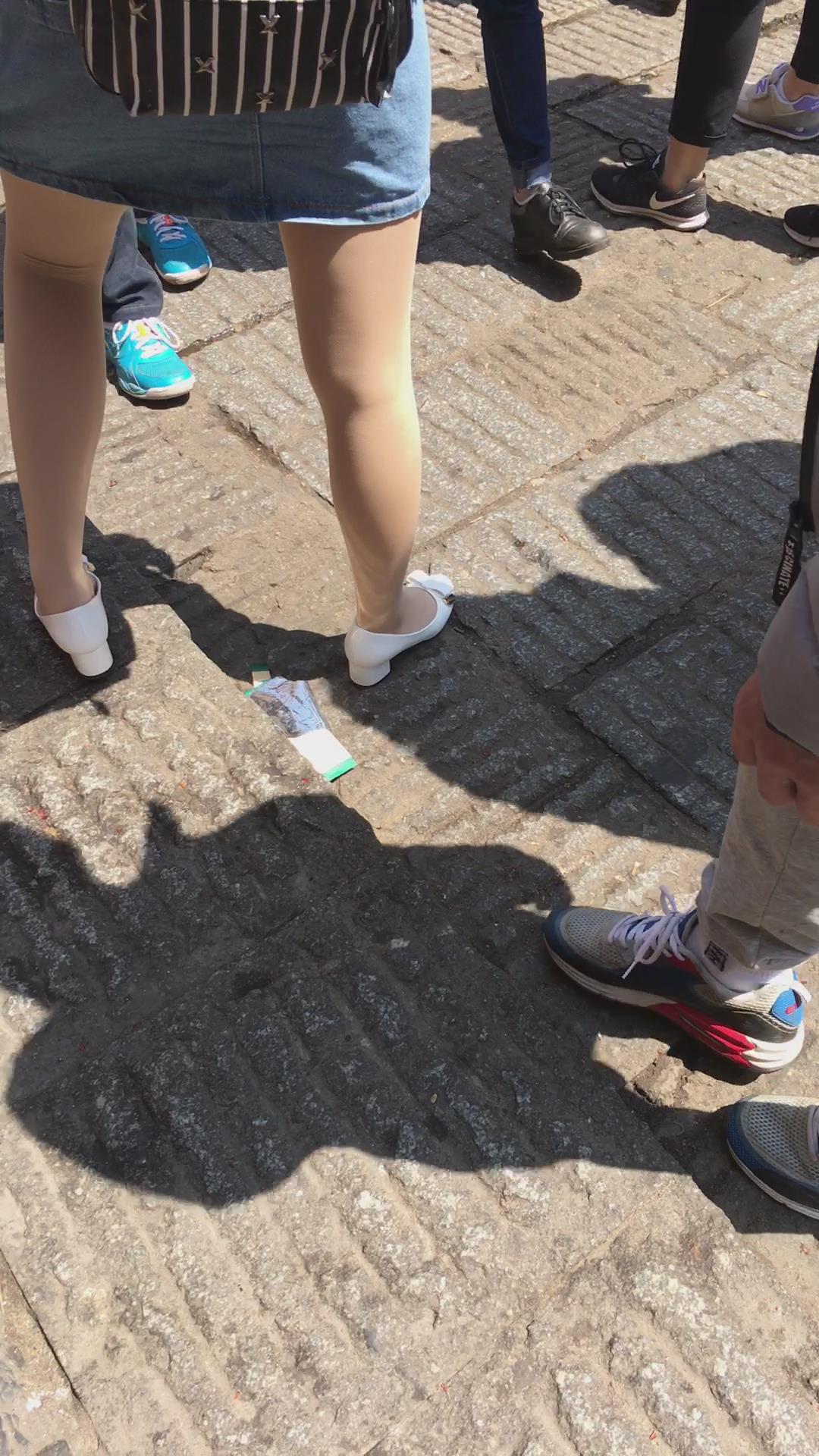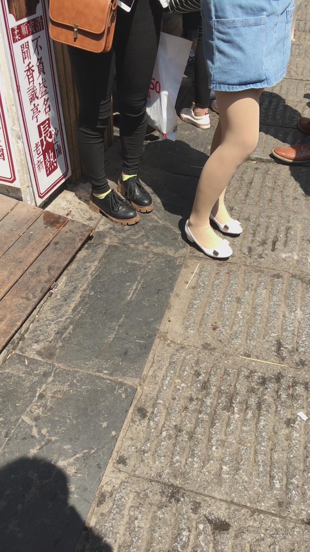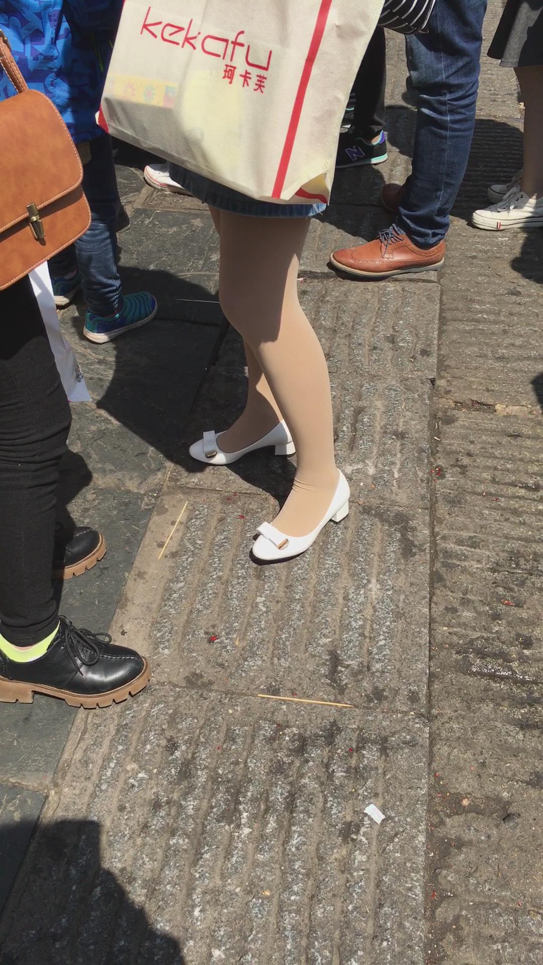 肉丝袜白色高跟鞋牛仔裙街拍美女 编号2175