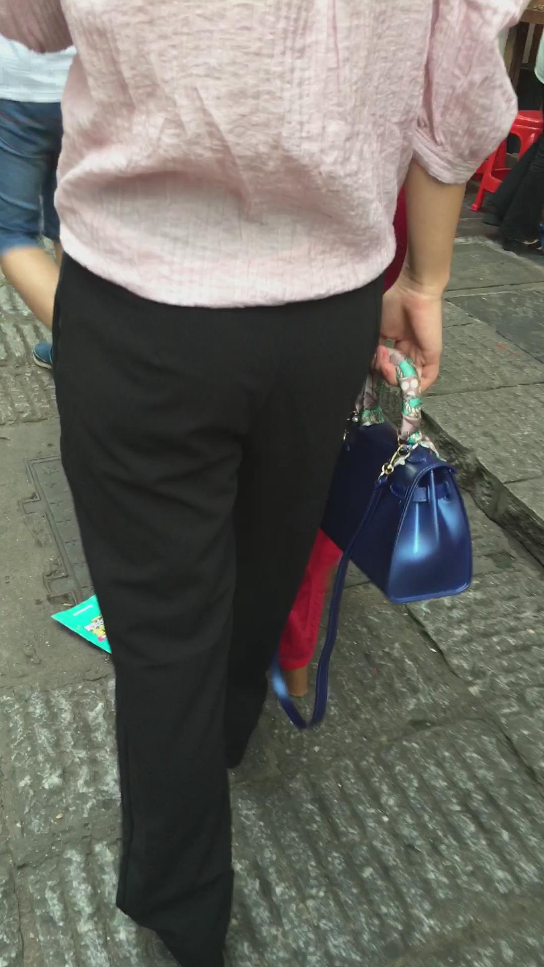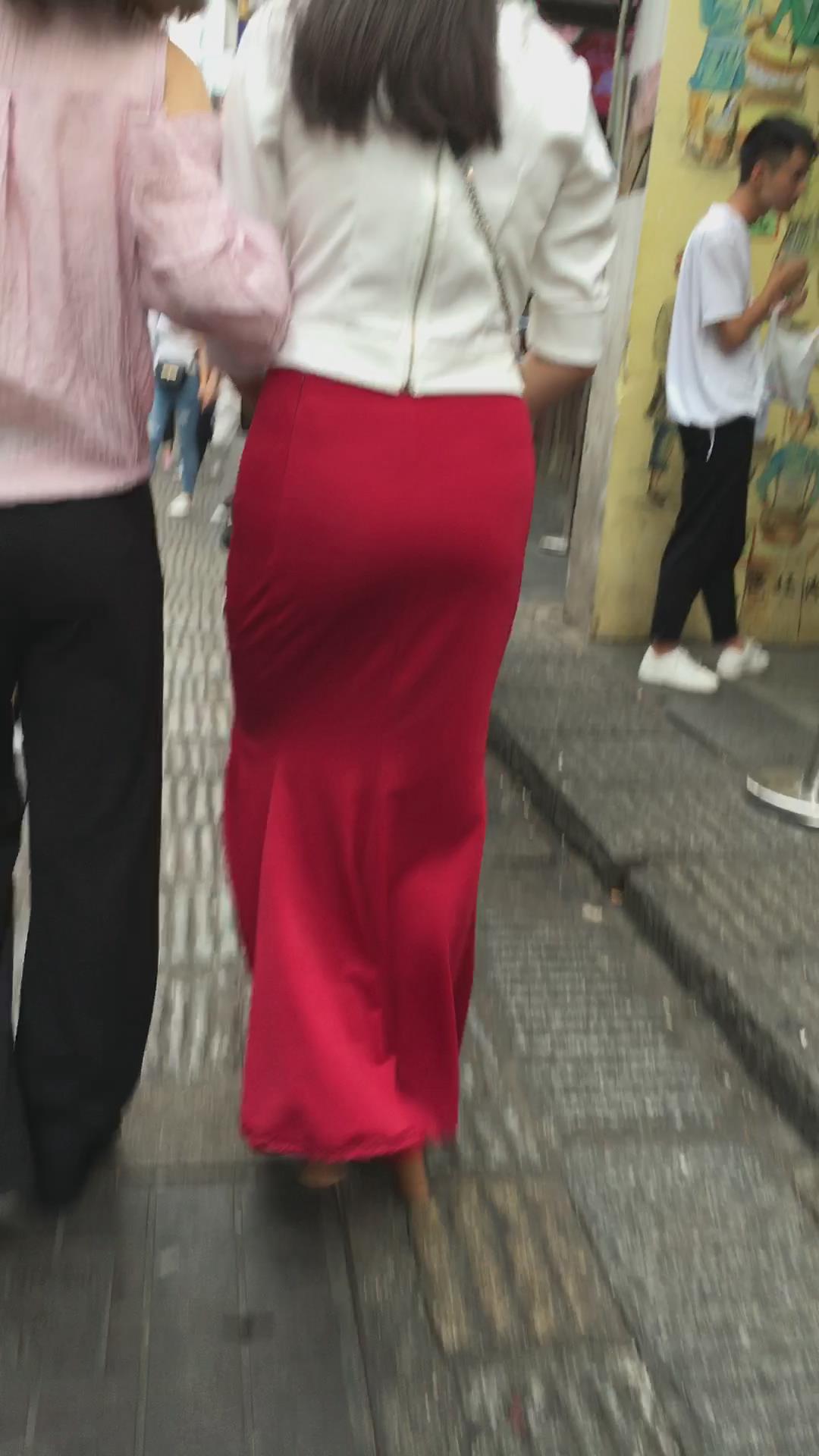 街拍性感丰臀大红色包臀裙华贵美女 编号2192