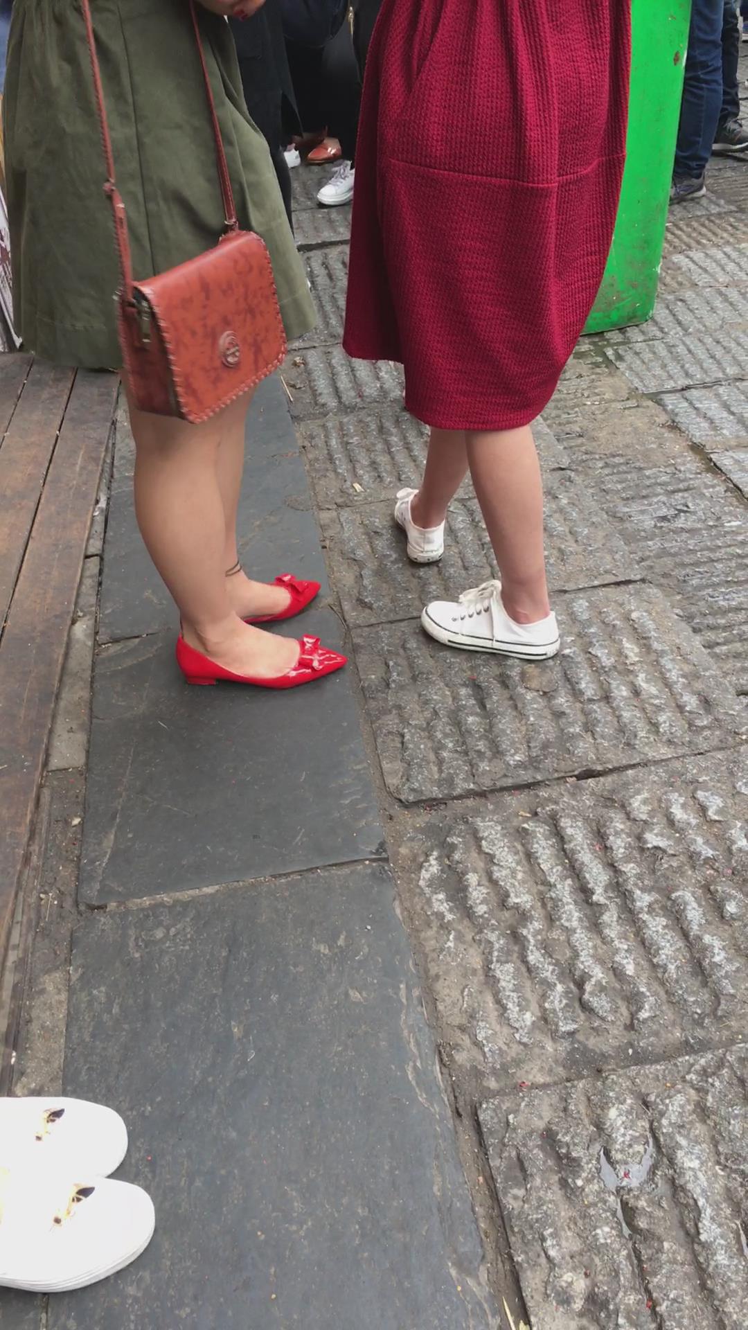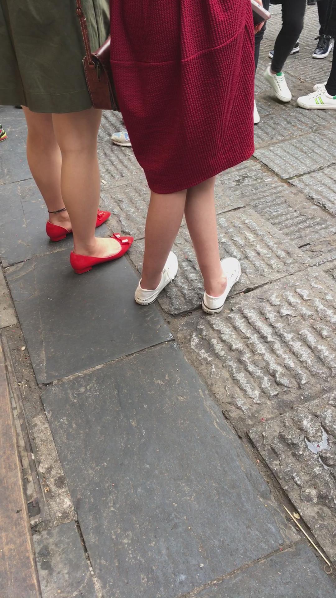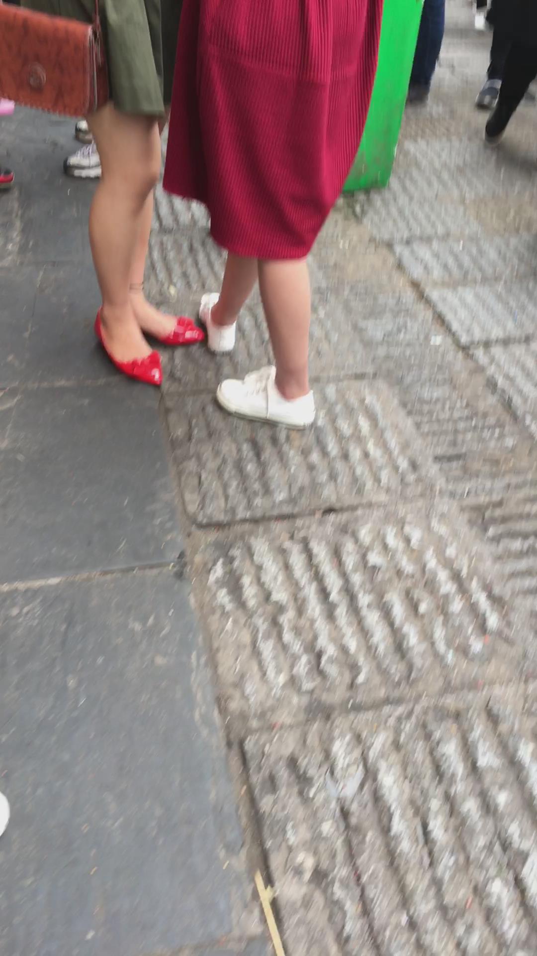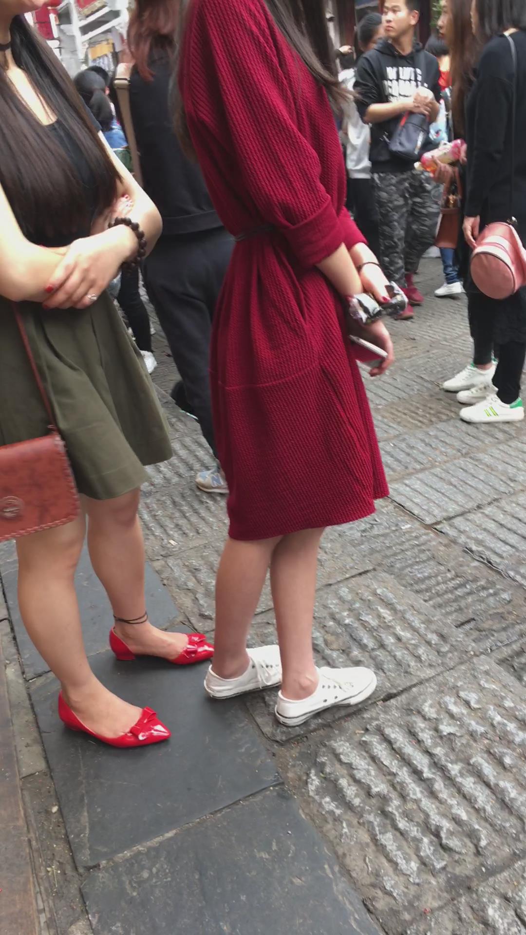 街拍大红色连衣裙漂亮学姐 编号2197