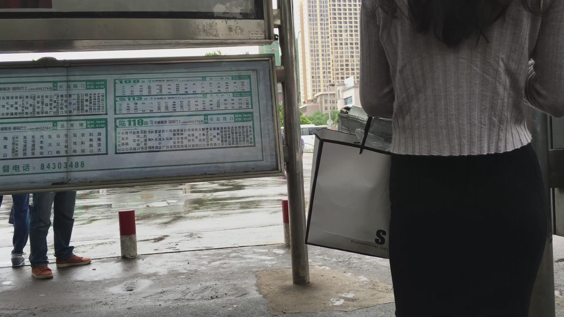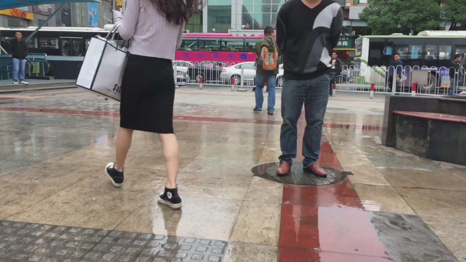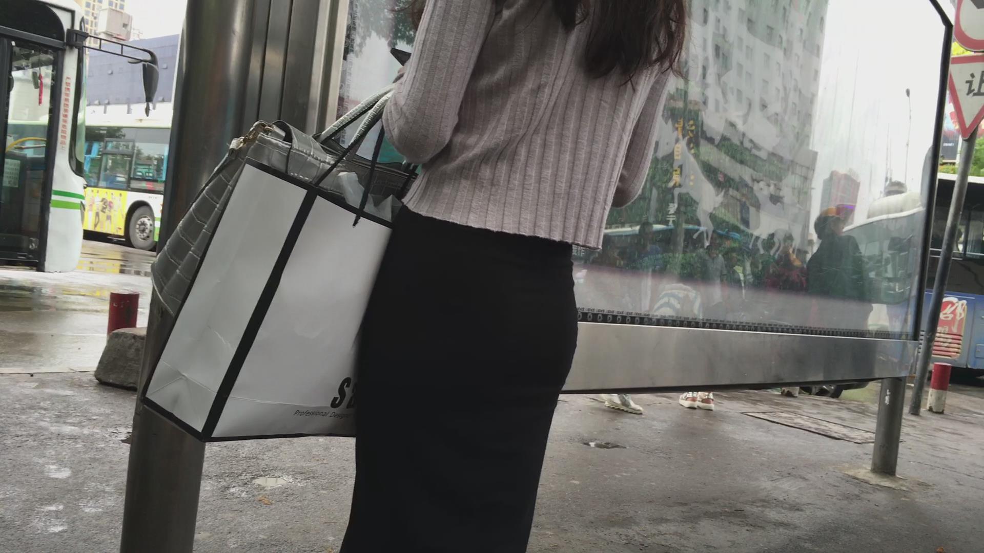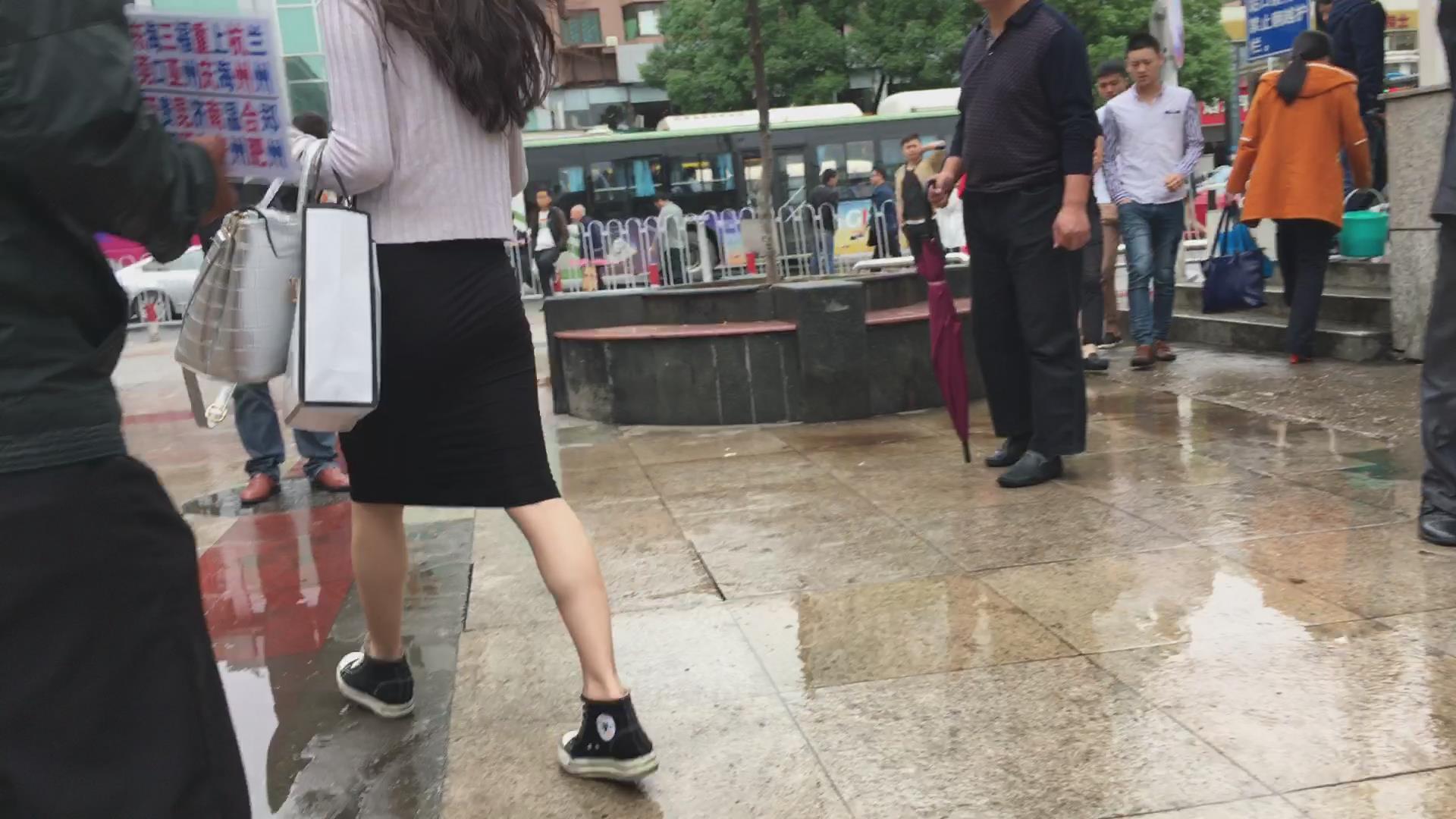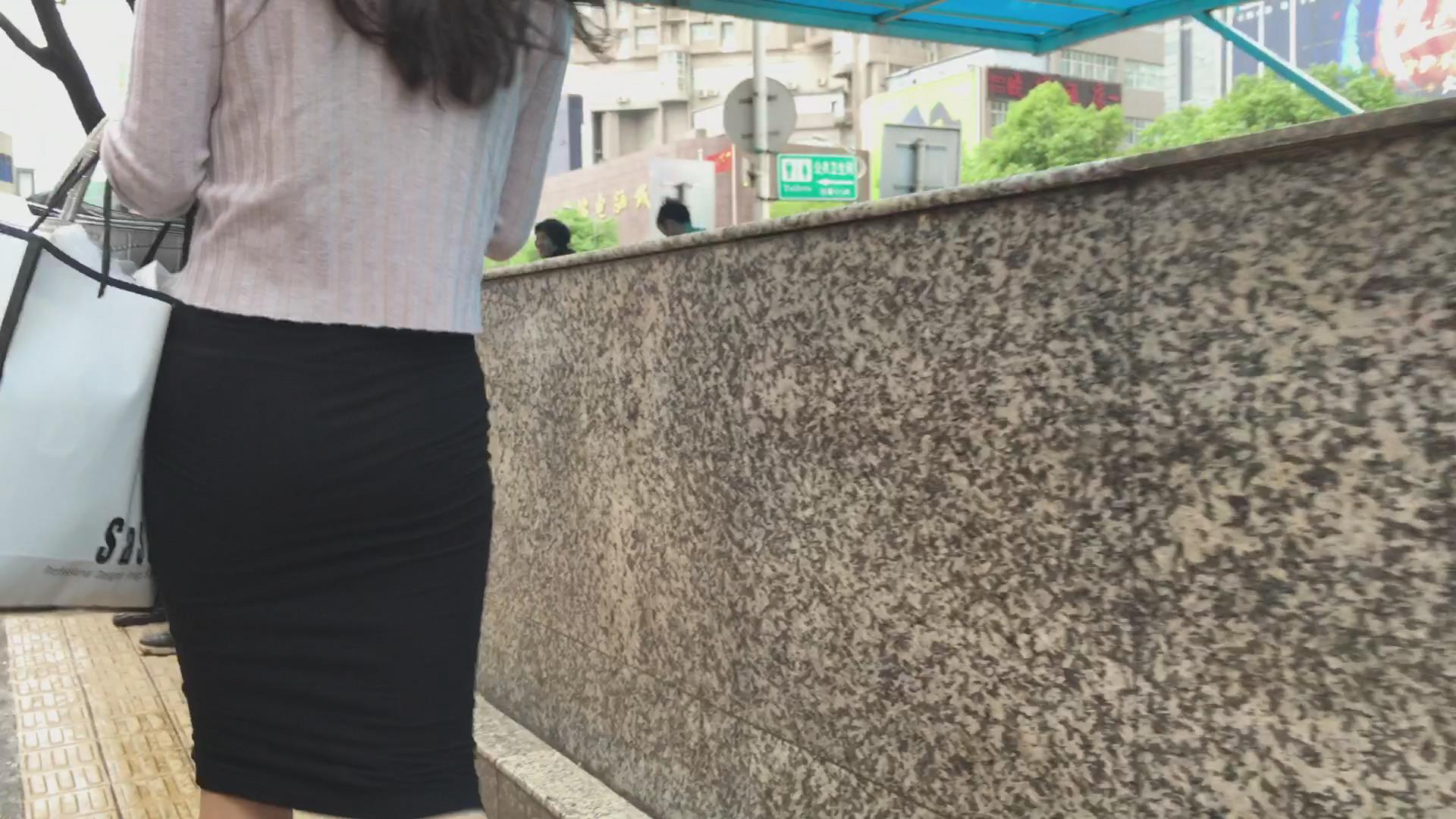 街拍黑色包臀裙性感美女 编号2204