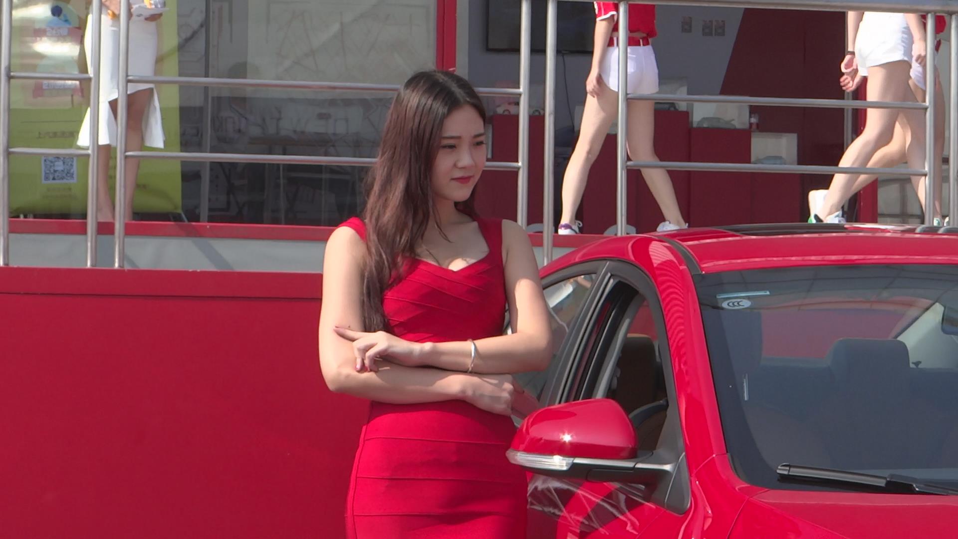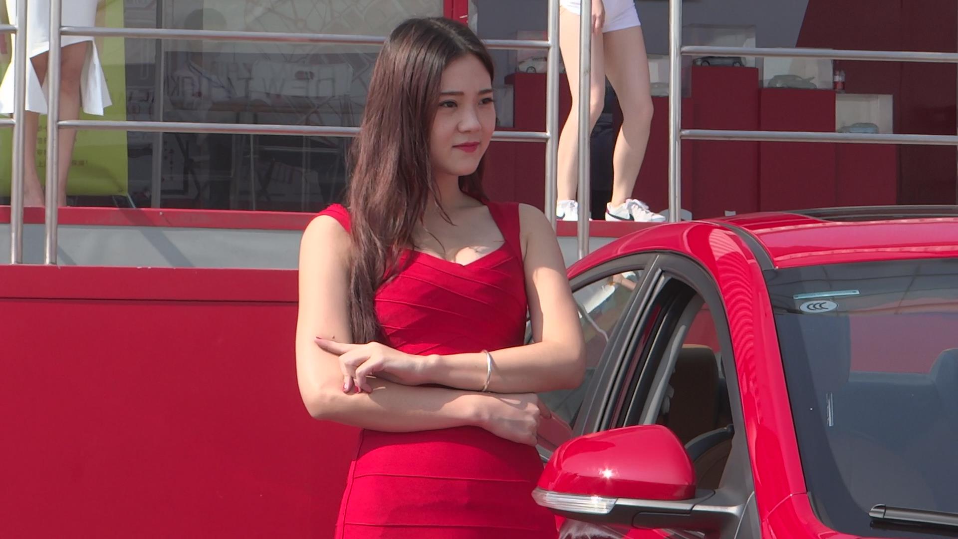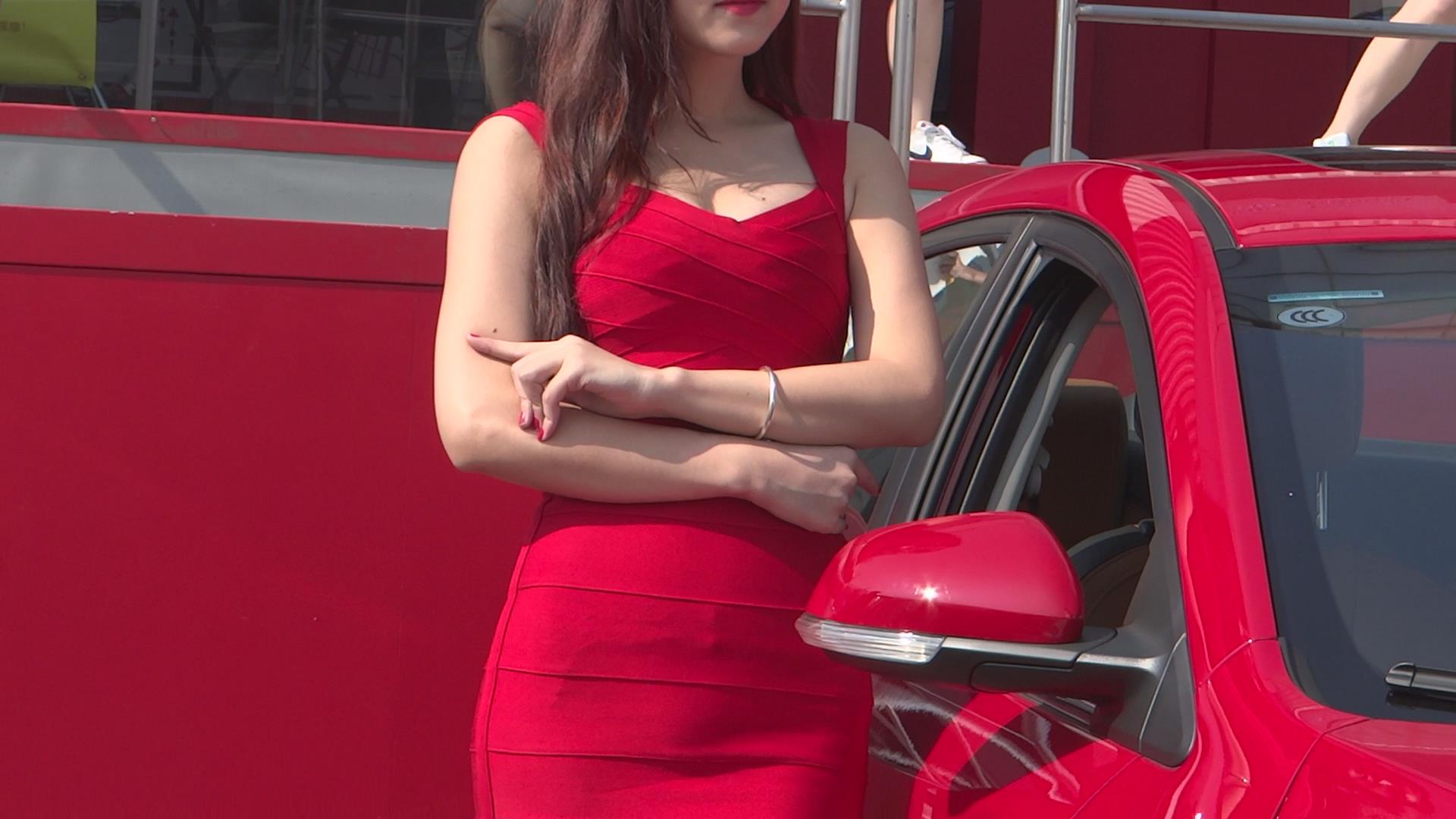 大红色包臀裙、鱼嘴高跟鞋丰满气质车模 编号2214